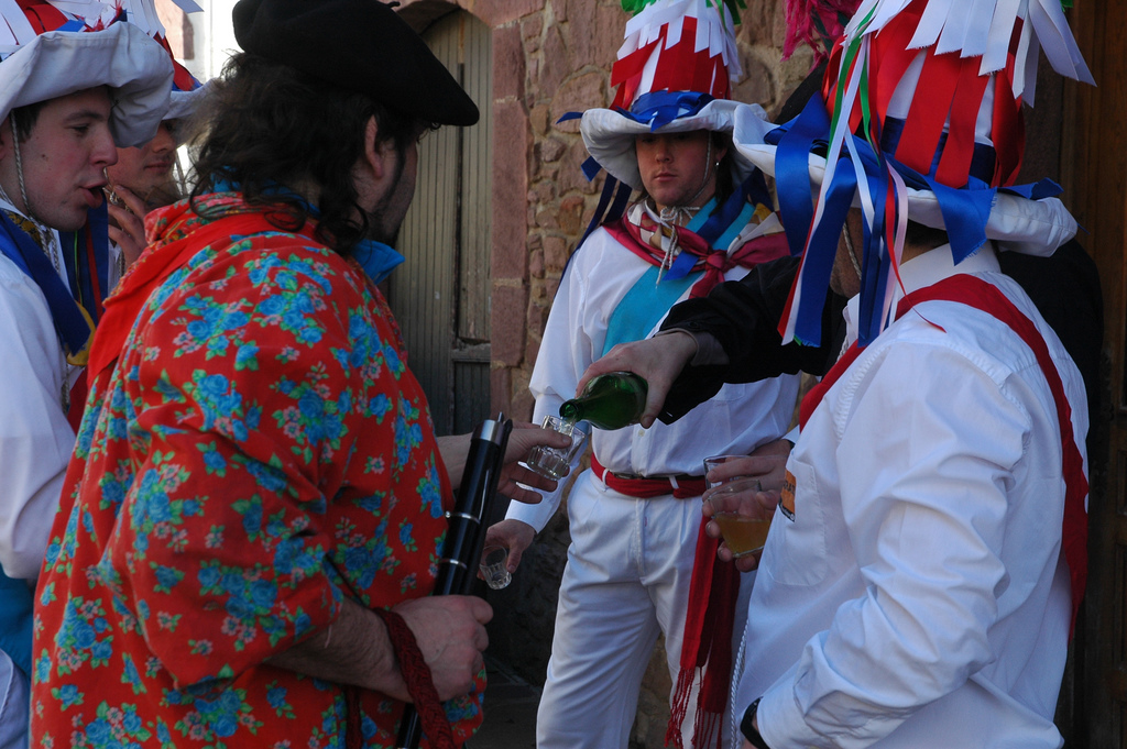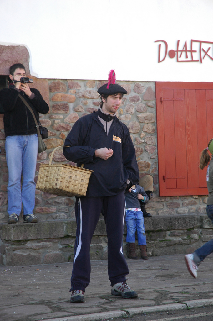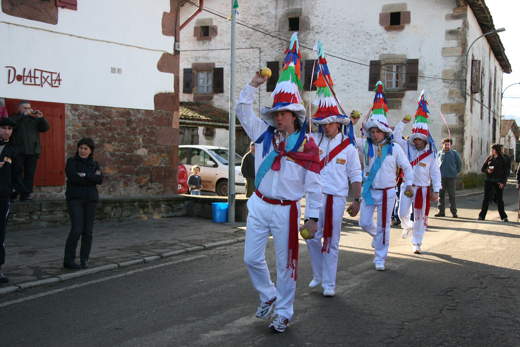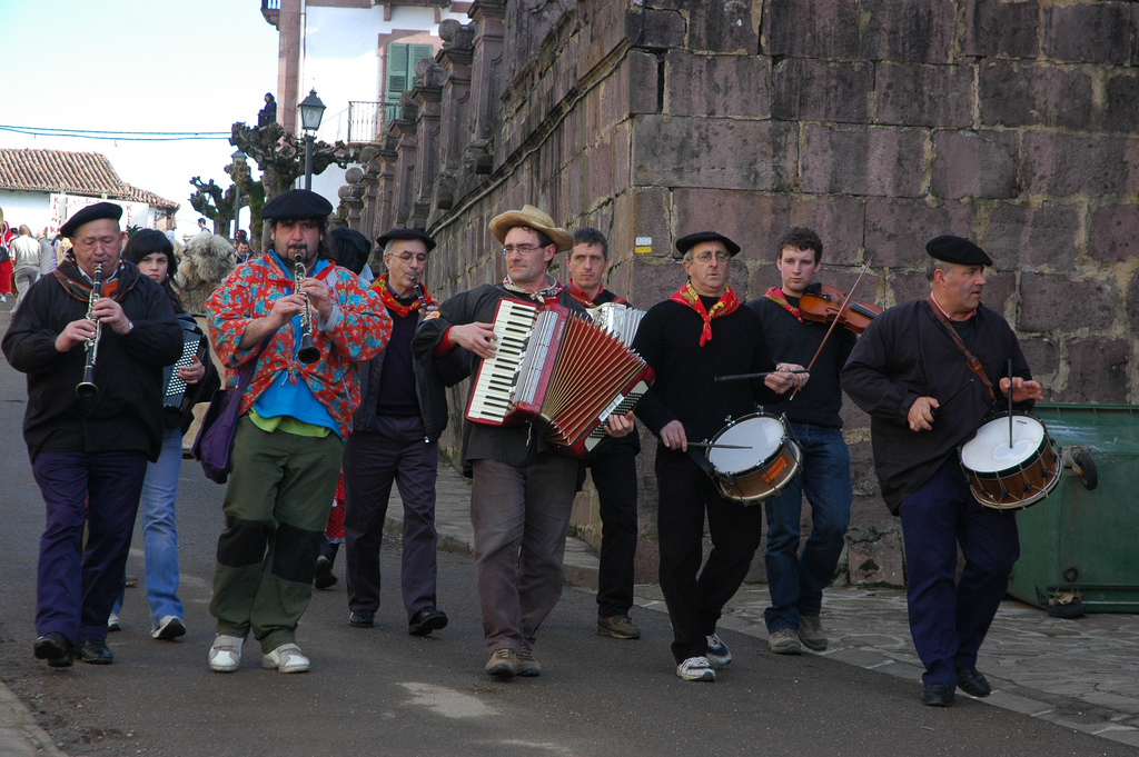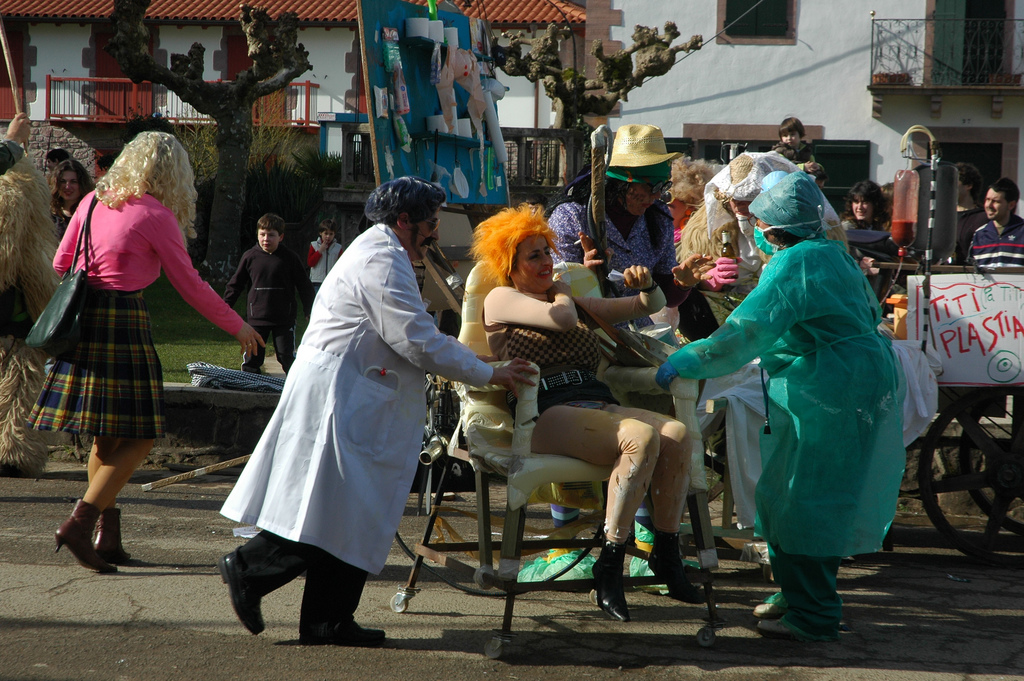 Halako batean hasi dira agertzen mozorroak. Zirujia estetikoko karroza eta bere kideak, polizia foralaren kotxea eta kontrola, eta mozorro barregarri eta basatiak. Horietako batzuk, ardi-larruak bizkarrean eta aurpegia estalita jendea astintzen dute adar luze batzuekin. Hartza ere atera da eta korrika saioak eta izuak hasi dira. Hartza basatia eta eroa da benetan, eta domadoreak ere epelak eman eta hartzen ditu. Txistulariek klarineteak hartu dituzte eta haiekin beste hainbat musikari bildu dira.