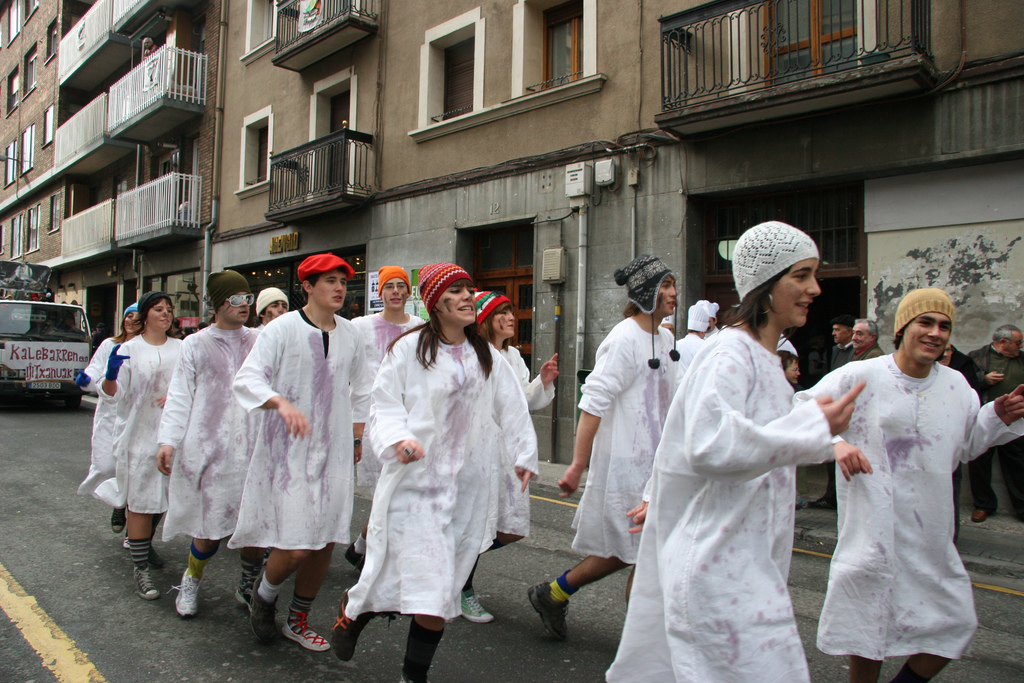 Aratusteak dira Aretxabaletan. Igande eguerdian koadrila eta konparsak kaleratu dira, eta bakoitza bere karroza, txaranga, mozorro eta zaratarekin sartu da kalejiran. Denak doaz norabide batean, eta justo kontrako norabidean dator dozena bat ero, dozena bat kinto txino-dantzan.