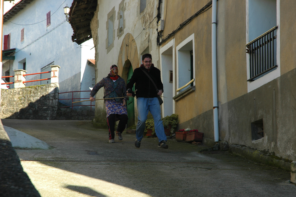 Hasi da festa eta hasi dira korrika saioak. Kaleek hutsik jarraitzen dute eta argazkilari eta bideolariak gara mamuxarro eta mutuen biktimak. Unanuko kale estuetan gora eta behera arnas estuka jarri arte ibili gara ihesean. Poliki-poliki ikusleak iristen ari dira, eta lehen txandakoak nekatuta albo batera egin dugu eta iritsi berriak nola berotzen ditugun ikustera eta erretratatzera pasa gara.
