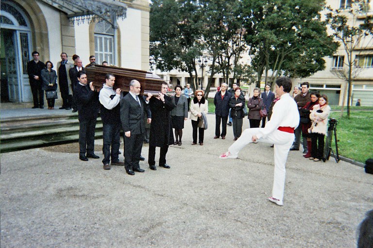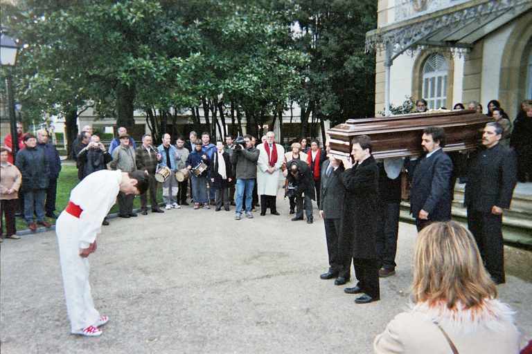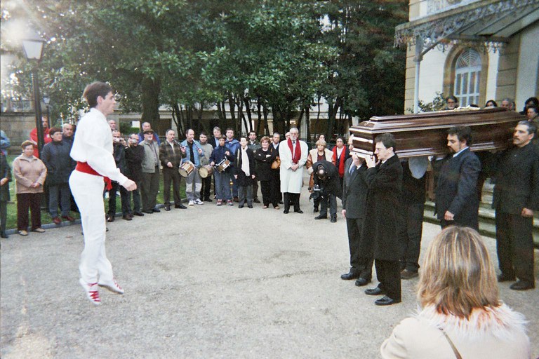 Jorge Oteiza eskultoreari azken agurra eman eta dantzatu zitzaion Zarautzen 2003ko apirilaren 25ean. Mikel Legorburuk dantzatu zion agurra.