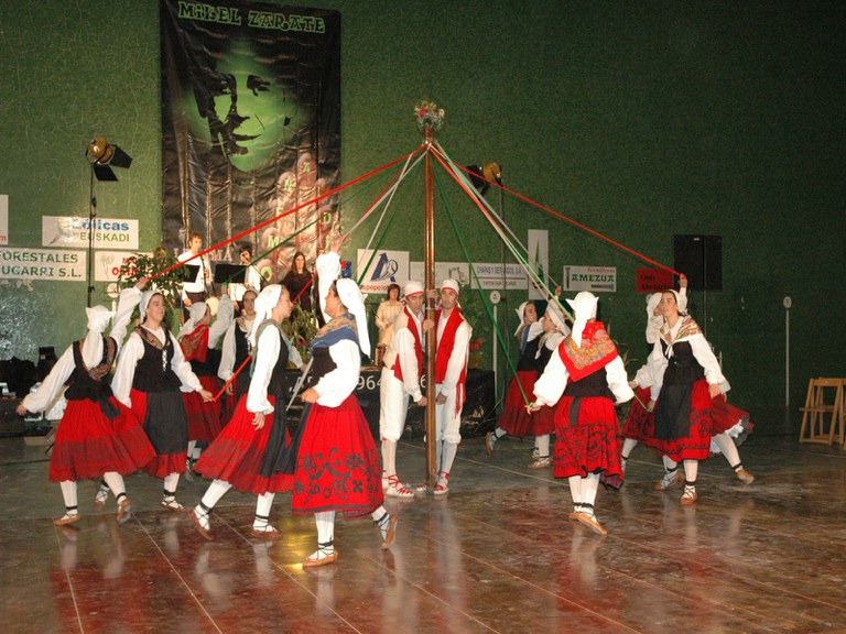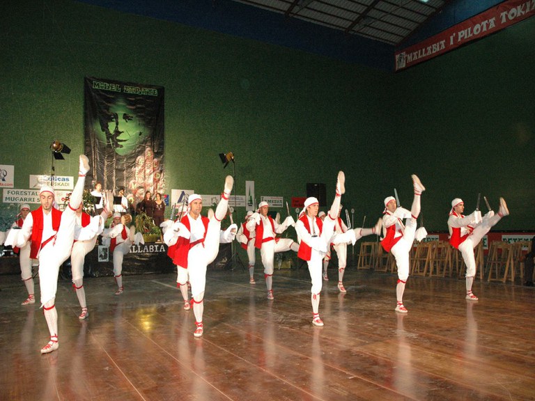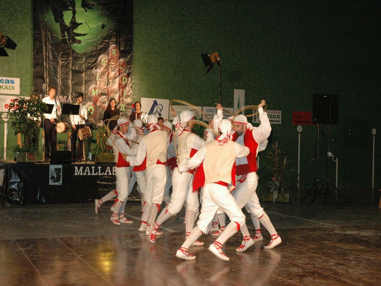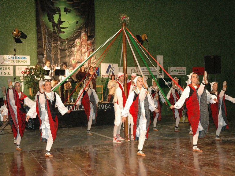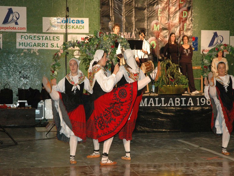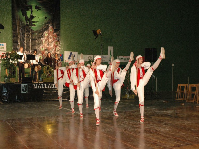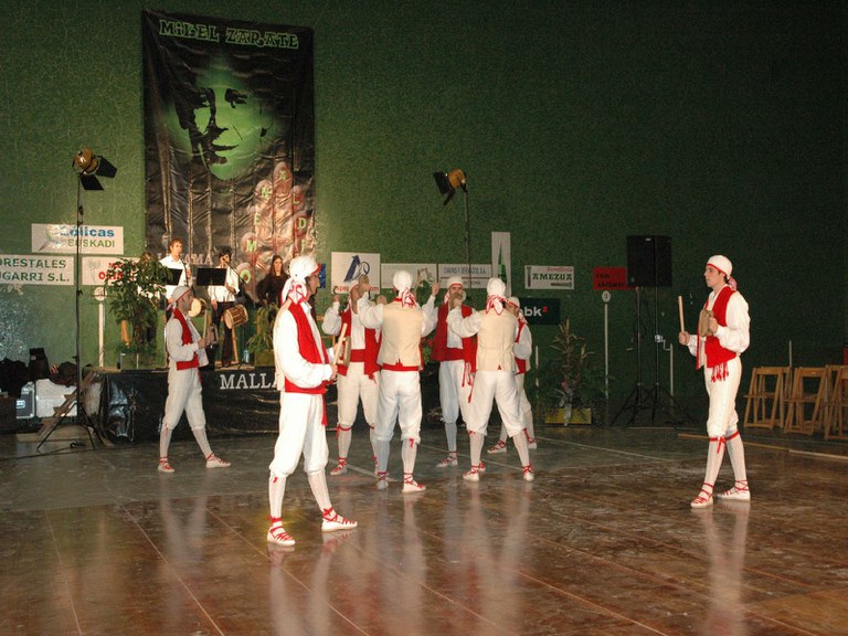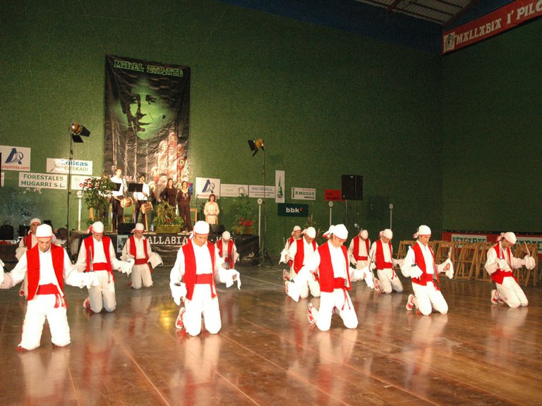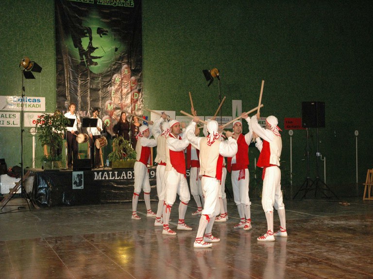 Elgoibarko Haritz dantzari taldea Gipuzkoako dantzak egiten Mallabian, 2004ko irailararen 26an Mikel Zarateri egindako omenaldian.