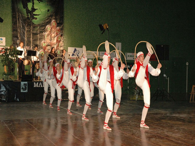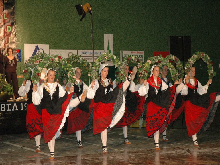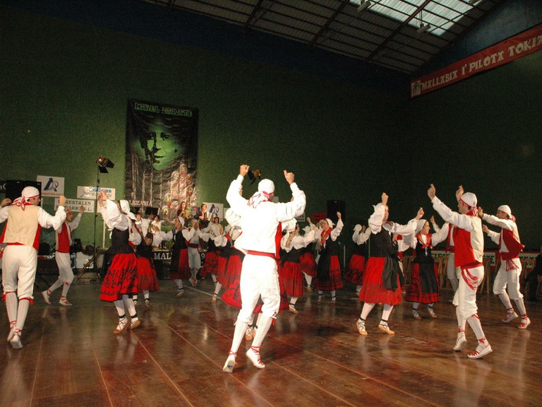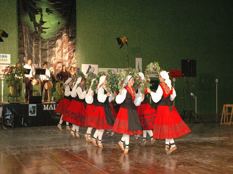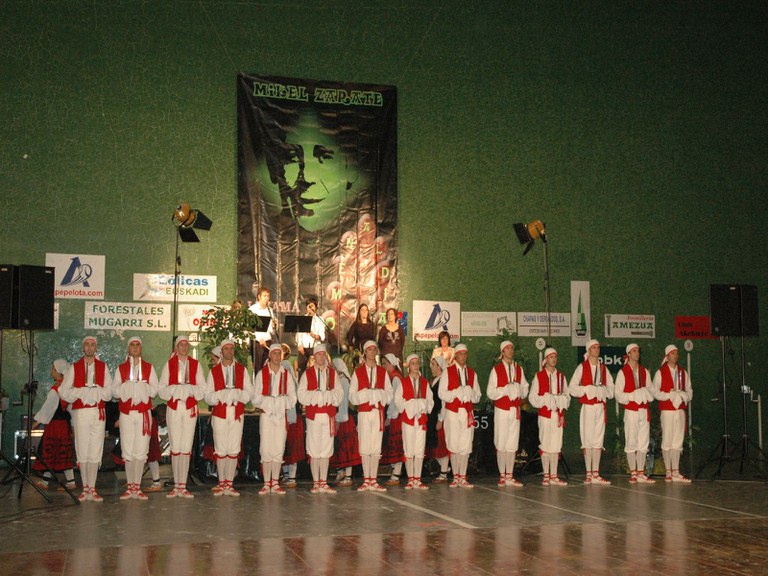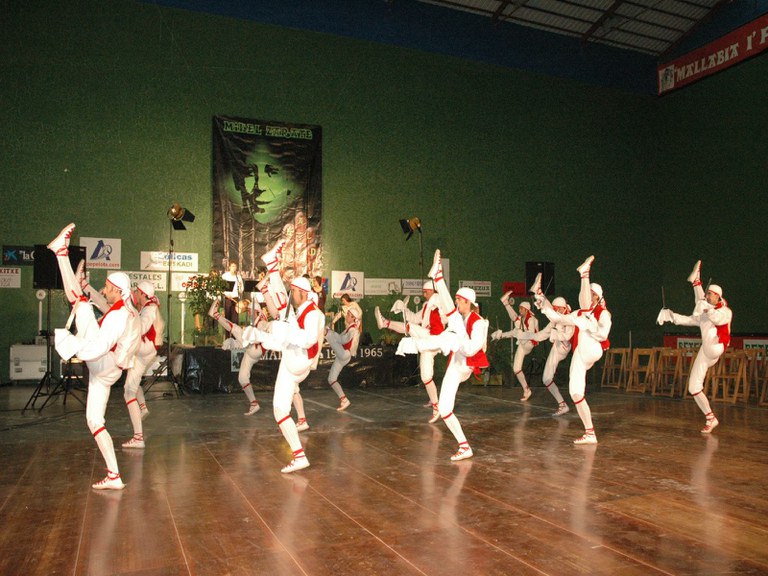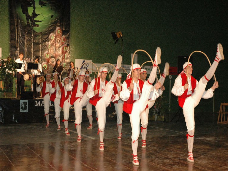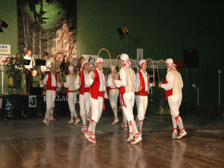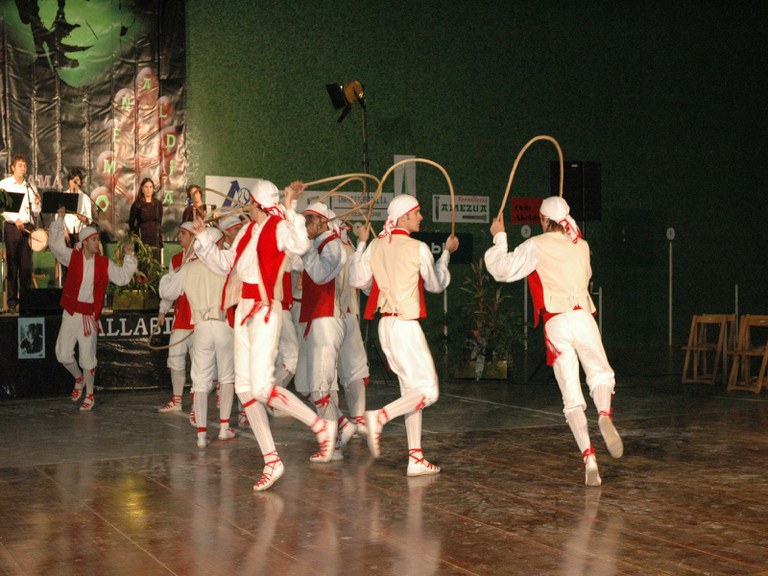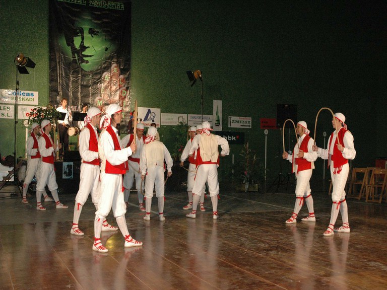 Elgoibarko Haritz dantzari taldea Gipuzkoako dantzak egiten Mallabian, 2004ko irailararen 26an Mikel Zarateri egindako omenaldian.