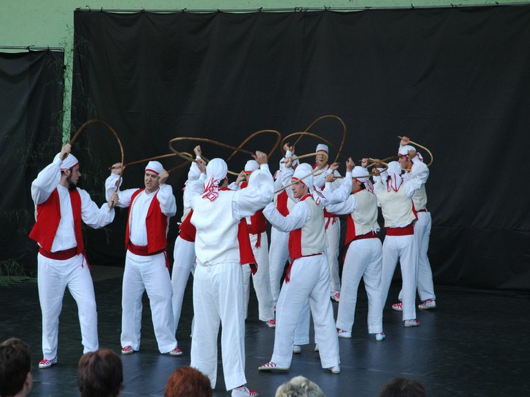 Arkaitz Añorgako dantzarien Gipuzkoako dantzen emanaldia Karmen jaietan 2005eko uztailaren 10ean.