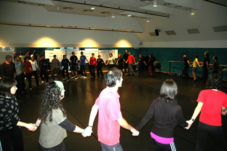"Mugimenduaren analisia eta erritmoaren pedagogia" ikastaroa Aiko taldearekin Dantzan Ikasi egitarauan. Irakasleak: Larraitz Artetxe, Sabin Bikandi eta Patxi Laborda. Donostia, Victoria Eugeniako dantza gela, 2009-12-28, 29 eta 30.