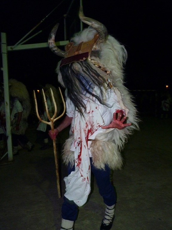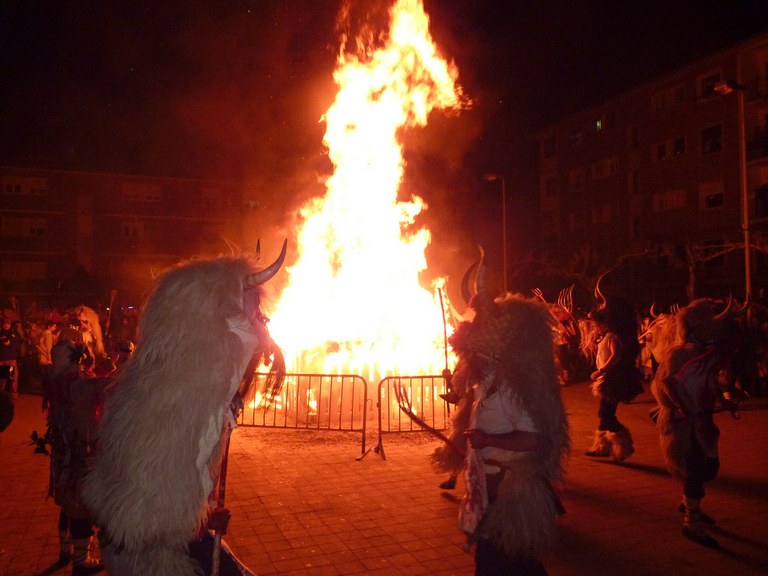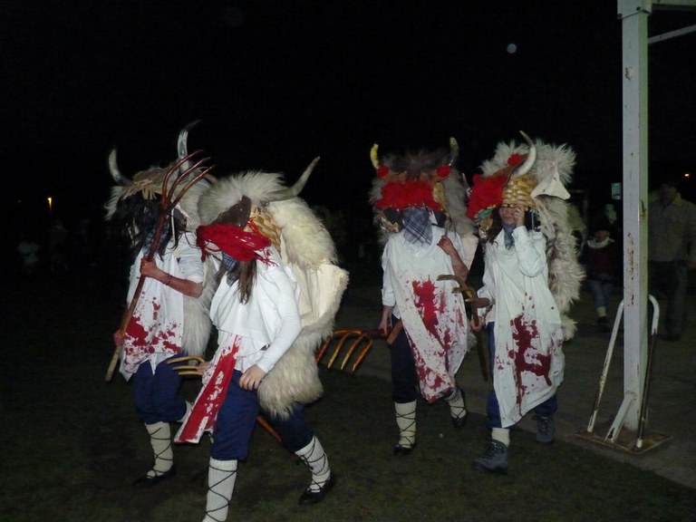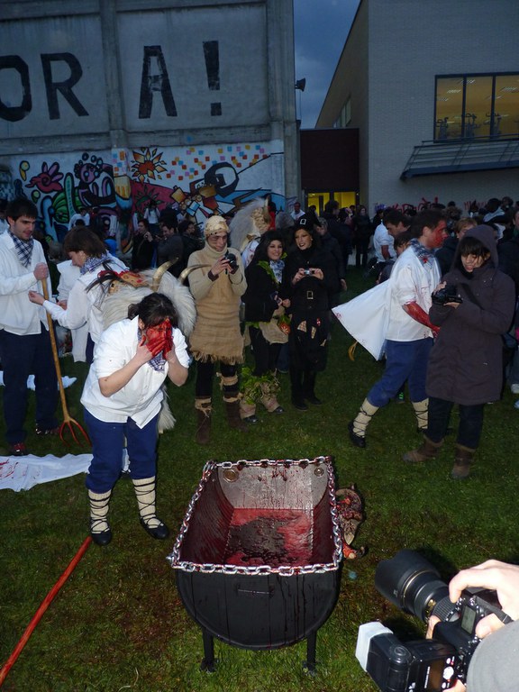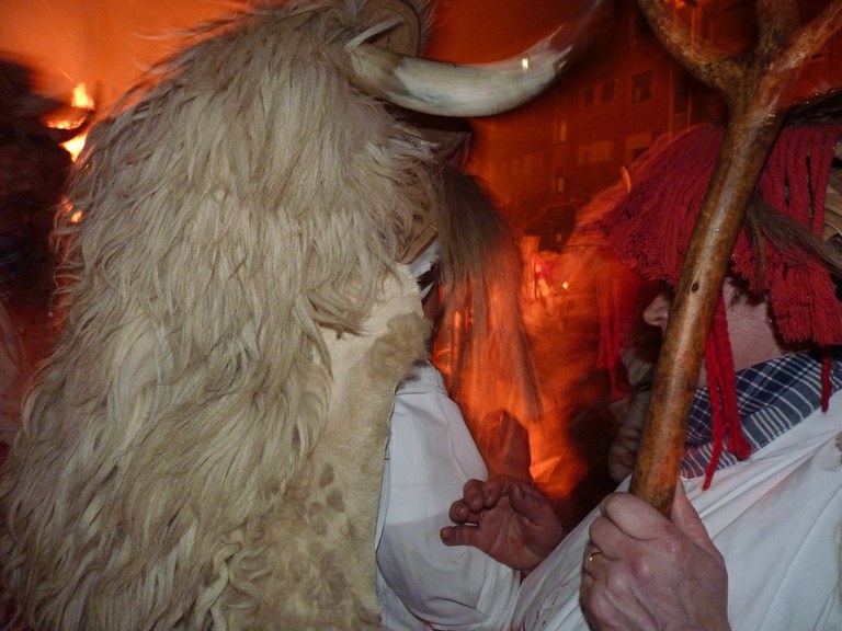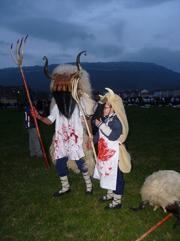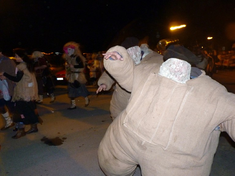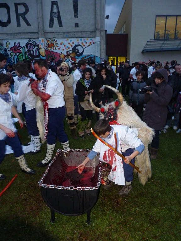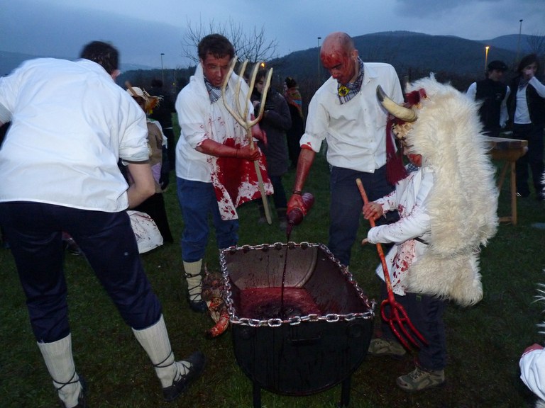 Altsasuko inauterietako pertsonaiak, Momotxorroak, akerra, Juan Tranposo eta abar herriko pilotaleku ondoan jantzi eta han dagoen barrika batetatik txerri odolez zikintzen dira. Denak prest daudenean Altsasuko kaleak hartzen ditu momotxorroen konpartsak. Jotzen edo beldurtzen saiatzen dira uneoro. Noizbehinka txarangak lagunduta dantza egin ohi dute ordea, eta hau da unerik lasaiena. Herriko plazara heltzean sutzar bat erretzen dute, sua momotxorroz inguratua dagoen bitartean. Argazkiak: Jon Iraola. Altsasu, 2011-03-08.