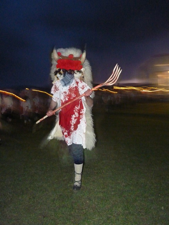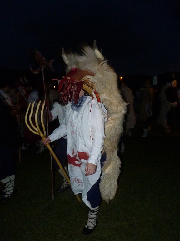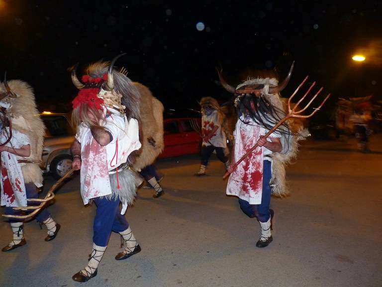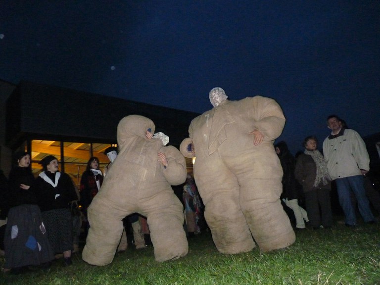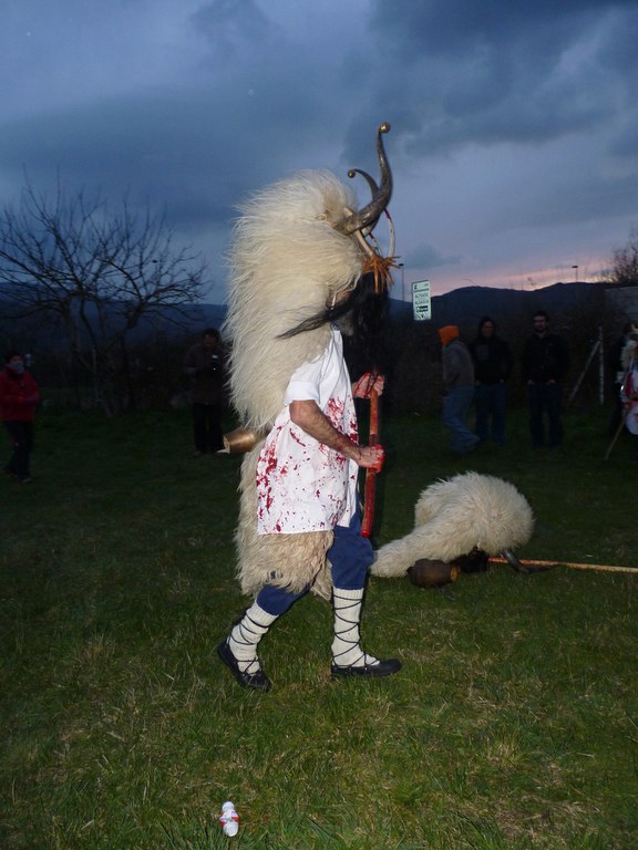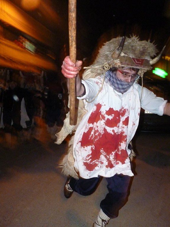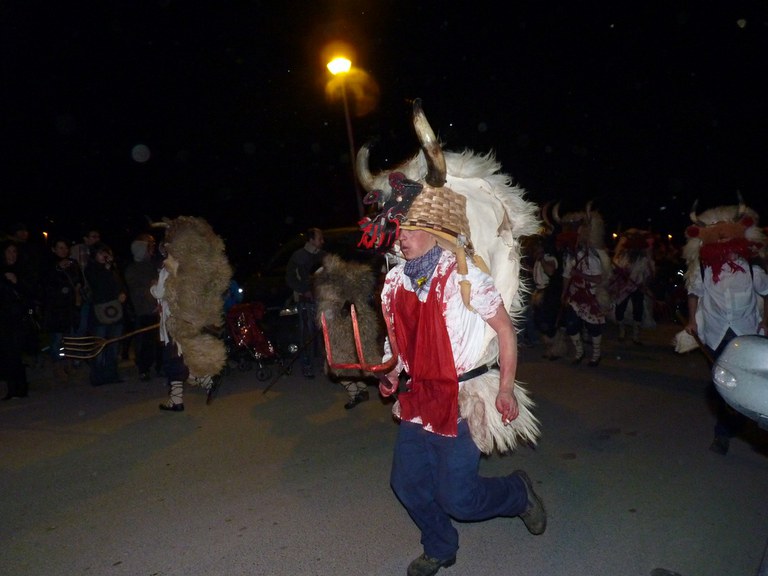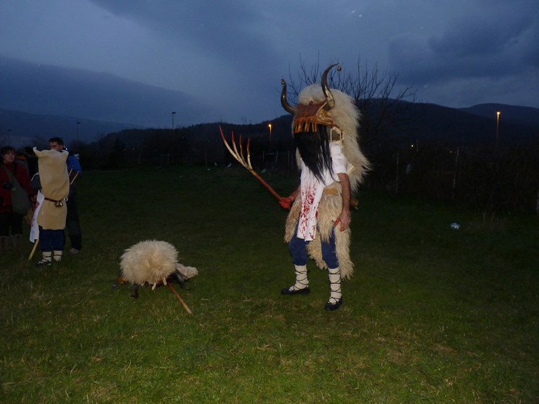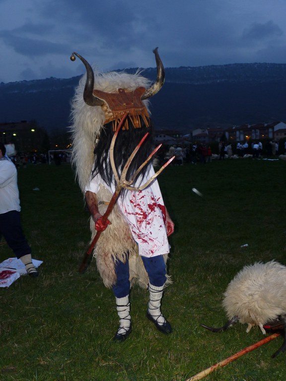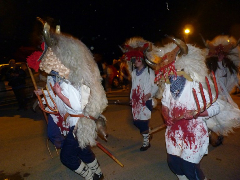 Altsasuko inauterietako pertsonaiak, Momotxorroak, akerra, Juan Tranposo eta abar herriko pilotaleku ondoan jantzi eta han dagoen barrika batetatik txerri odolez zikintzen dira. Denak prest daudenean Altsasuko kaleak hartzen ditu momotxorroen konpartsak. Jotzen edo beldurtzen saiatzen dira uneoro. Noizbehinka txarangak lagunduta dantza egin ohi dute ordea, eta hau da unerik lasaiena. Herriko plazara heltzean sutzar bat erretzen dute, sua momotxorroz inguratua dagoen bitartean. Argazkiak: Jon Iraola. Altsasu, 2011-03-08.