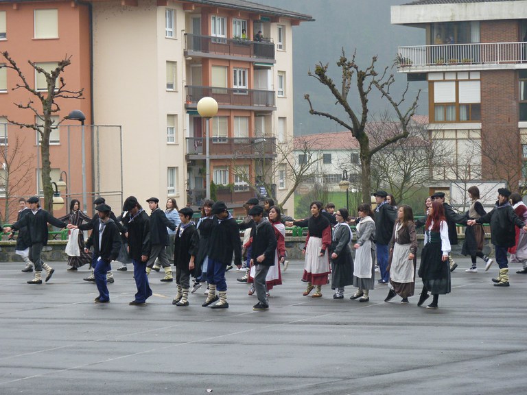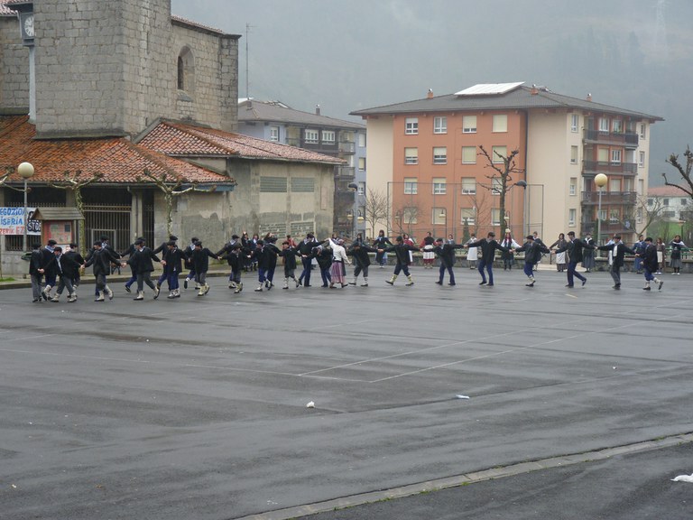 Otsailaren 26an, dantza-soka dantzatu zen Anoetan. Herriko gazteek dantzatzen dute urtero eguerdiko 12:00ak inguruan. Soka-dantza hau dantzatu aurretik puska-biltzen aritzen dira. Argazkiak: Maite Sagaseta, 2011-02-26.