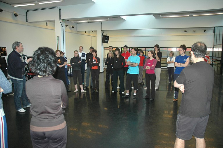 Arabako Errioxako dantzen ikastaroa Dantzagunean Dantzan Ikasi egitarauan Gasteizko Indarra dantza taldea eta Udal Folklore Akademiako irakasleen eskutik. Irakasleak: Jon Fernandez, Pedro Elosegi, Amagoia Eguiluz, Elena Gonzalez de Artaza. Argazkiak: OIer Araolaza. Donostia, Dantzagunea, 2010-05-15.