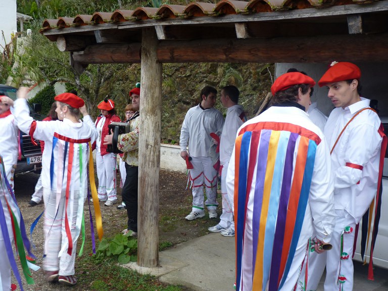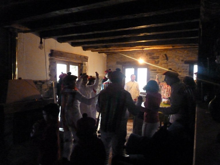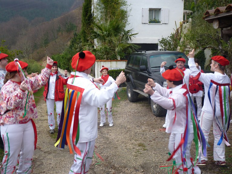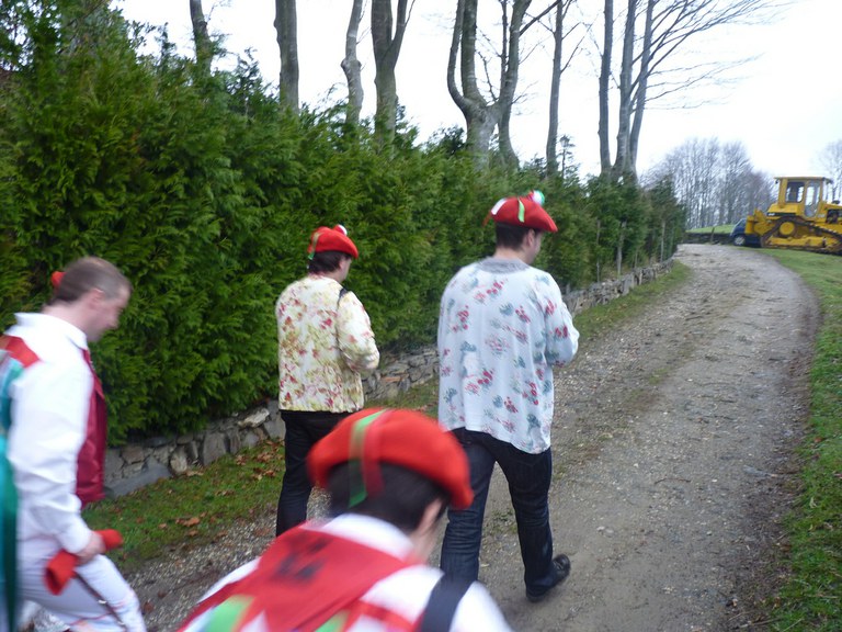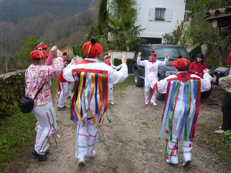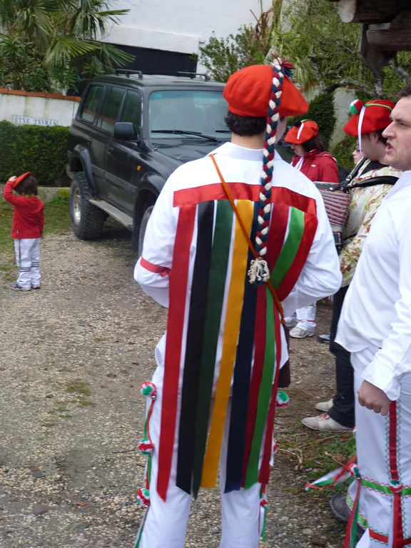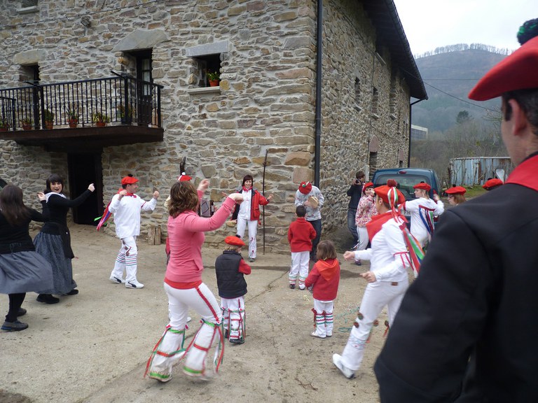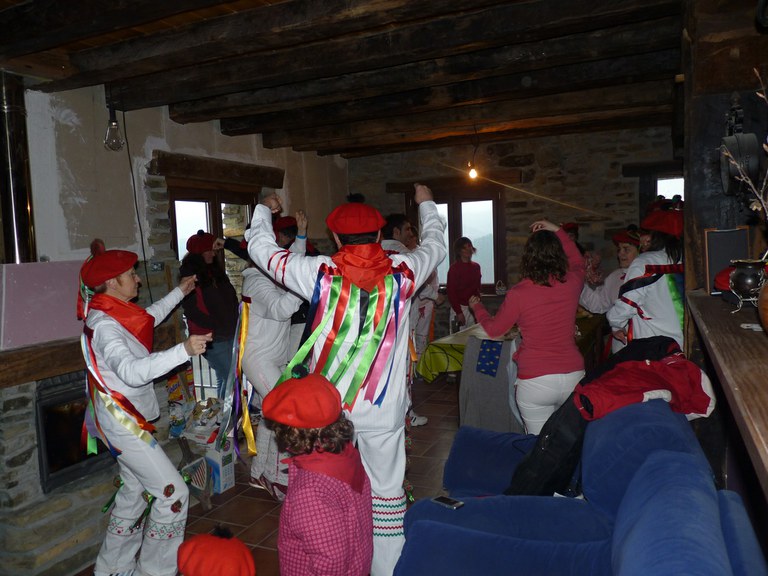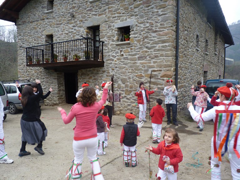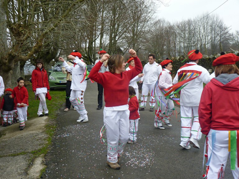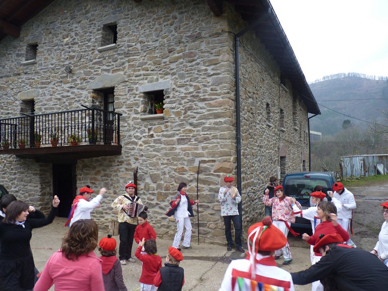 Inauterien azkenaurreko asteburuan irteten dira zomorroak Aranon. Goizean goiz herriko plazan geratu eta baserriz baserri joaten dira fandango eta arin-arina dantzatuz giro ederrean. Puska-biltzea egin ostean, elkartean bazkaldu eta zagi-dantza egin ohi dute arratsaldean. Argazkietan, goizeko puska-biltzea ikus dezakezue. Argazkiak: Beñat Lopez. Arano, 2011-02-26.
