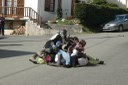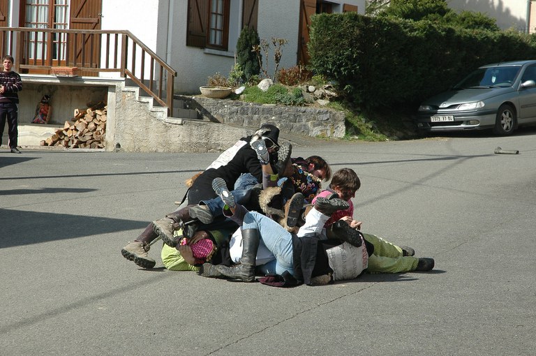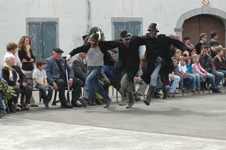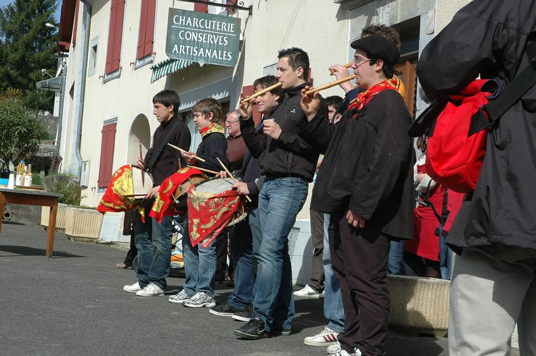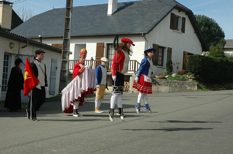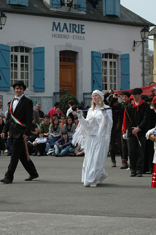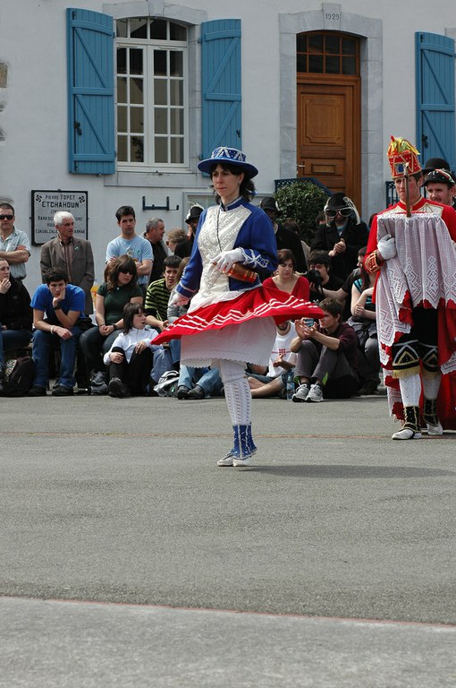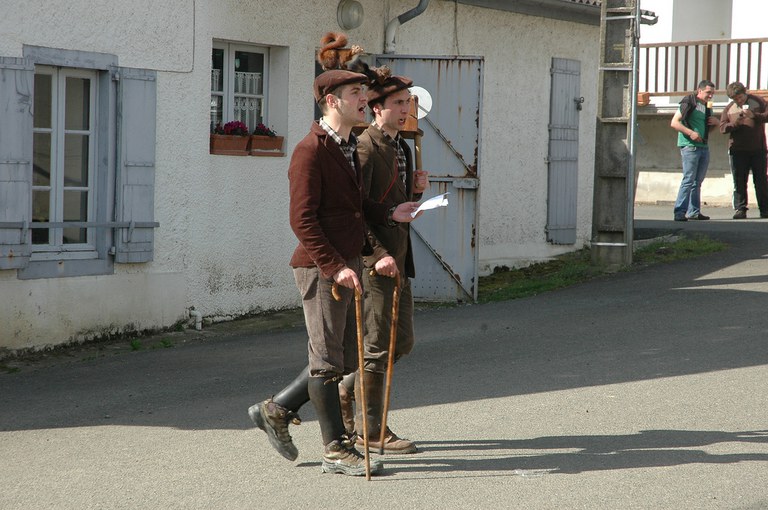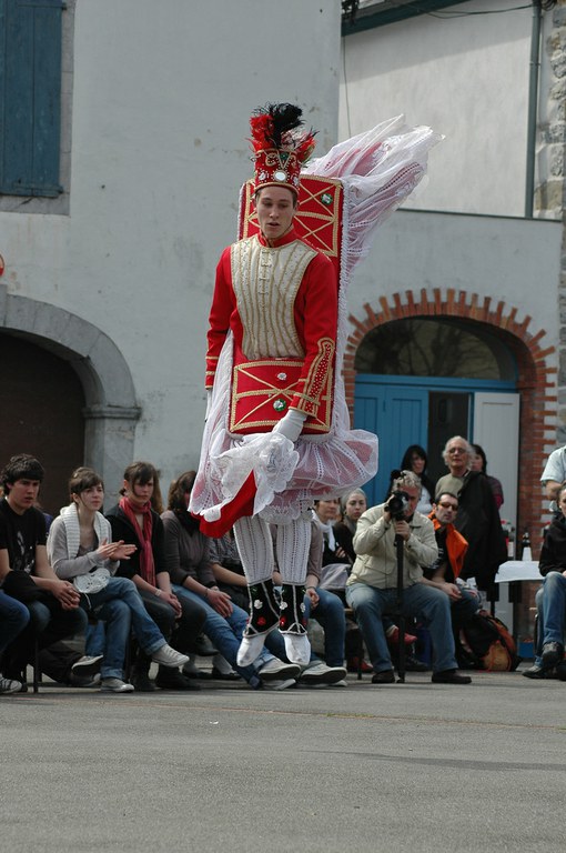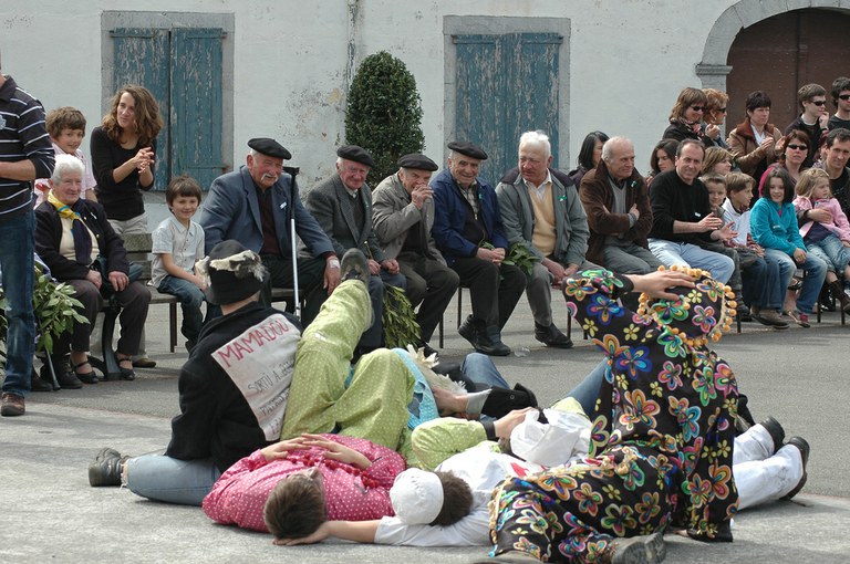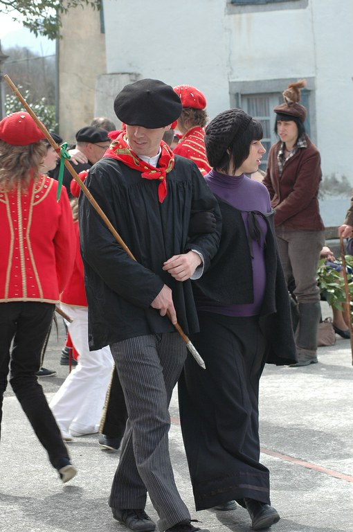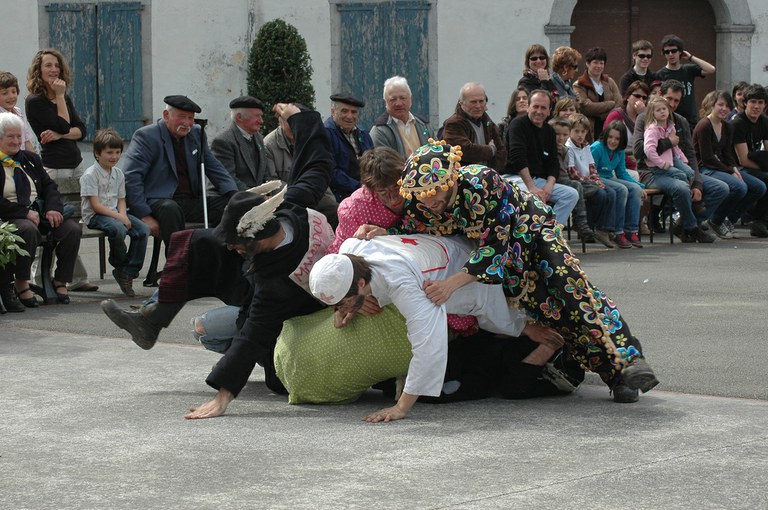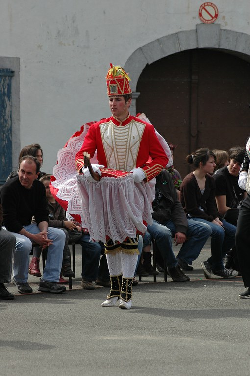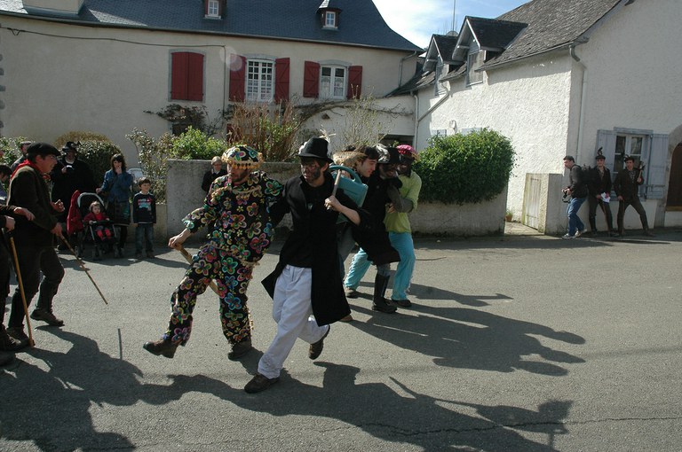 Larraineko gazteek eman dituzte maskaradak 2010ean, eta irudietan Barkoxera egindako bisitan ageri dira dantzan, baina Barkoxeko dantzariak harrera eginez eta baita Larraineko arizale eta dantzariak beren saioa eskainiz. Argazkiak: Oier Araolaza. Barkoxe, 2010-03-27.