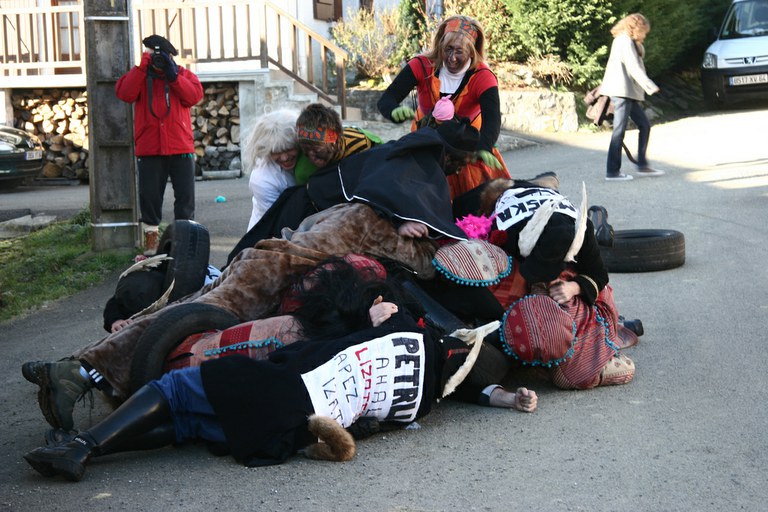 Barkoxeko gazteek eman dituzte maskaradak 2009an. Lehen agerraldia, ohi legez, herrian betan, Barkoxen egin dute. Goizeko barrikadak eta arratsaldeko emanaldia ageri dira ondoko iruddietan. Argazkiak: Iñaki Zugasti. Barkoxe, 2009-01-19.