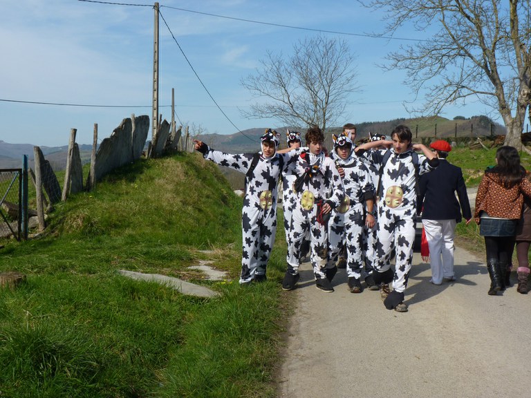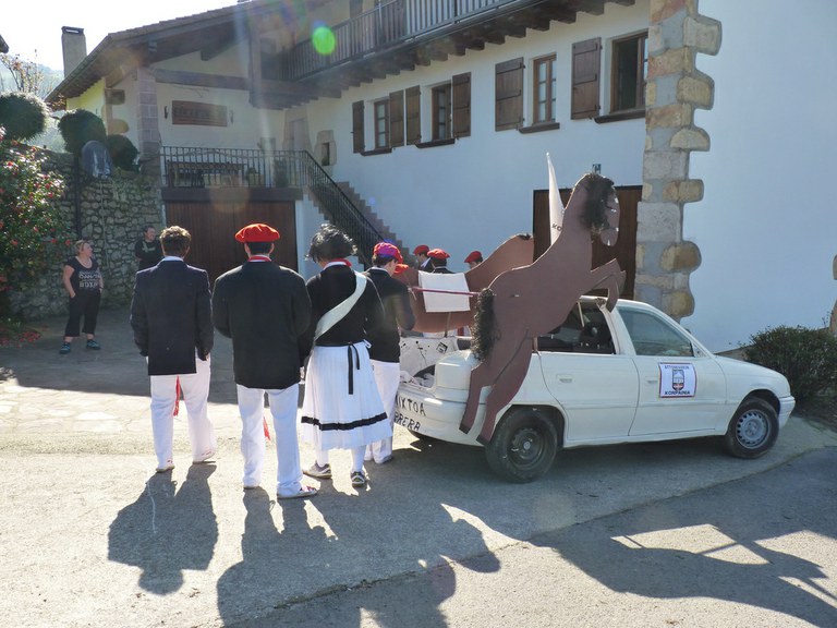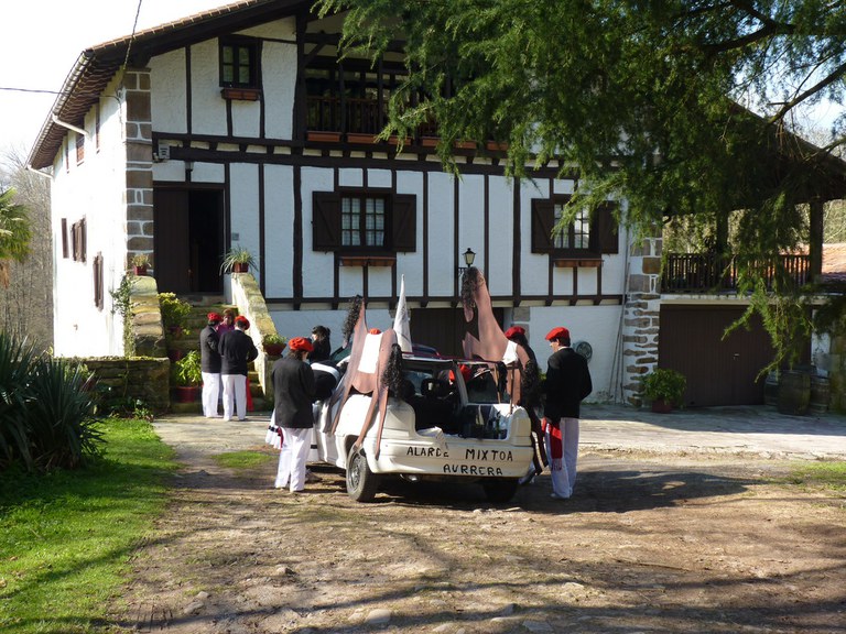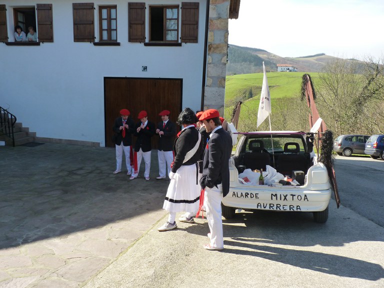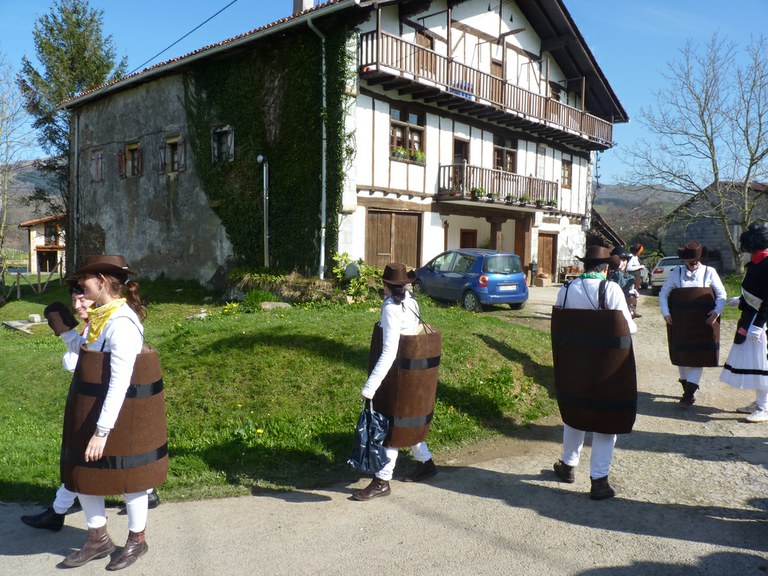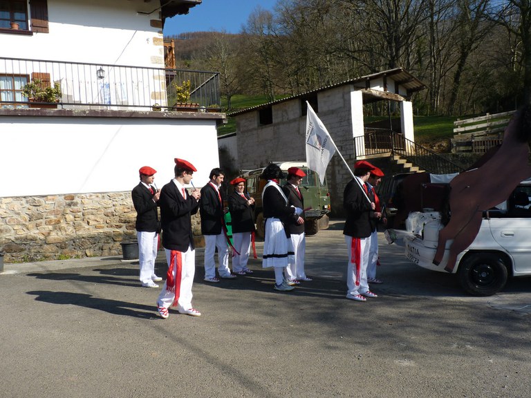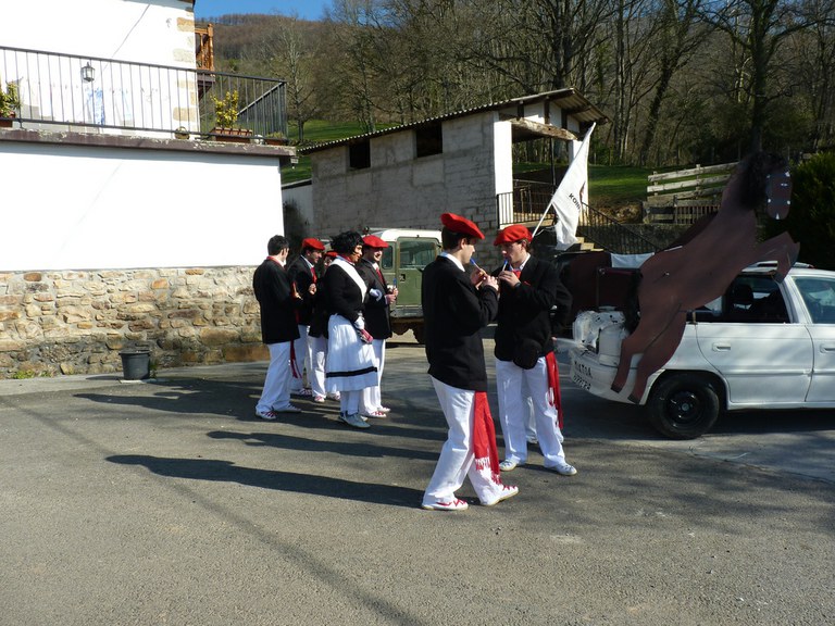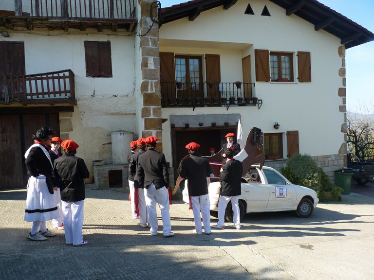Astelenitan zingar-arrautze eskea egiten da goizez Beran. Koadrilek euren mozorroak jantzi eta baserriz baserri aritzen dira. Baserri guztien aurrean "Zingar-arrautze, zingar-arrautze bat ez bada bertze, bertze!"kantatzen dute eta horrela lortzen dute egun horretako saria. Argazkiak: Jon Iraola. Bera, 2011-03-07.