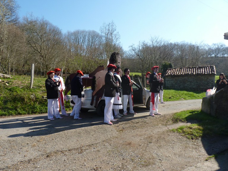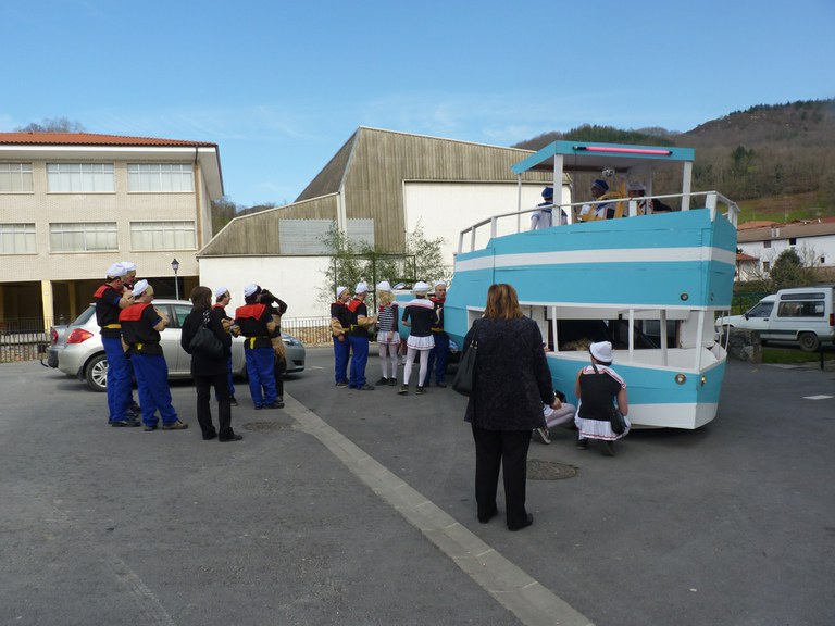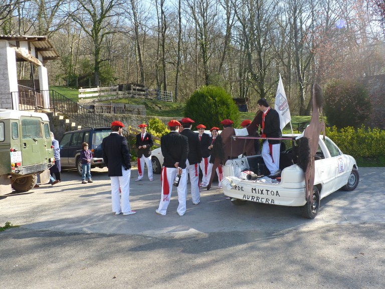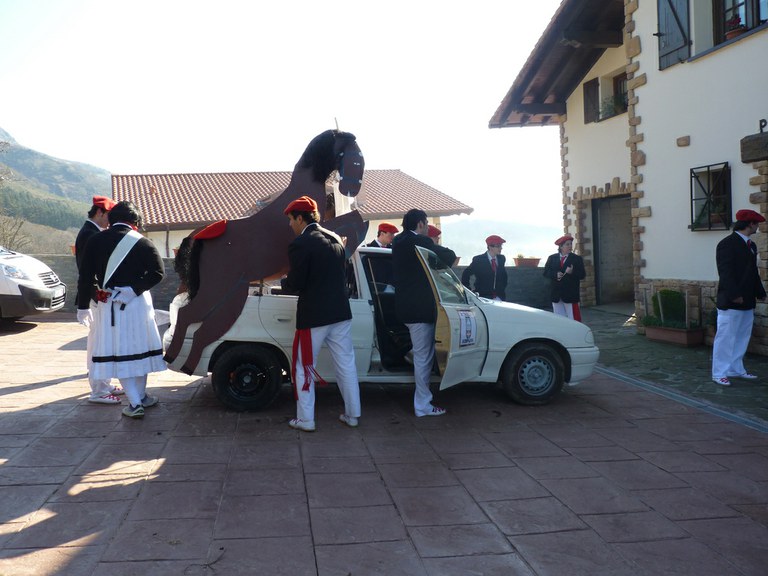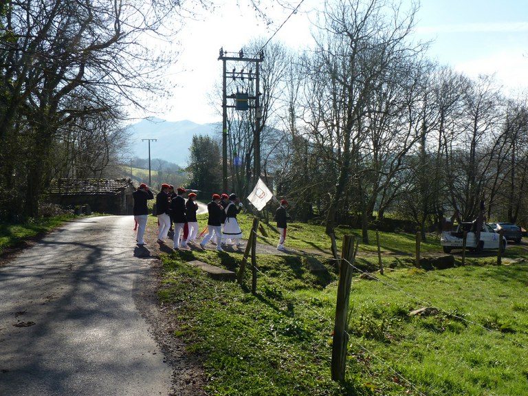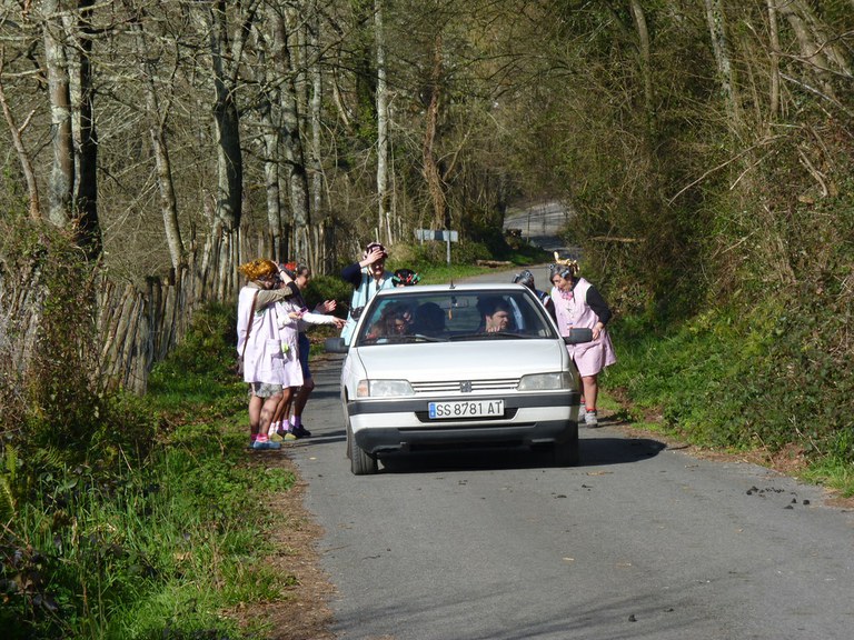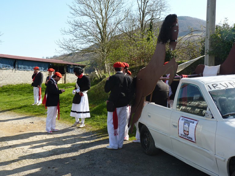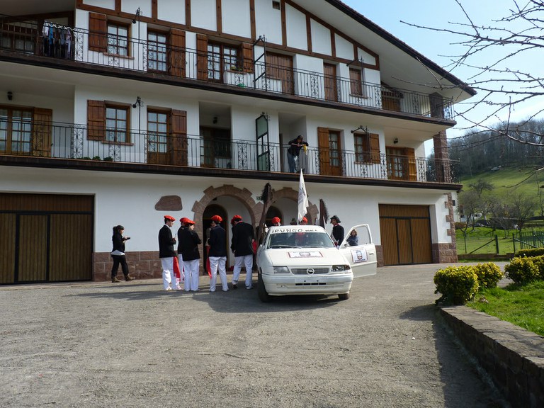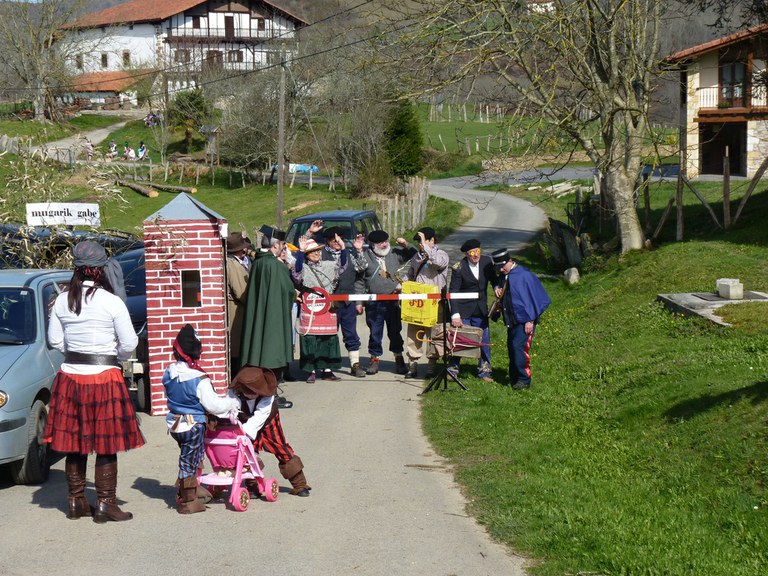 Astelenitan zingar-arrautze eskea egiten da goizez Beran. Koadrilek euren mozorroak jantzi eta baserriz baserri aritzen dira. Baserri guztien aurrean "Zingar-arrautze, zingar-arrautze bat ez bada bertze, bertze!"kantatzen dute eta horrela lortzen dute egun horretako saria. Argazkiak: Jon Iraola. Bera, 2011-03-07.