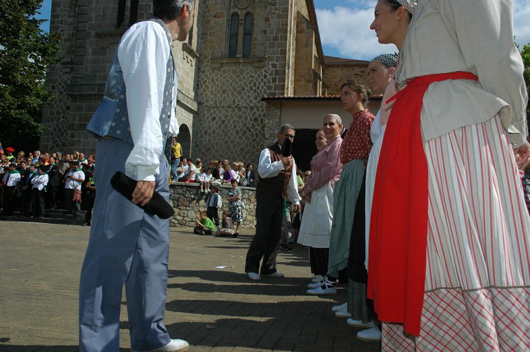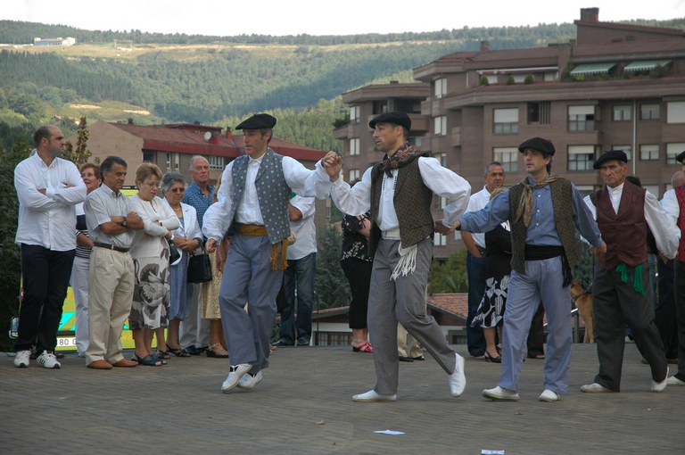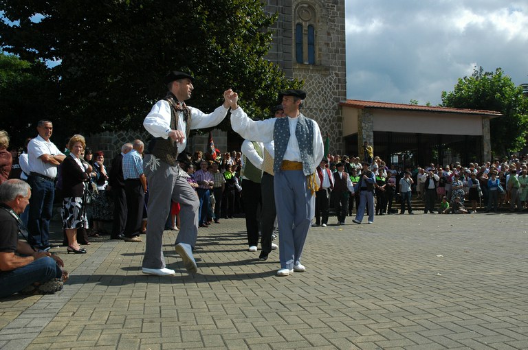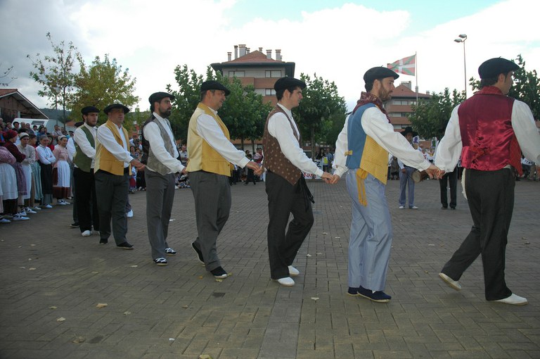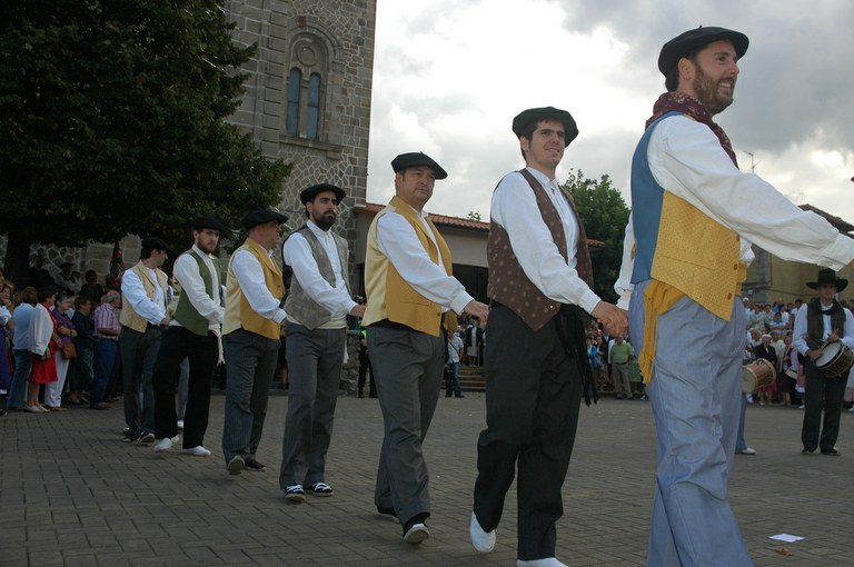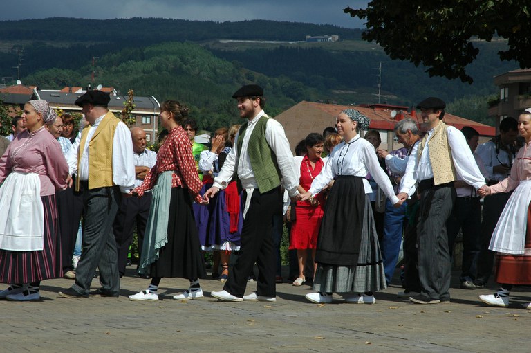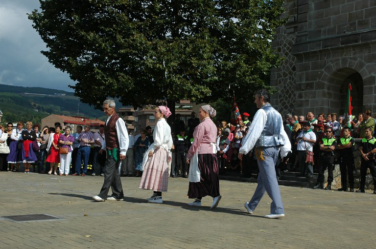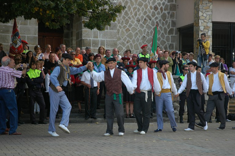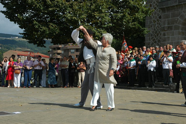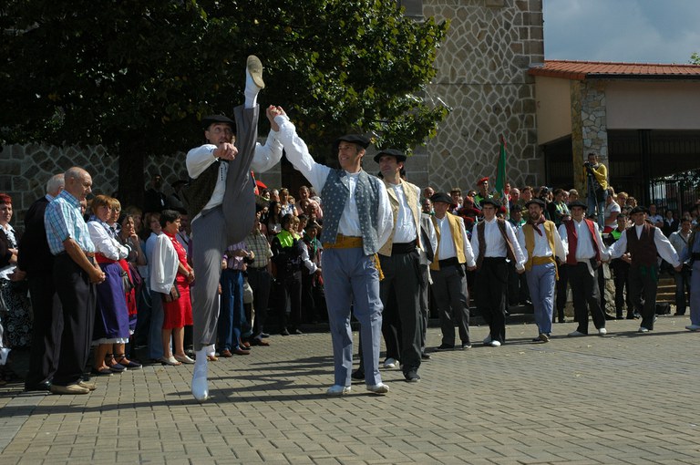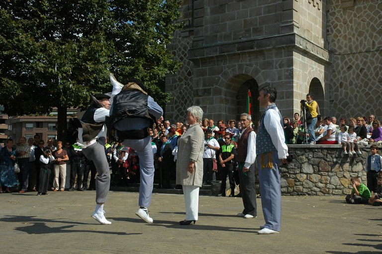Santa Kurutz jaiak ospatzen dituzte Galdakaon, irailaren erdialdean. Bertako Andra Mari dantza taldeko kideek soka-dantza edo erregelak oso osorik dantzatzen dituzte festetako egun nagusian, irailaren 14ean. Galdakao, 2009-09-14. Argazkiak: Oier Araolaza.