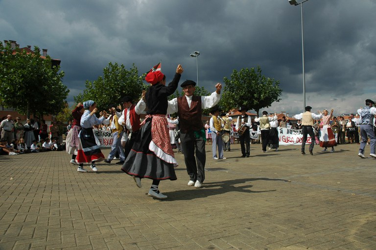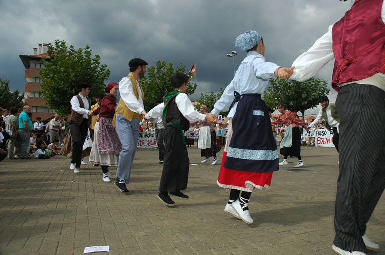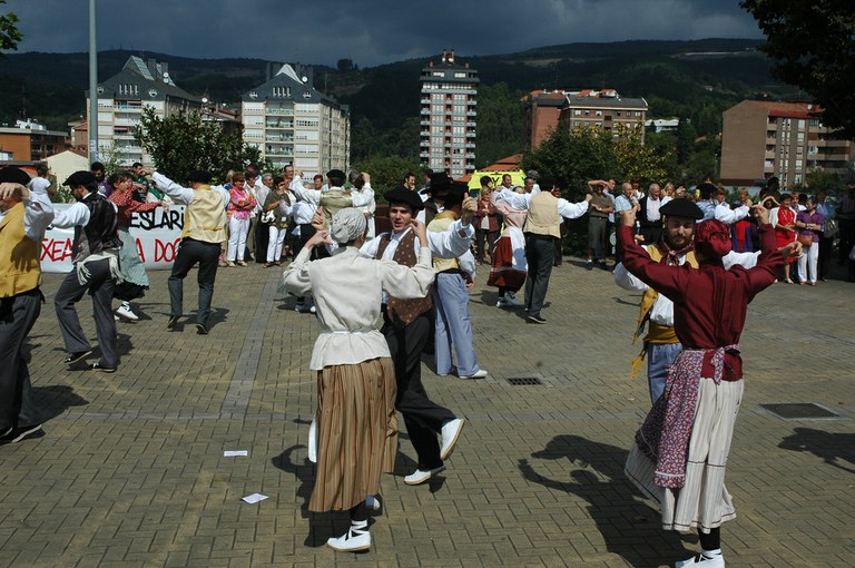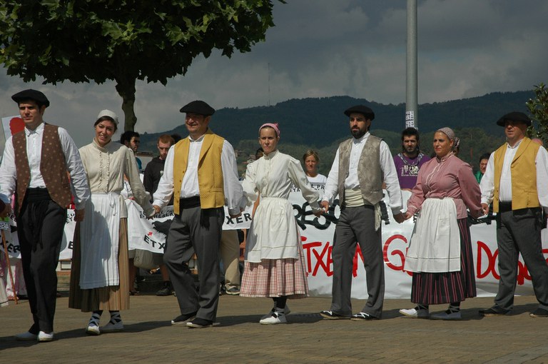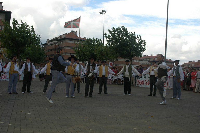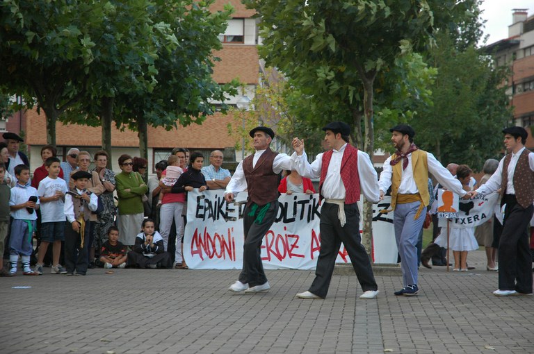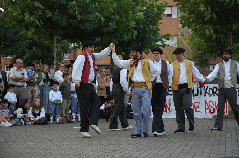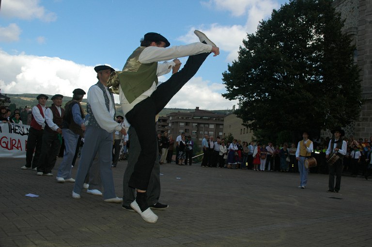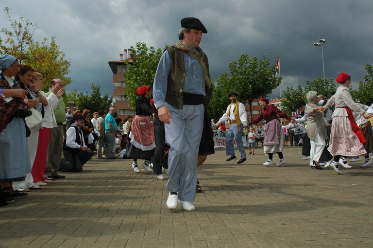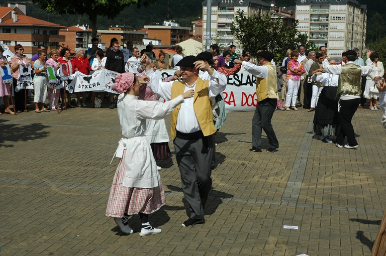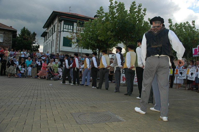 Santa Kurutz jaiak ospatzen dituzte Galdakaon, irailaren erdialdean. Bertako Andra Mari dantza taldeko kideek soka-dantza edo erregelak oso osorik dantzatzen dituzte festetako egun nagusian, irailaren 14ean. Galdakao, 2009-09-14. Argazkiak: Oier Araolaza.