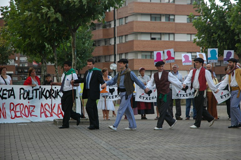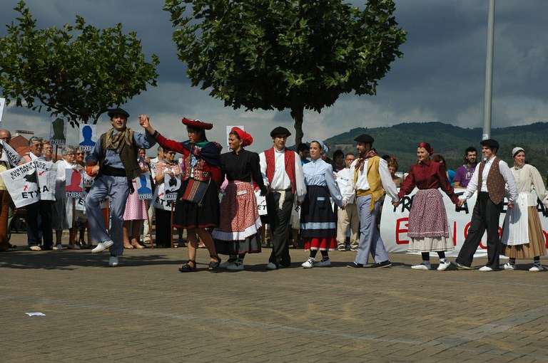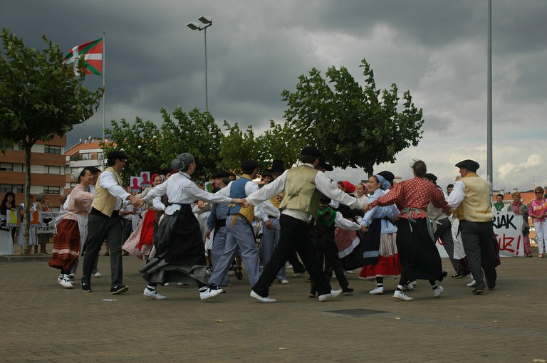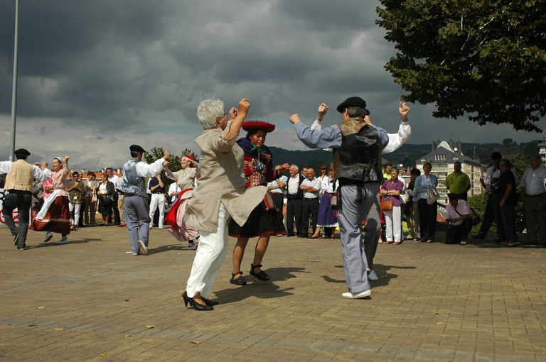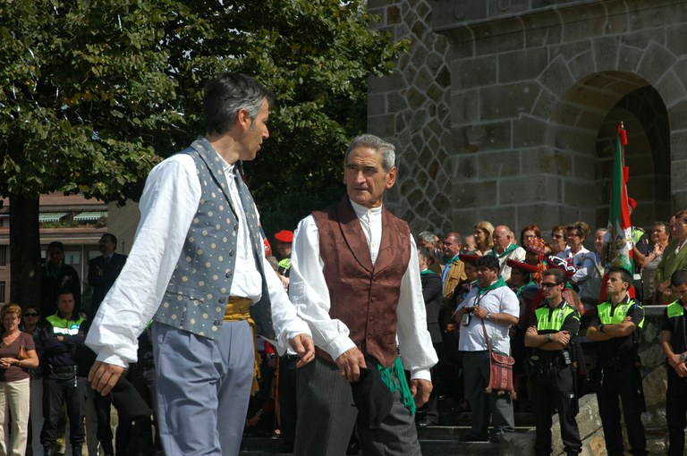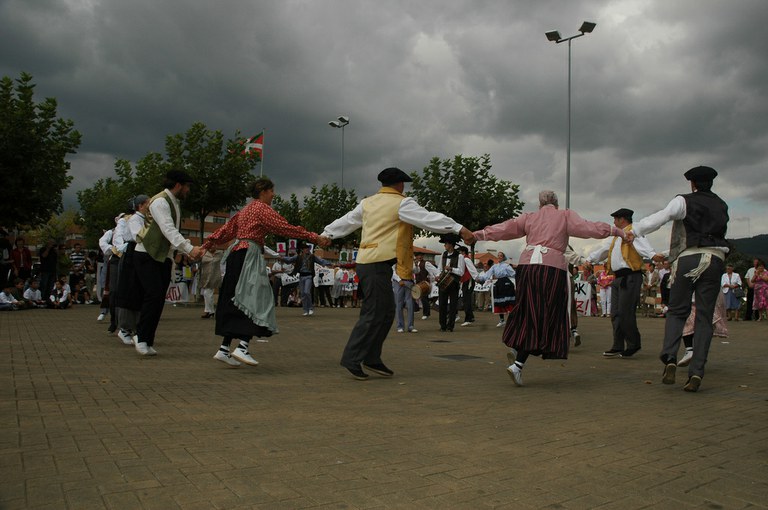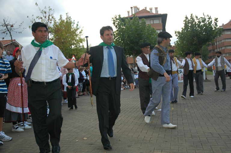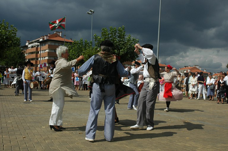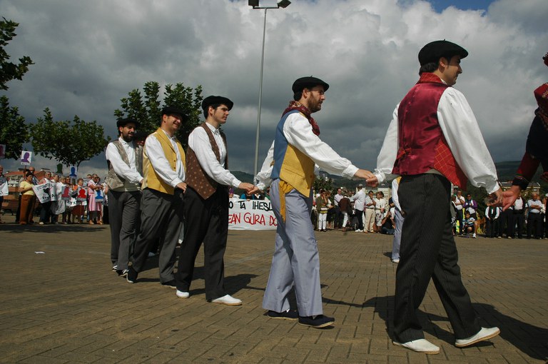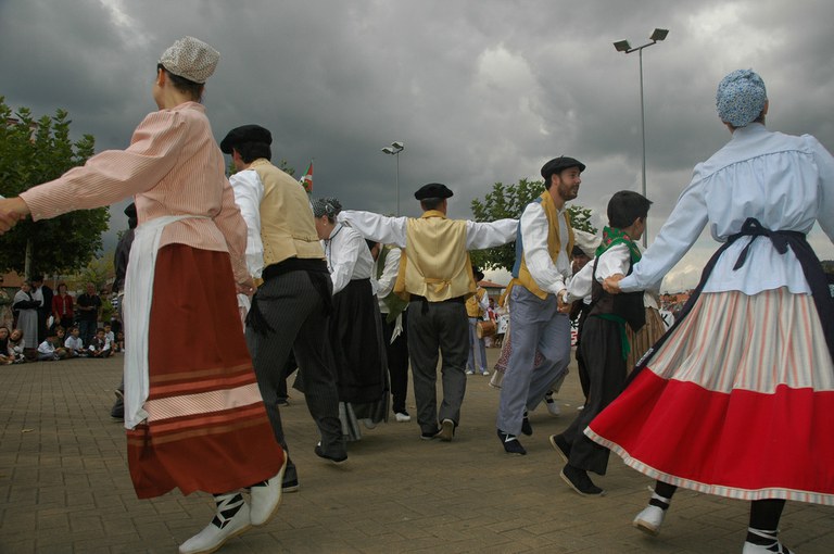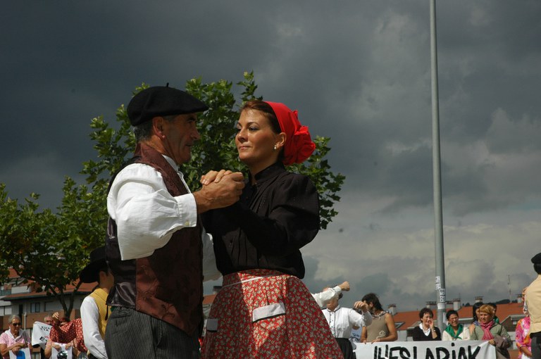 Santa Kurutz jaiak ospatzen dituzte Galdakaon, irailaren erdialdean. Bertako Andra Mari dantza taldeko kideek soka-dantza edo erregelak oso osorik dantzatzen dituzte festetako egun nagusian, irailaren 14ean. Galdakao, 2009-09-14. Argazkiak: Oier Araolaza.