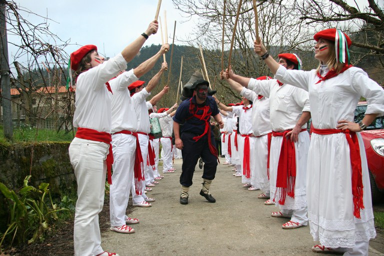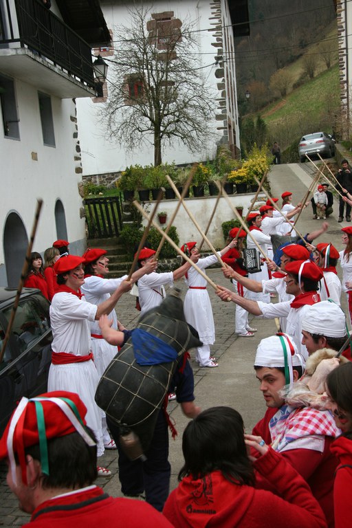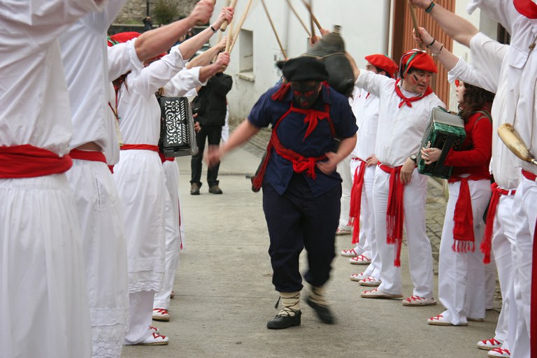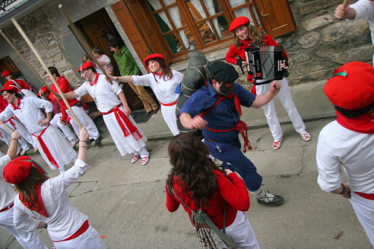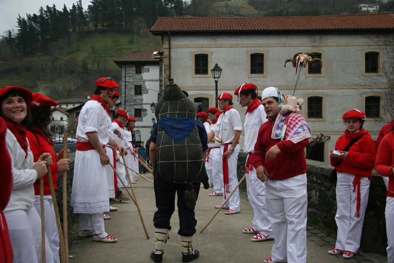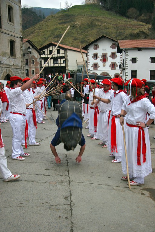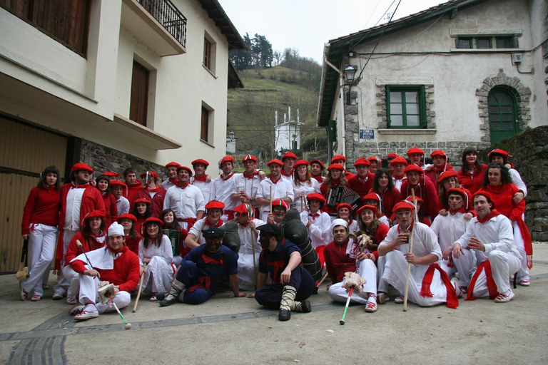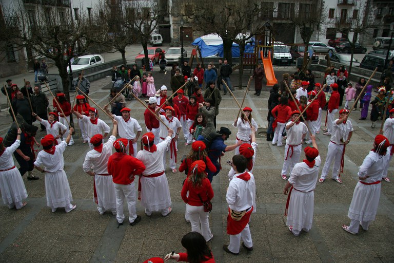 Inauteriak Goizuetan. Inaute asteartean, bazkalostean, mozorroak eta zomorroak herriko kaleetan dabiltza zagi-dantza eginez. Argazkiak: Iñaki Zugasti. Dantzan.com Goizueta, 2009-02-24.