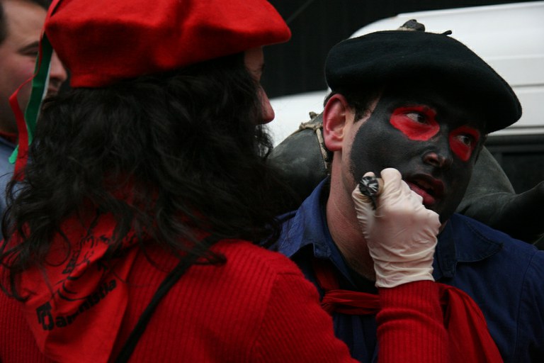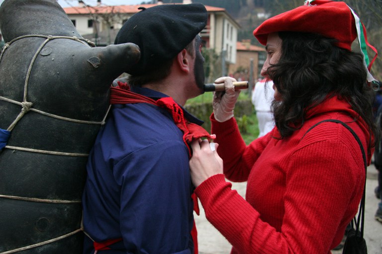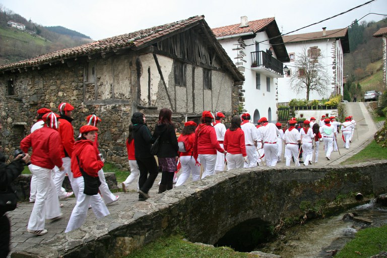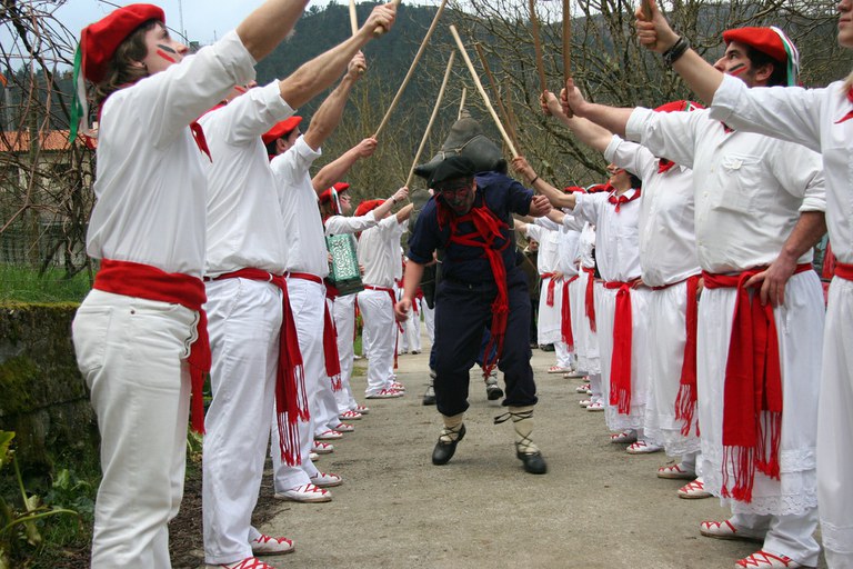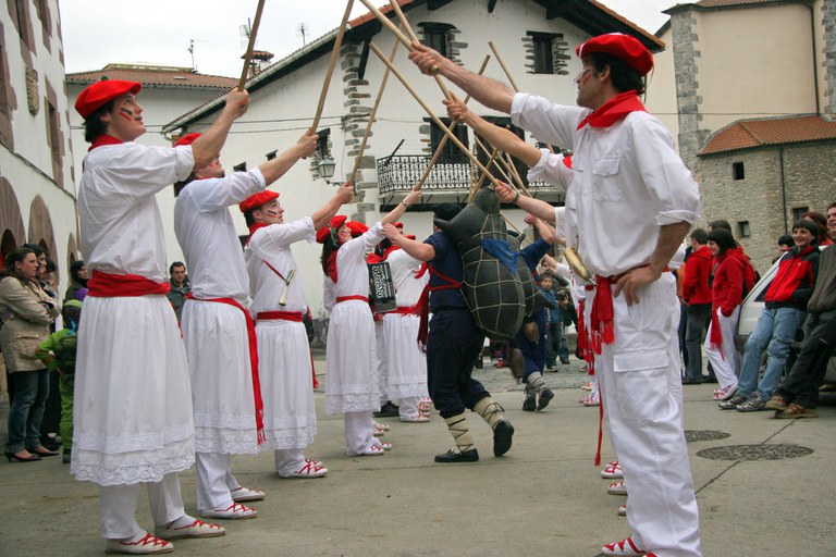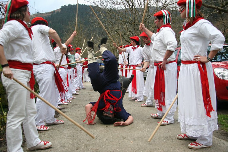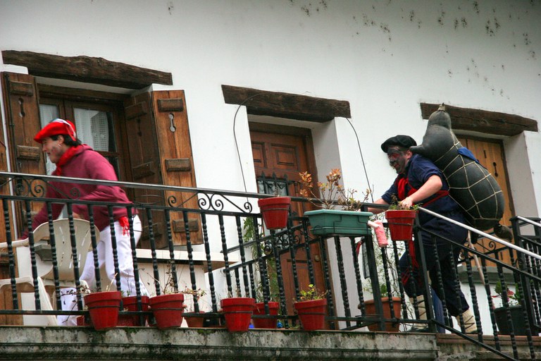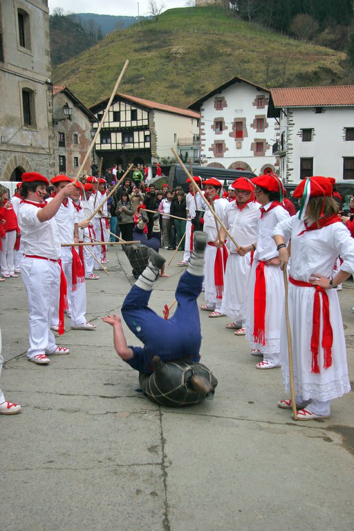 Inauteriak Goizuetan. Inaute asteartean, bazkalostean, mozorroak eta zomorroak herriko kaleetan dabiltza zagi-dantza eginez. Argazkiak: Iñaki Zugasti. Dantzan.com Goizueta, 2009-02-24.