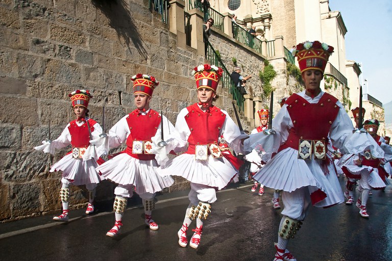 Iruñeko Sen Fermin Aldapakoaren ezpata-dantzaren estreinaldia Duguna dantza taldearen eskutik, 2009ko irailaren 27an. Argazkiak: Iñaki Zugasti. Iruñea, 2009-09-27.