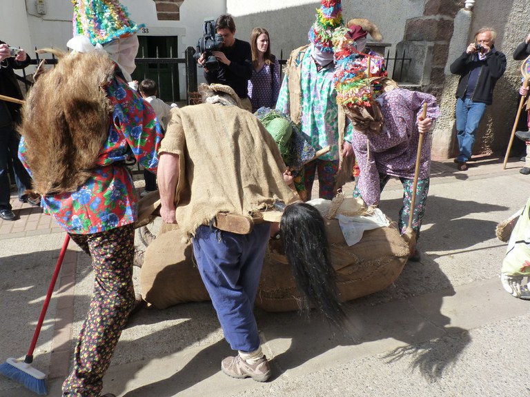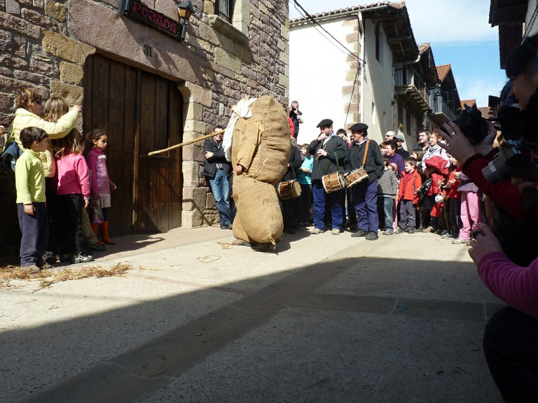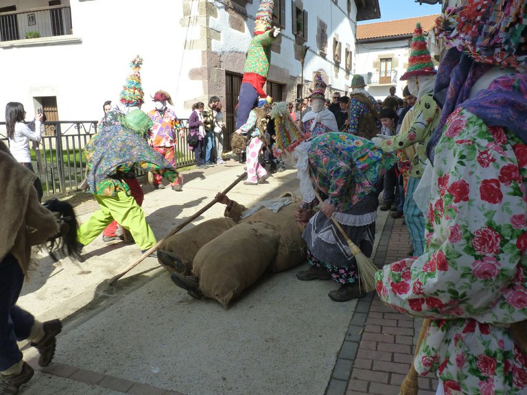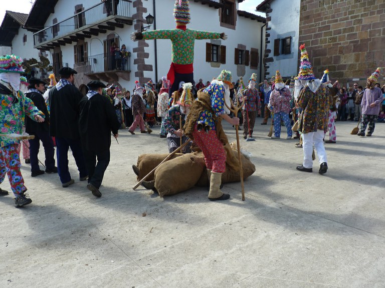 Herriko ostatuko ganbaran jazten dira txatxoak eta Ziripot inaute astelehen eta asteartean. Miel-otxin ere bertan izan ohi da. Ferratzaileak, aldiz, ostatu ondoko etxetik ateratzen dira. Jarraian, txatxoak, Ziripot, Miel-Otxin eta Zaldiko ostatutik. Herritik buelta bat ematen dute plazara heldu arte. Bidean, Zaldikok behin eta berriz botatzen du Ziripot lurrera. Txatxoek Zaldiko joka urruntzen dute eta Ziripoti altxatzen lagundu. Txatxoek, txandaka, Miel-Otxin plazaraino eramaten dute. Plazan haren inguruan zortzikoa dantzatzen dute txatxo eta zenbait herritarrek. Azkenik, amaitzean, ostatuan bukatzen dute ibilbidea. Argazkiak: Jon Iraola. Lantz, 2011-03-7.