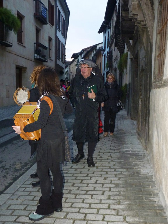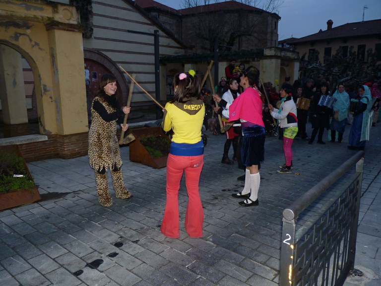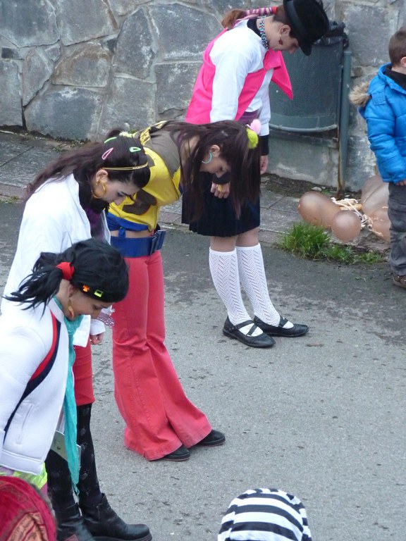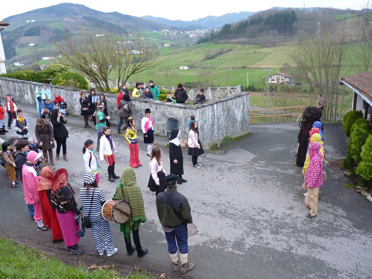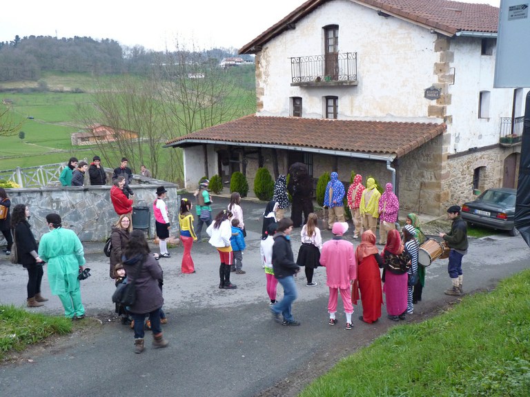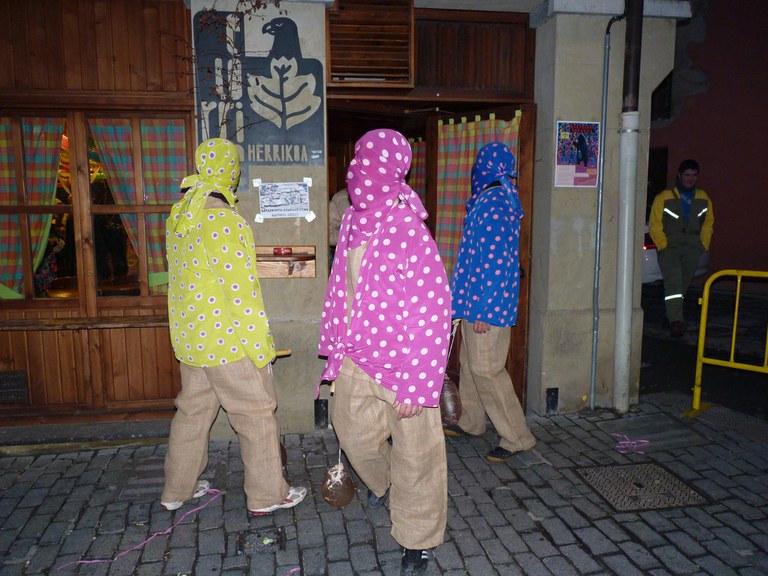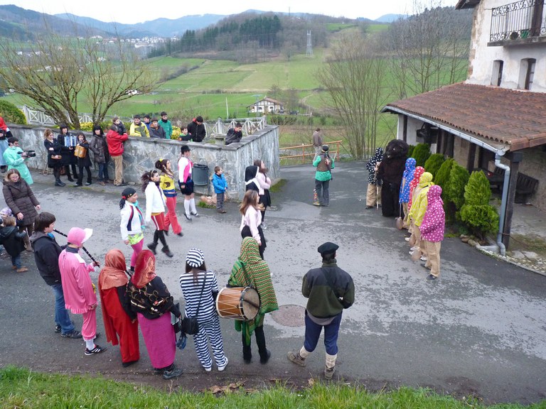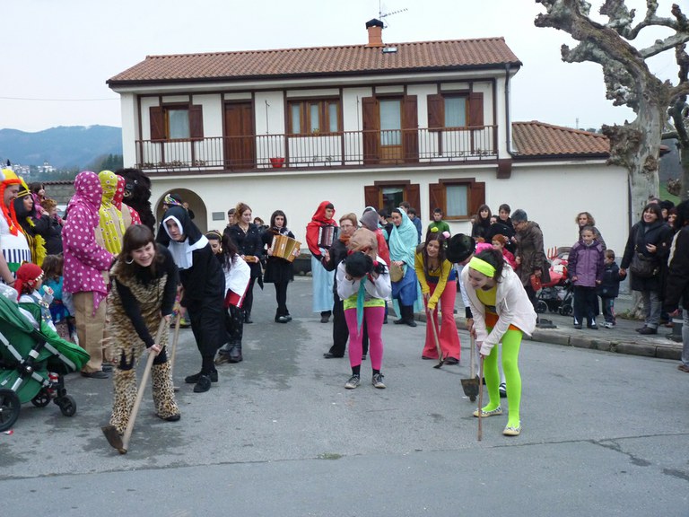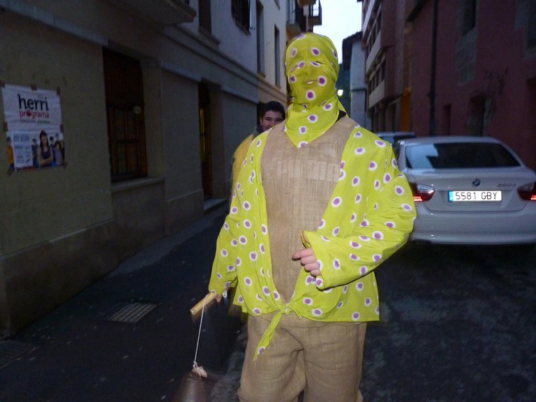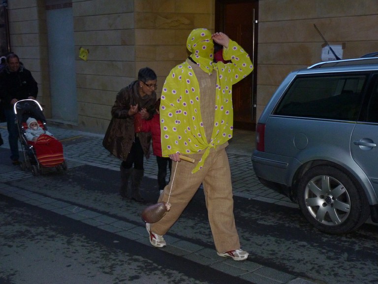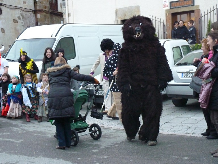 Garai bateko ohitura berreskuratuz lau urte dira hartza Aizkorritik Segurara jaisten dela ostiral mehe egunean. Bere inguruan ibiltzen dira uxatzaileak, aurrean harrapatzen duten edonori maskuri edo puxikarekin jotzeko. Herriko puntu ezberdinetan, herriko gazte talde batek, bakoitzak bere mozorroa jantzita duela, jorrai-dantza dantzatzen du. Argazkiak: Jon Iraola, 2011-03-04.