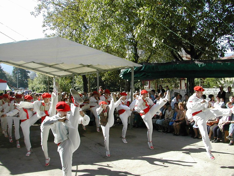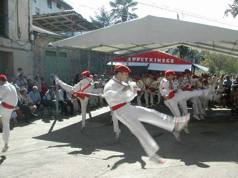 Markina-Xemeinen, Arretxinagako San Migelen ermitaren ondoan, 2002ko irailaren 29an, San Migel egunez Zerutxu dantza taldeak egin zuen ezpata-dantza.