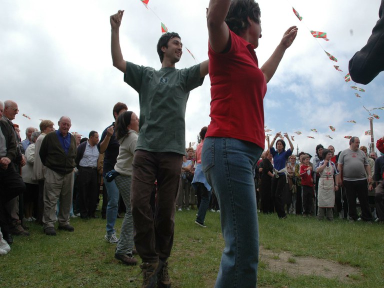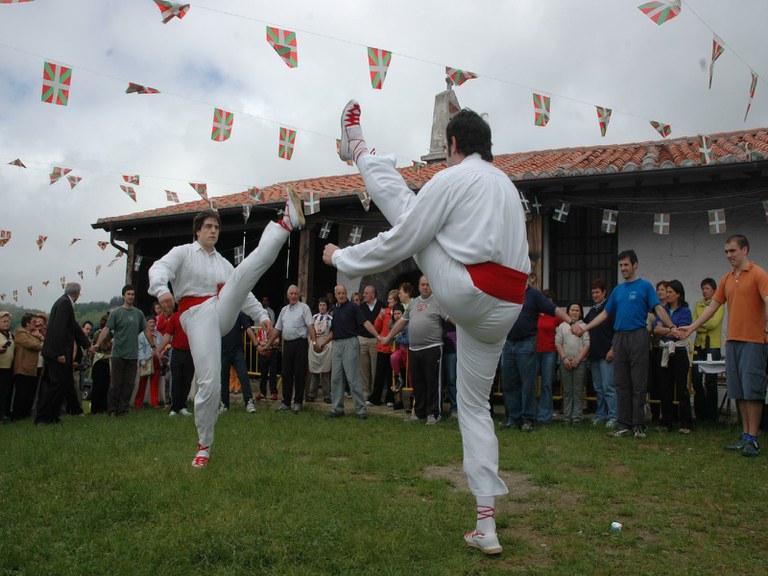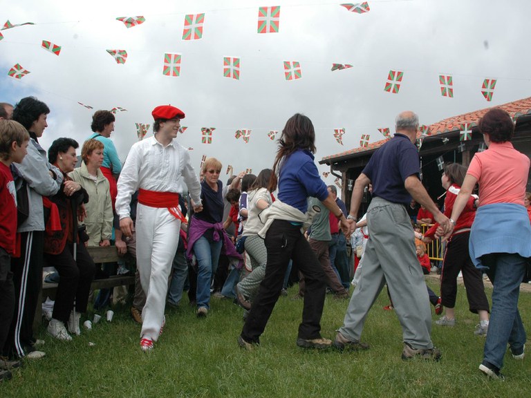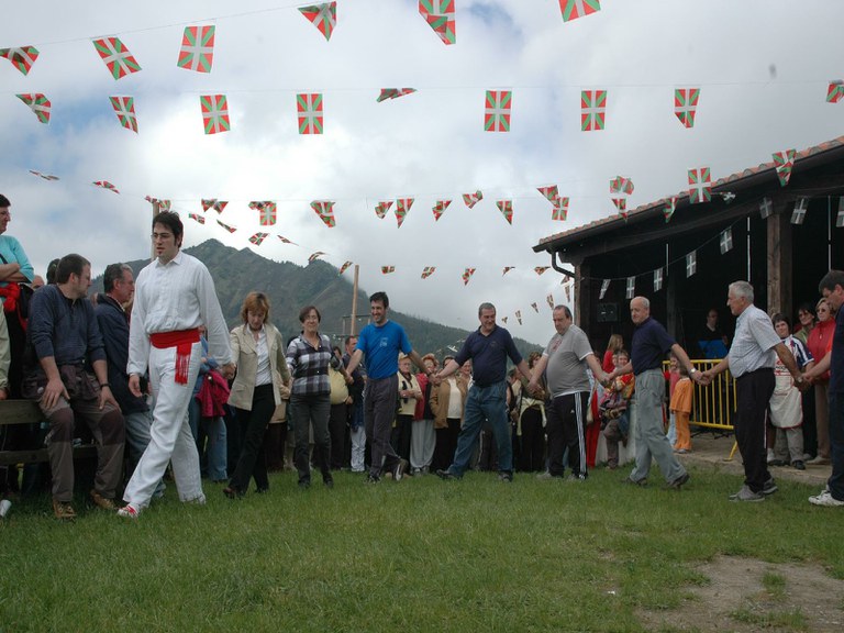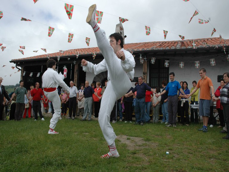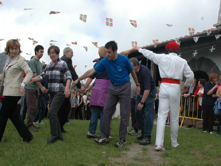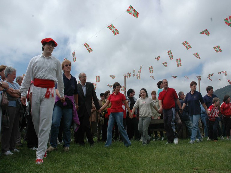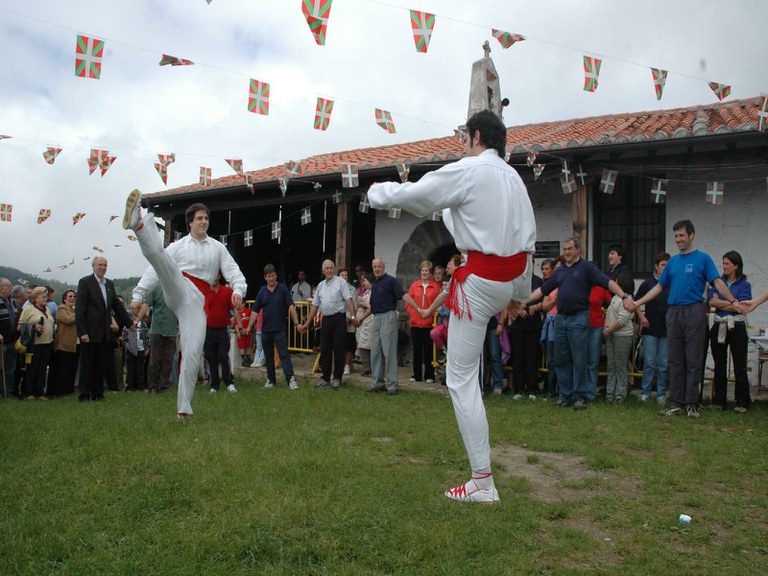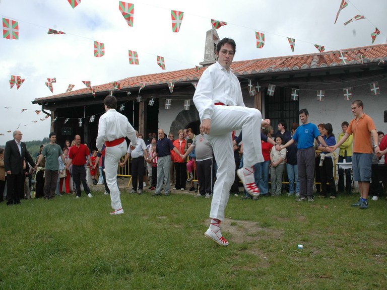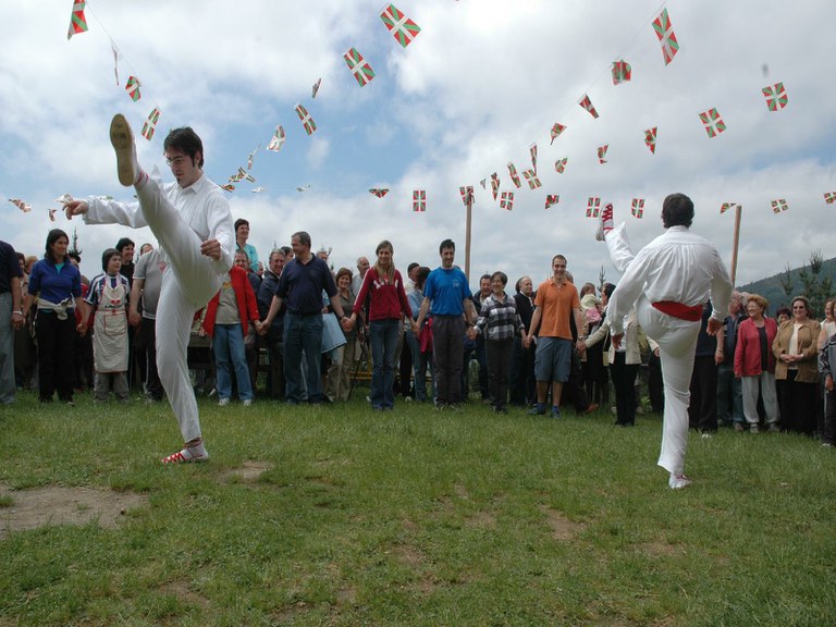 Soka-dantza Eibarren, Santa Kurutz auzoan, Kezka dantza taldeak gidatuta.