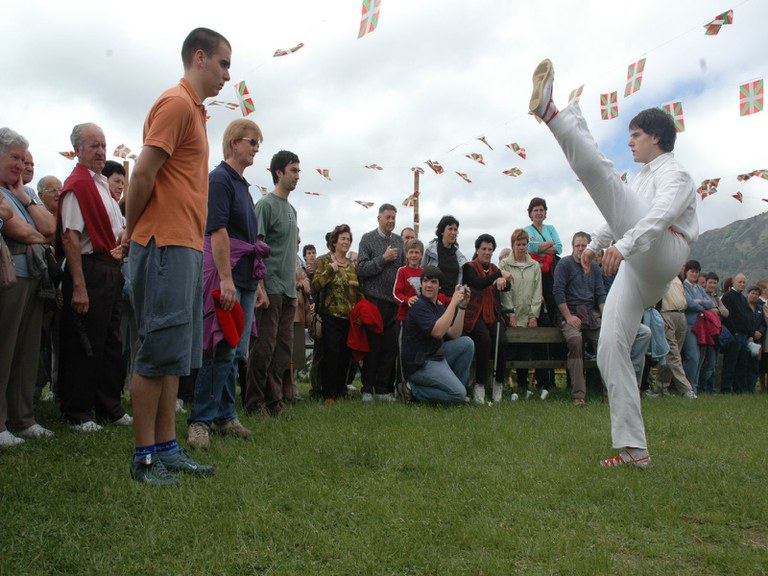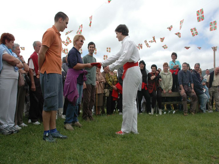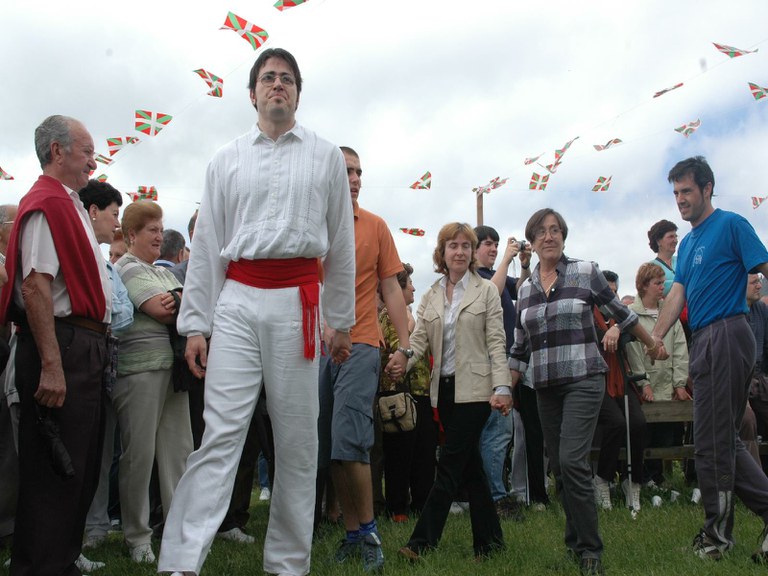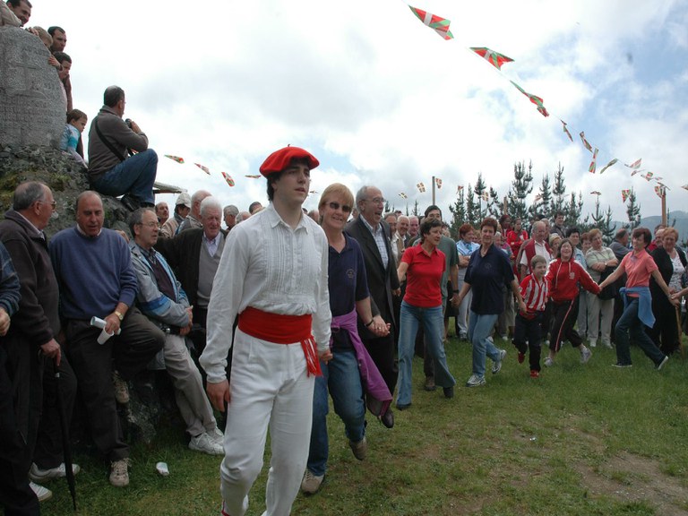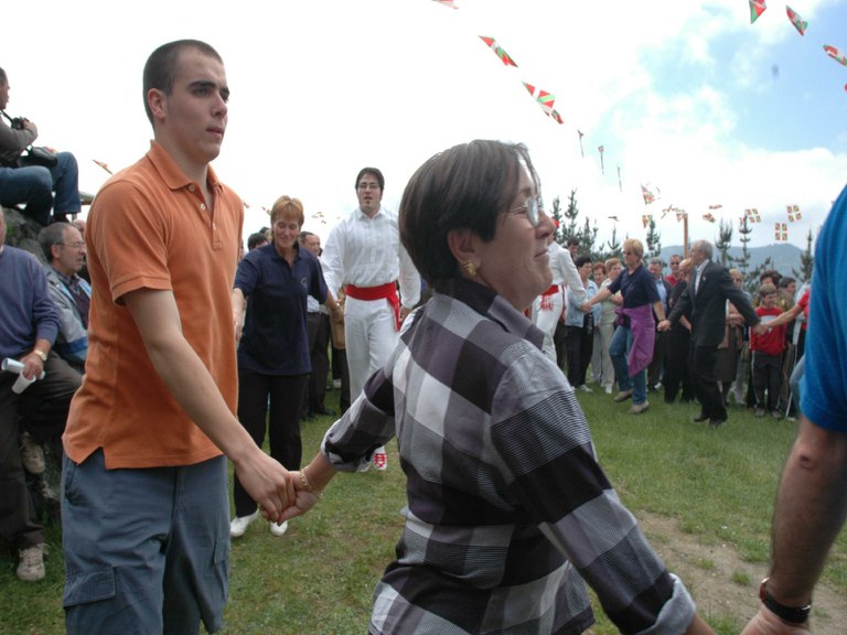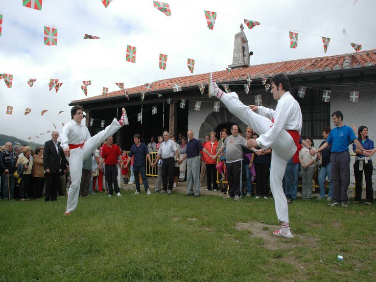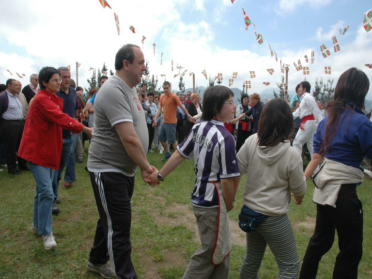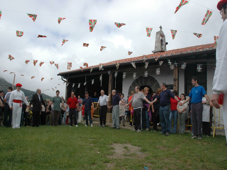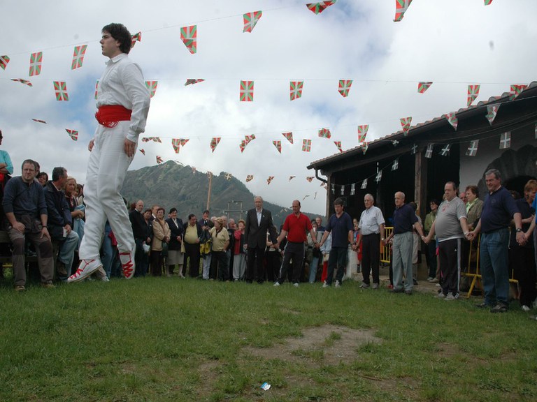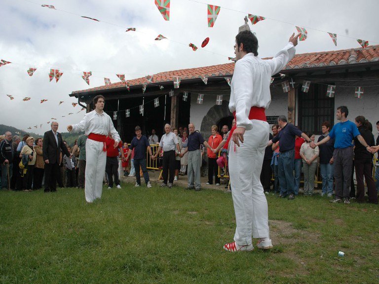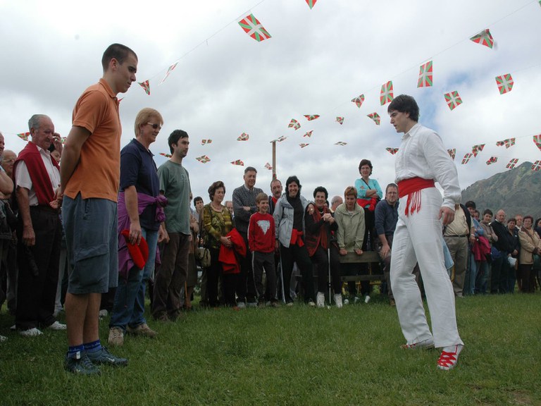 Soka-dantza Eibarren, Santa Kurutz auzoan, Kezka dantza taldeak gidatuta.