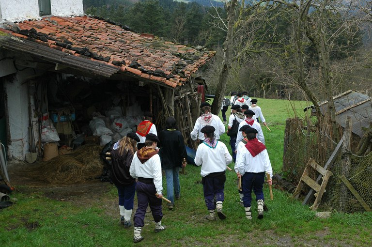 Inauterietako igande eta astelehenean ateratzen dira Amezketako talai-dantzariak. Igandean eta Amezketako kaleetan eta inguruko baserrietan ibili ondoren, astelehenean Amezketako gainontzeko baserrietan eta Bedaioko baserrietan ibiltzen dira baserriz baserri talai-dantzak egiten. Argazkiak 2008ko otsailaren 4koak dira, Bedaio inguruko baserrietan ateratakoak. Argazkiak: Oier Araolaza