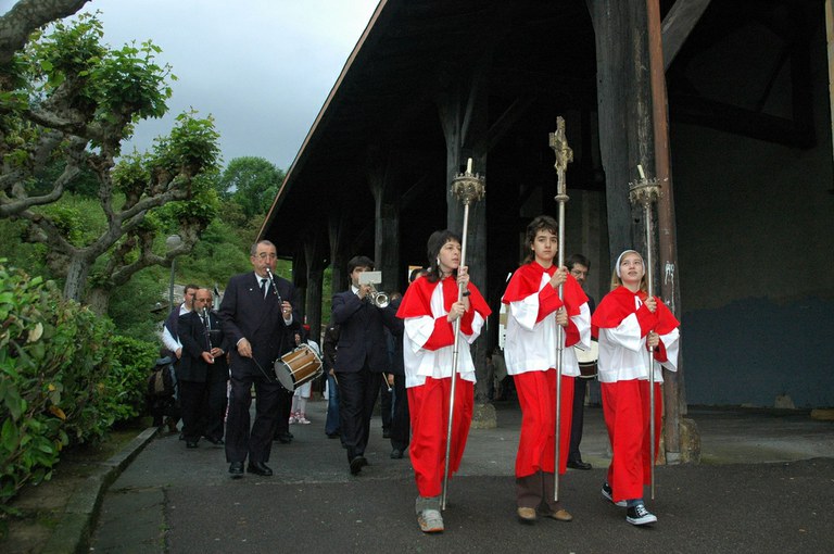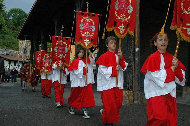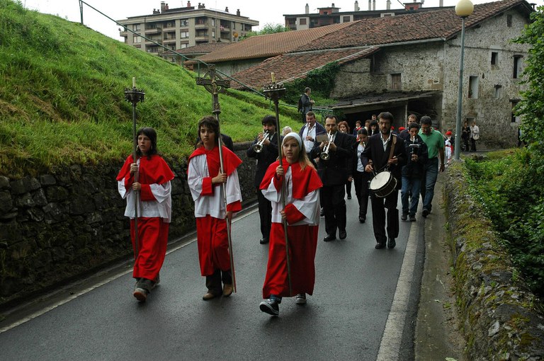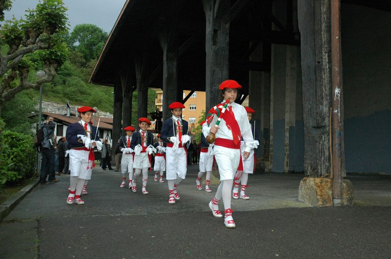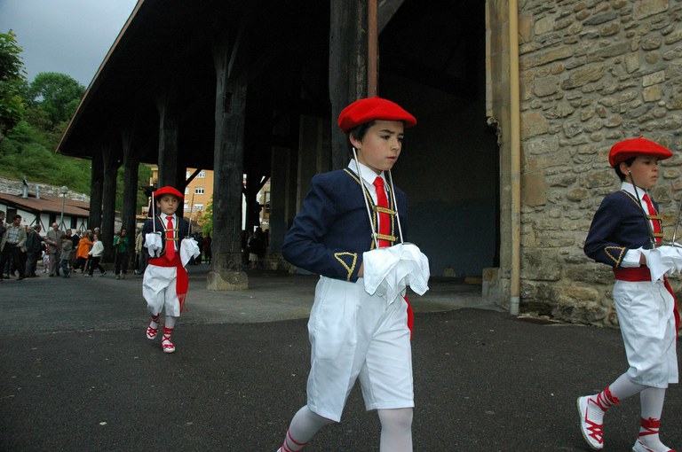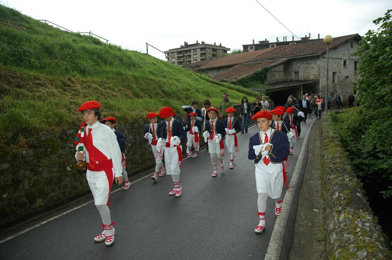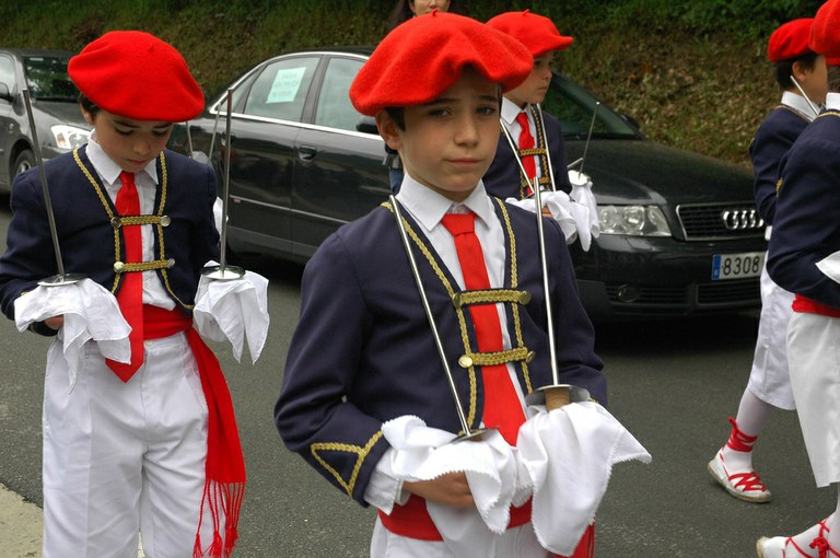 Loinatz jaiak Beasainen Loinatzen bigarrenean. Prozesioa, ezpata-dantza eta banderaren agurra. 2007ko maiatzaren 21ean.