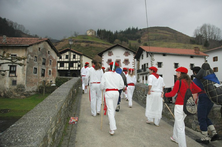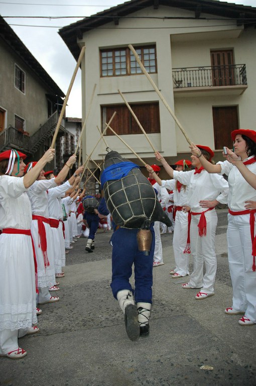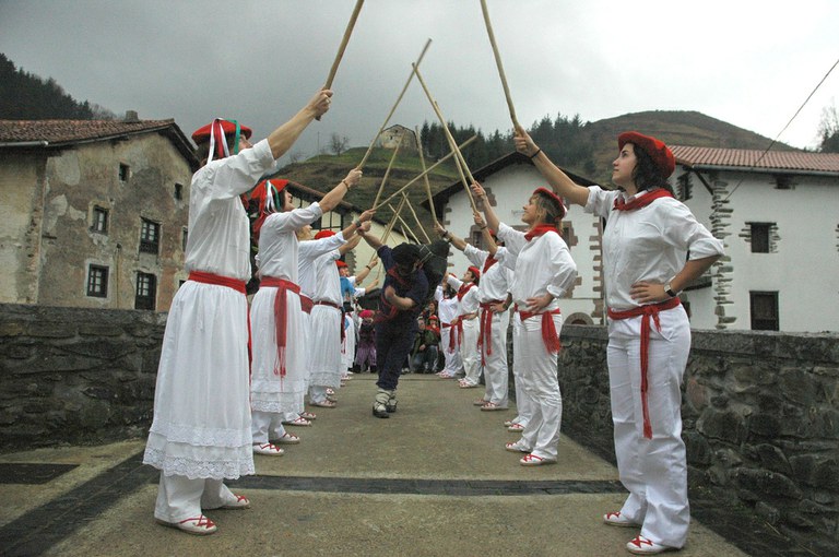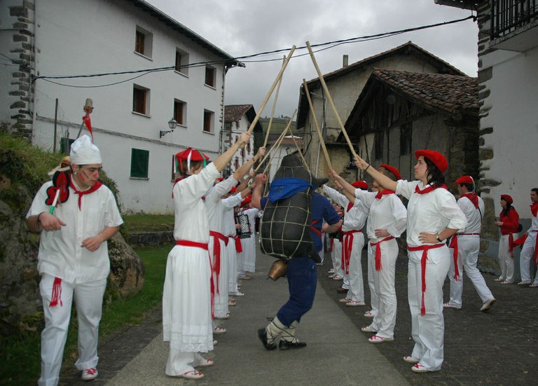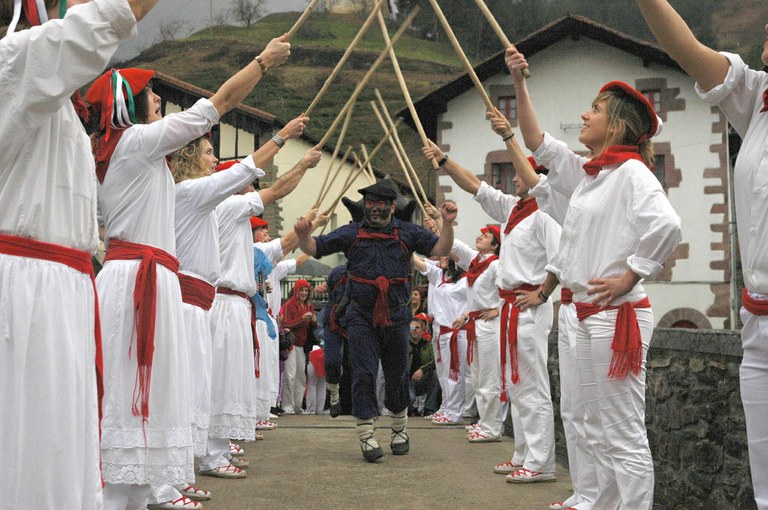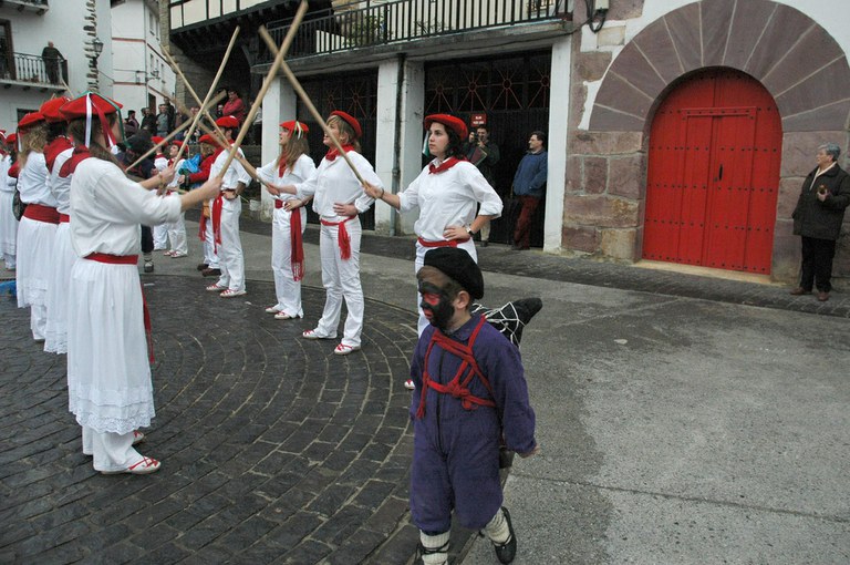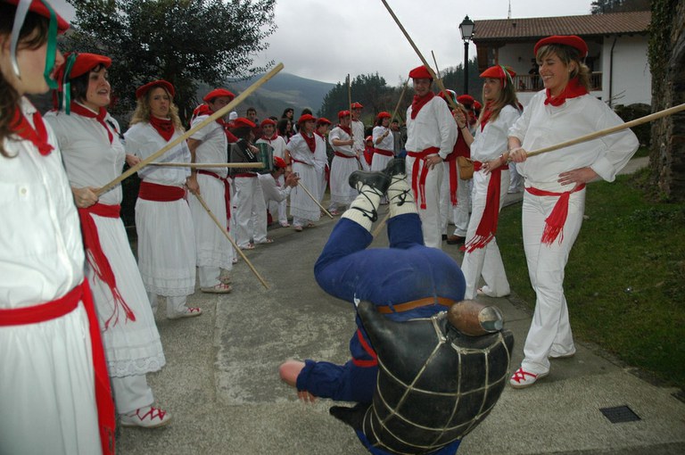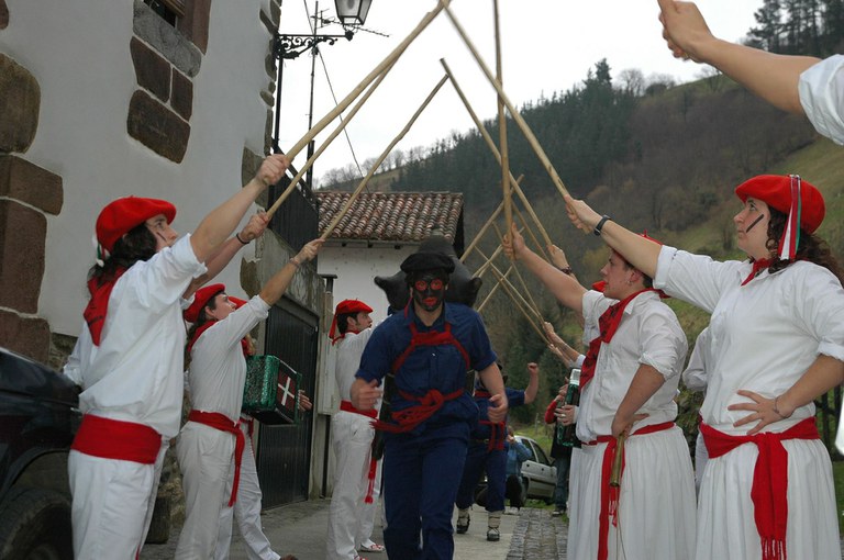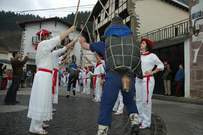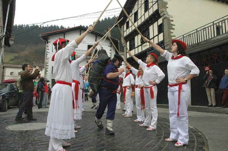 Inoteak Goizuetan. Inauterietako astearte arratsaldean mozorro edo makil-dantzariak, zomorro edo ikazkinak eta soinu-joleek Goizuetako kaleetara plazaratutako zahagi-dantza. 2007ko otsailaren 20a.
