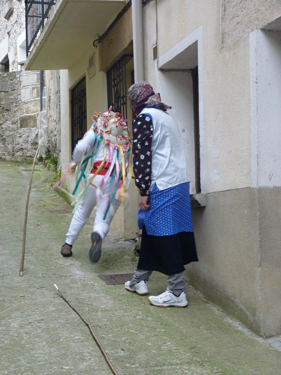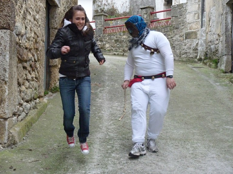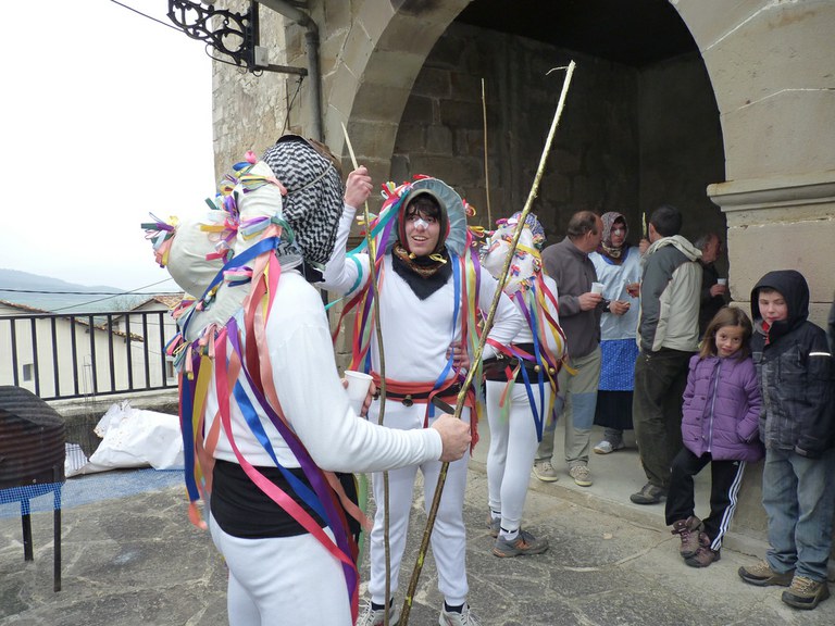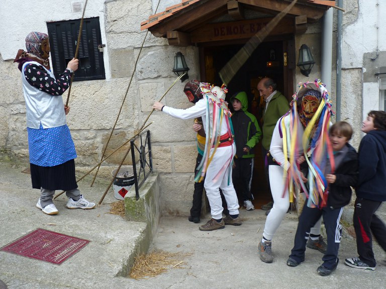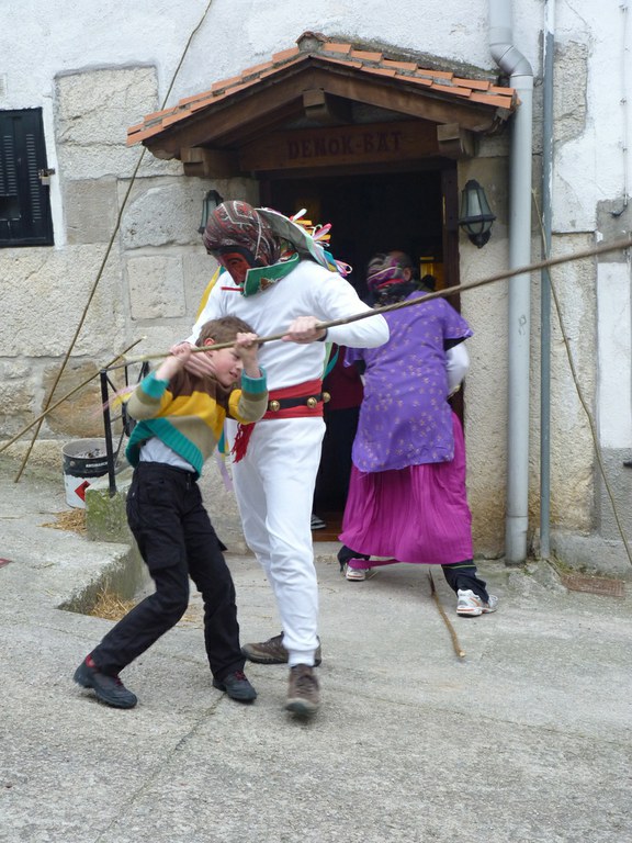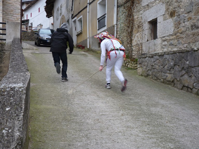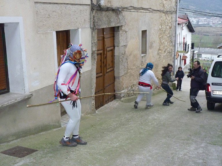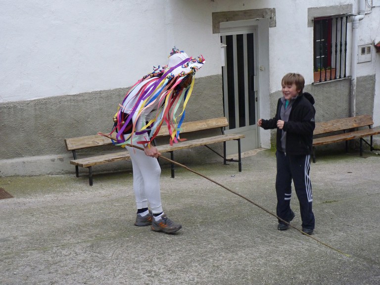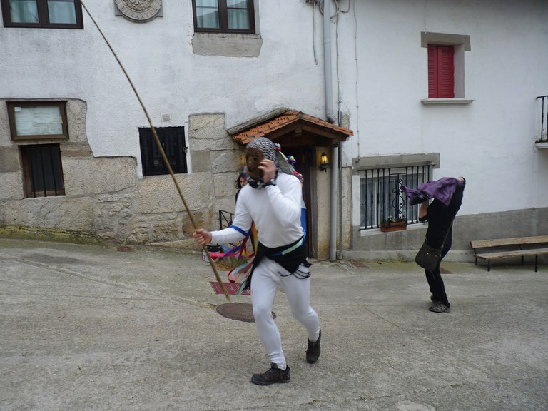 Mamuxarroak brontzezko maskara aurpegian, koloredun xingolaz apaindutako kapela edo zapia buruan eta makila eskutan Unanura inaute asteartez hurbiltzen den edonoren atzetik ibiltzen diren pertsonaiak dira. Mamuxarroak nondik dabiltzan jakitea erraza da ordea, zintzarriek agerian uzten baitituzte. Mamuxarro batek, mutuak, ez darama zintzarririk ordea, eta honek ezustean harrapatzea ez da harritzekoa. Argazkiak: Jon Iraola. Unanu, 2011-03-08.