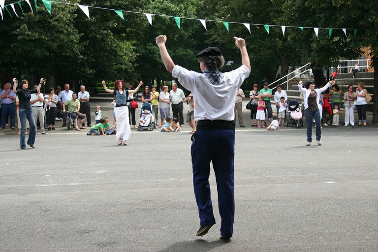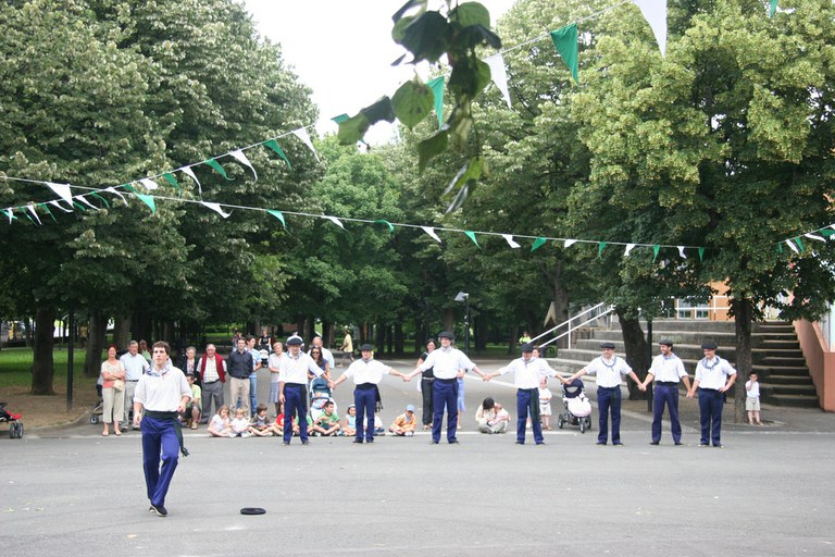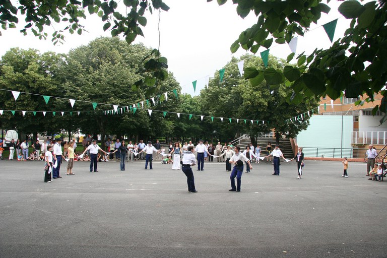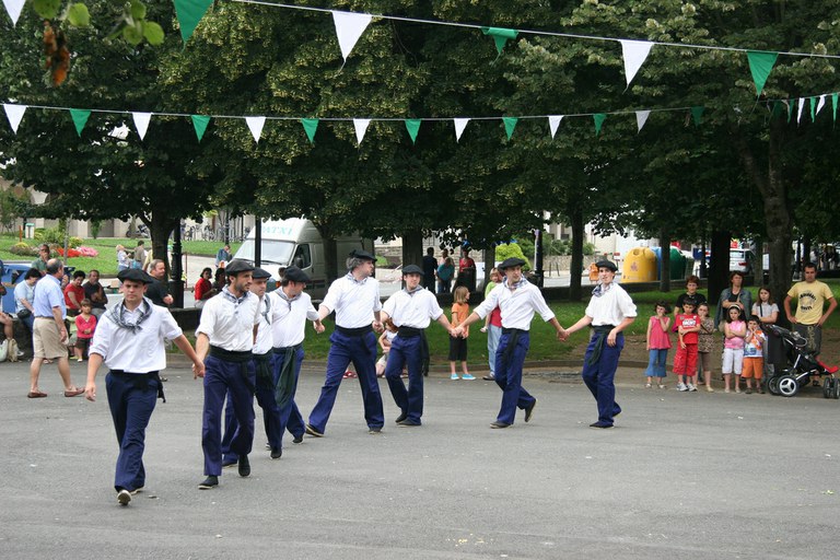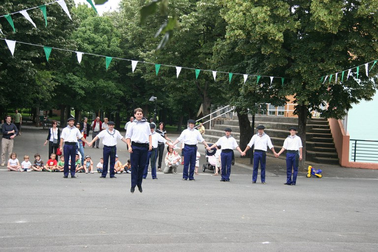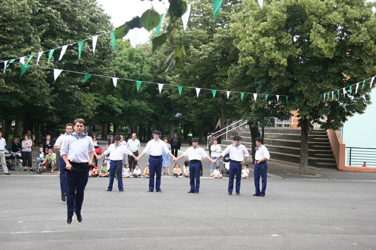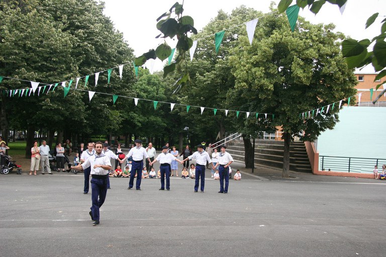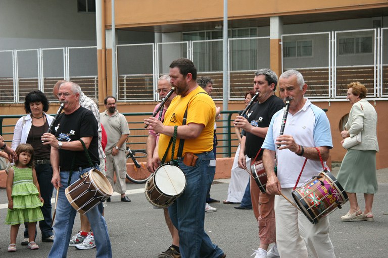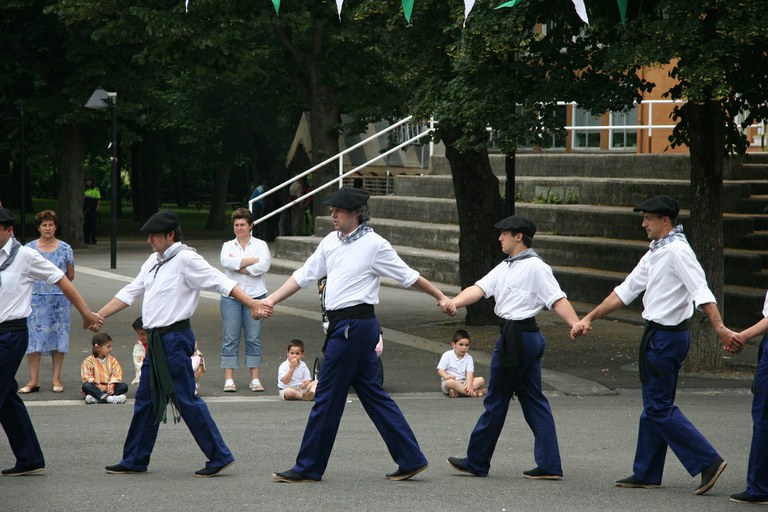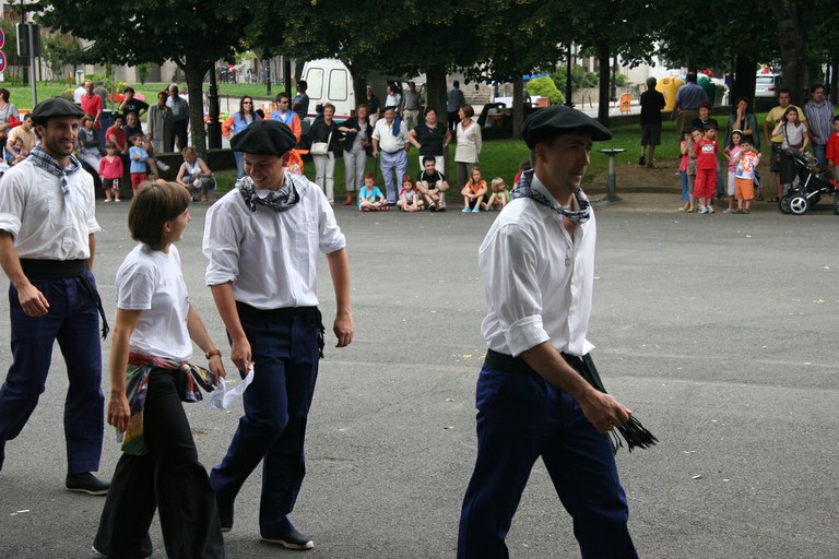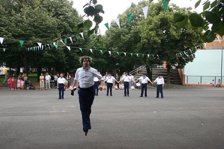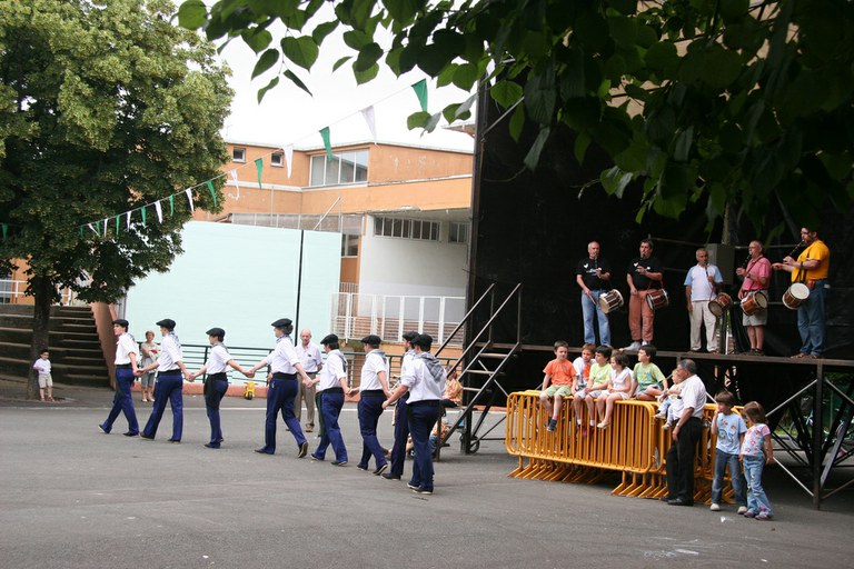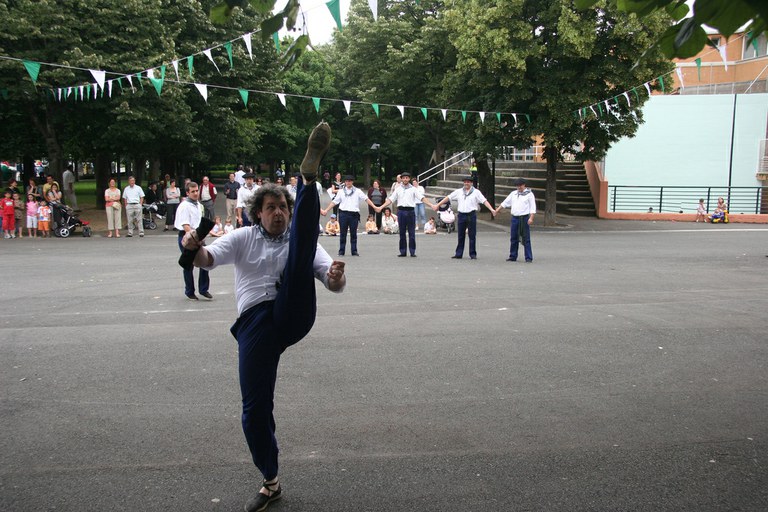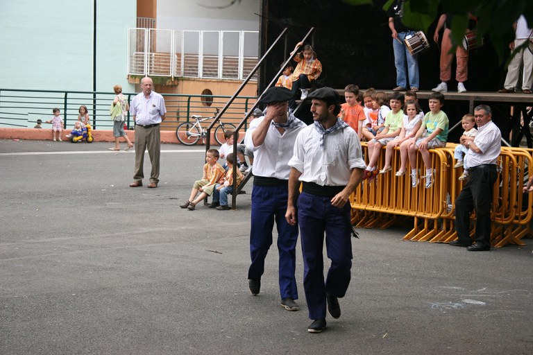 Iñurritzako zelaian, bertako gazteek eskainitako Aurreskua San Pelaio jaietan. Zarautz, Iñurritza, 2008ko ekainaren 26an