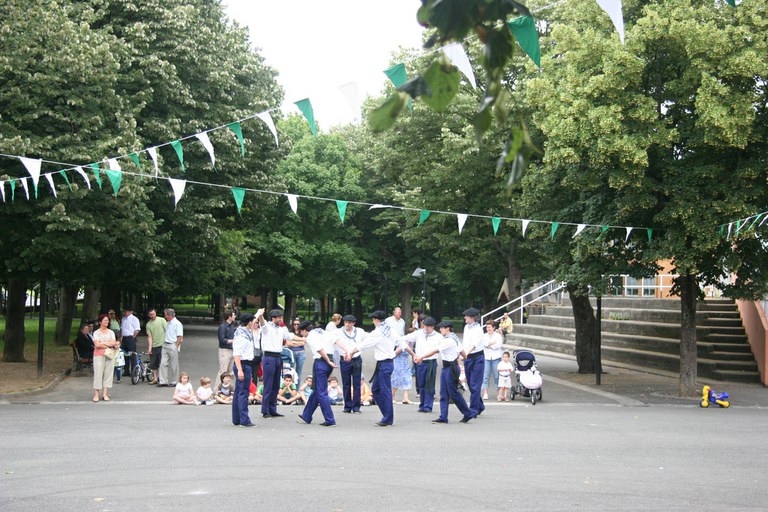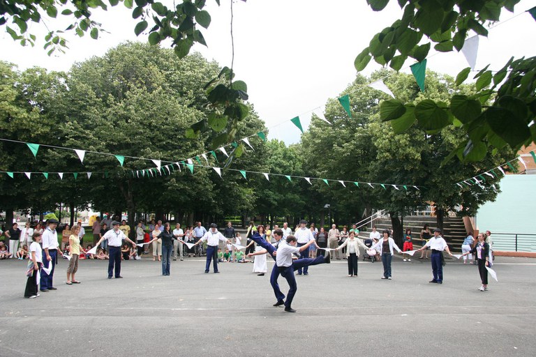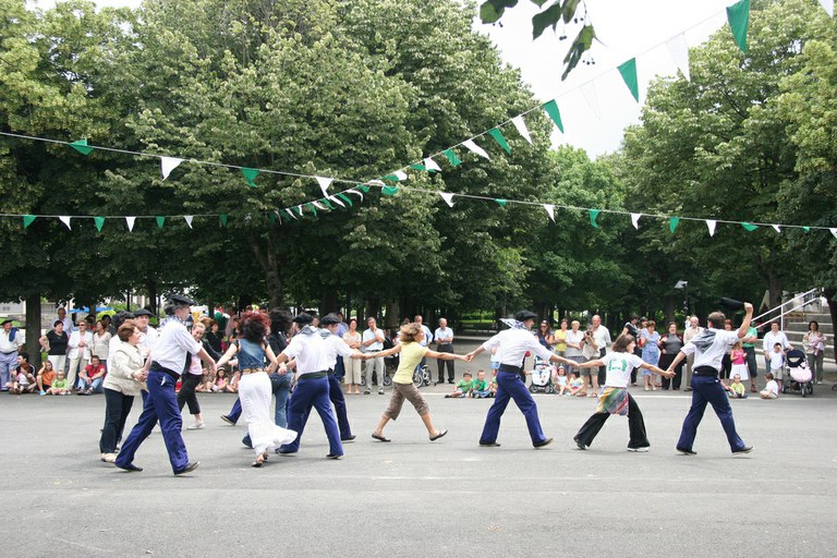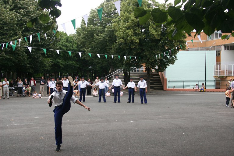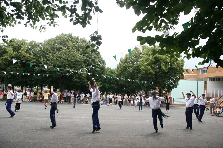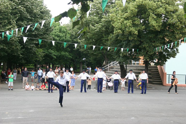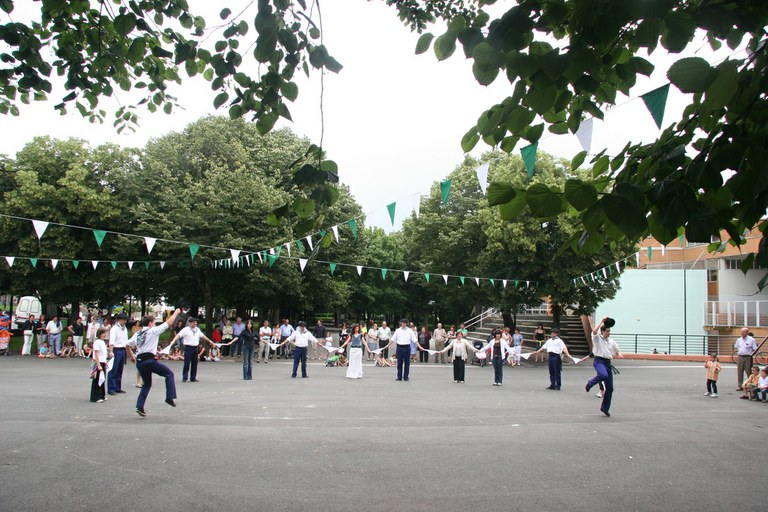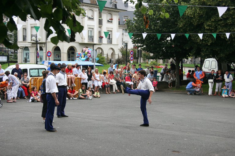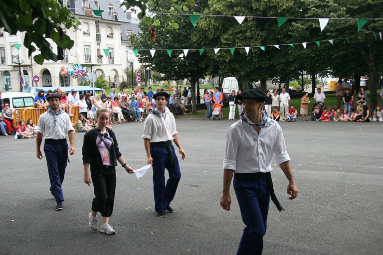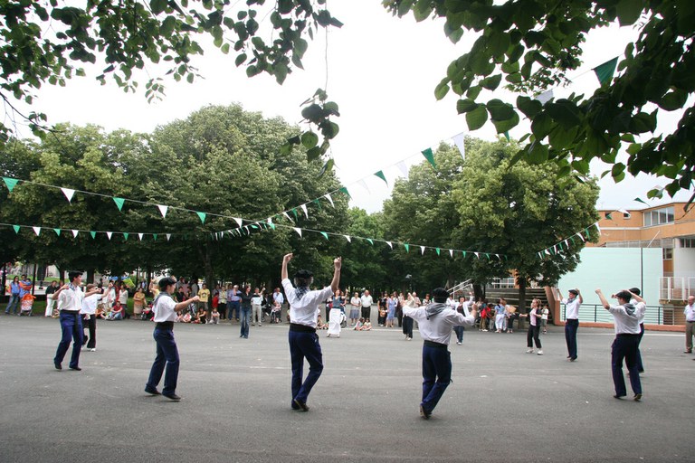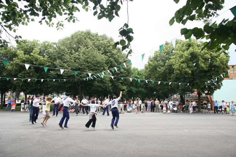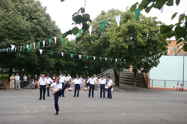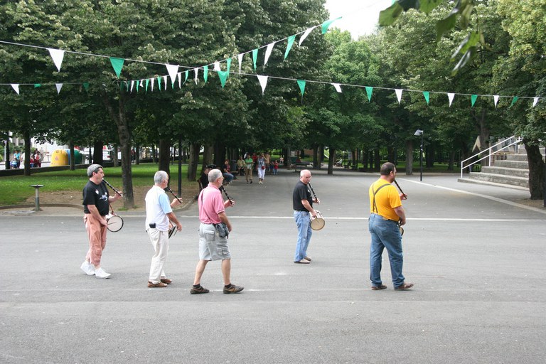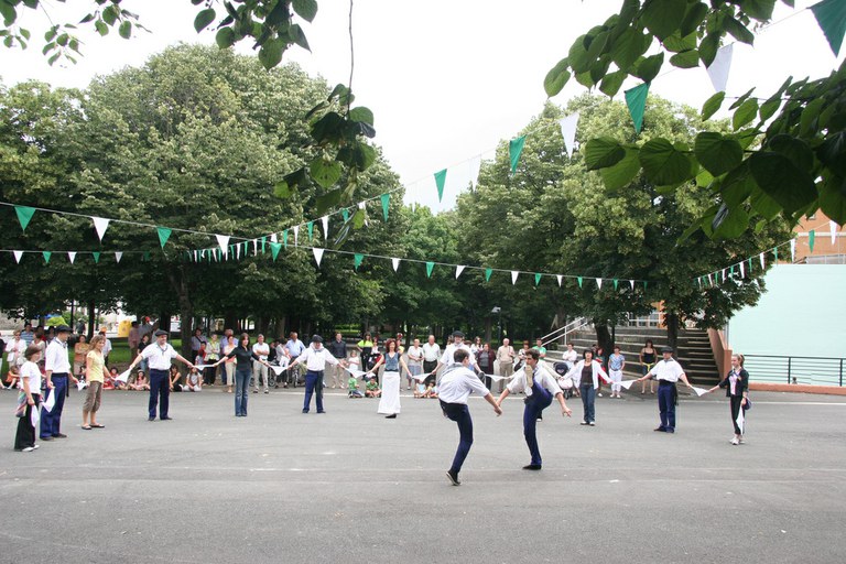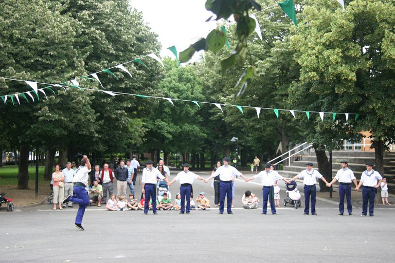 Iñurritzako zelaian, bertako gazteek eskainitako Aurreskua San Pelaio jaietan. Zarautz, Iñurritza, 2008ko ekainaren 26an