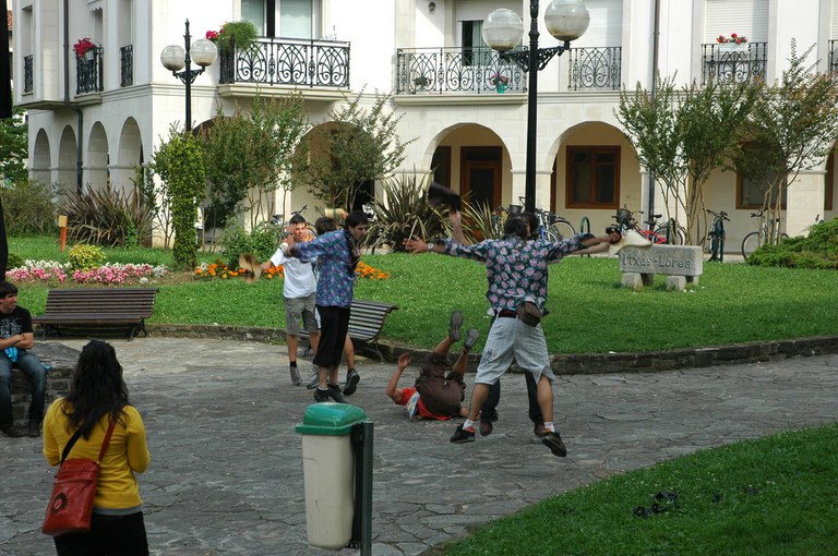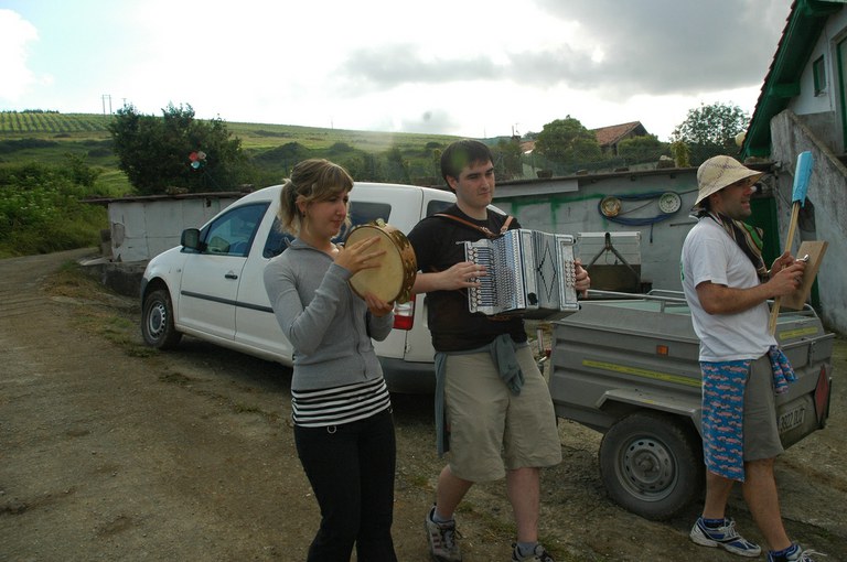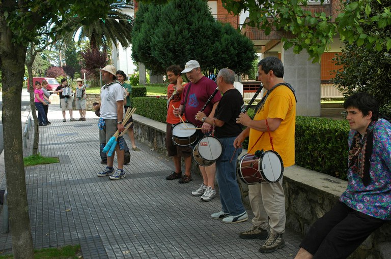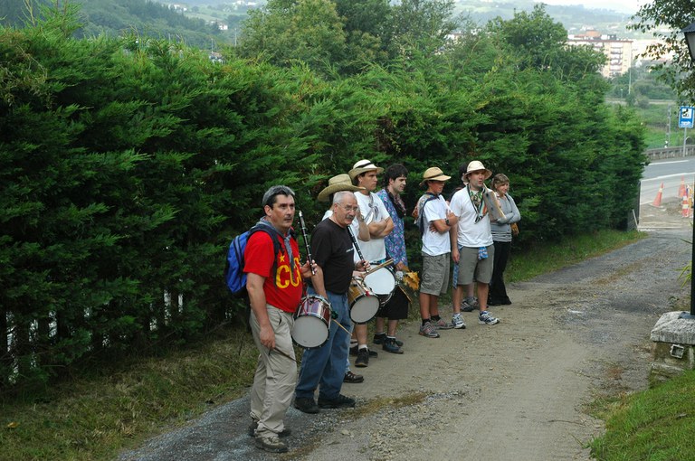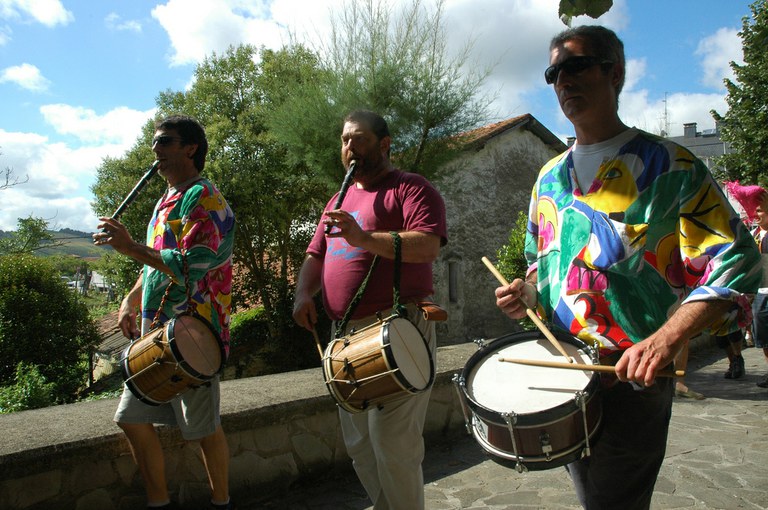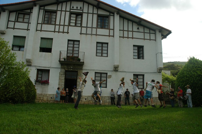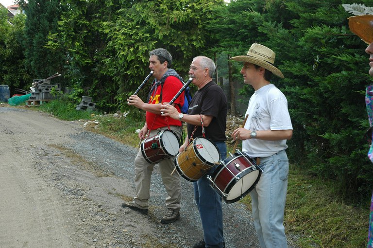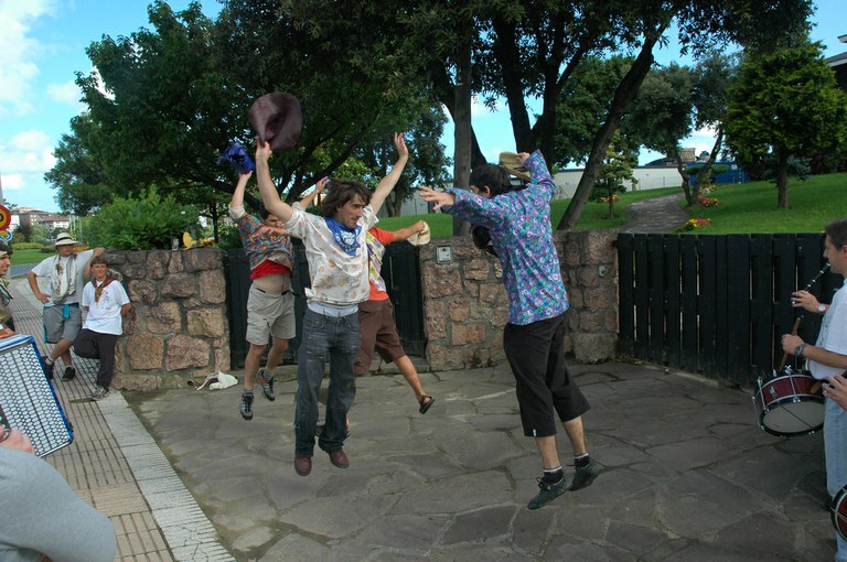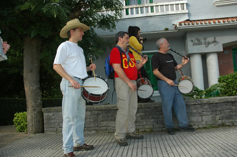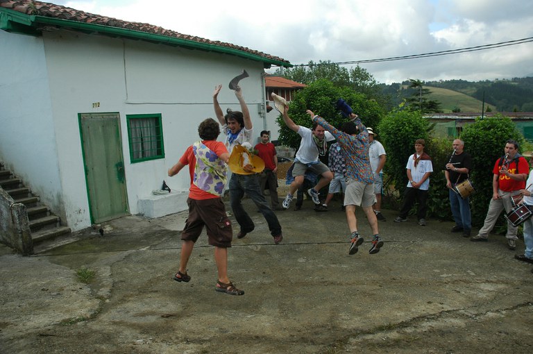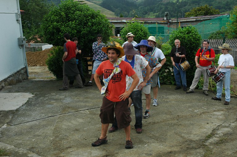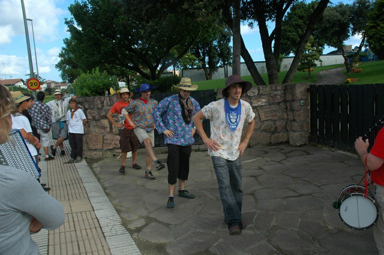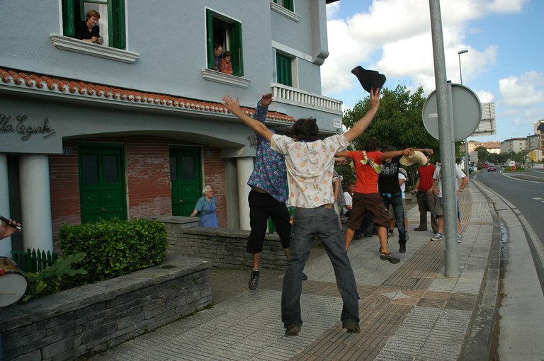San Pelaio jaietan, Iñurritzako auzoko gazteak baserriz baserri aritzen dira dantzan, oilasko biltzean jarduten duten bitartean. Zarautz, Iñurritza, 2008ko ekainaren 27an