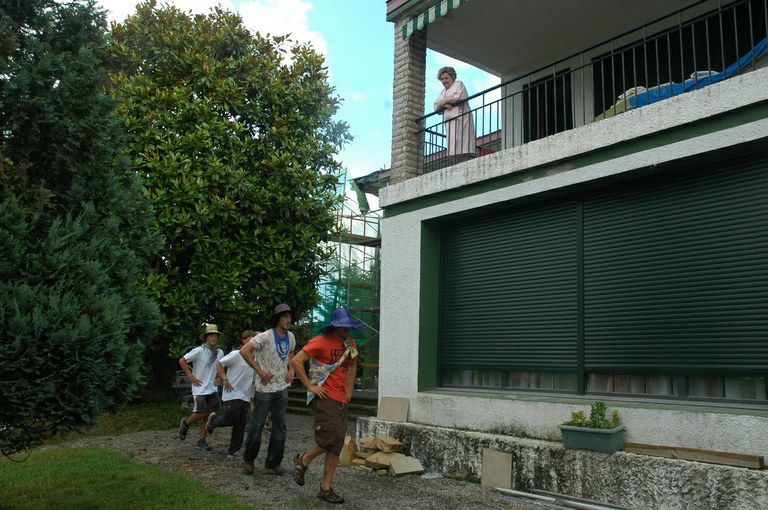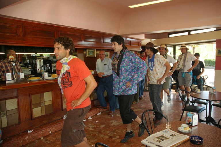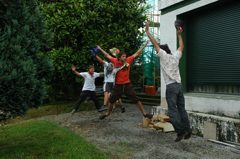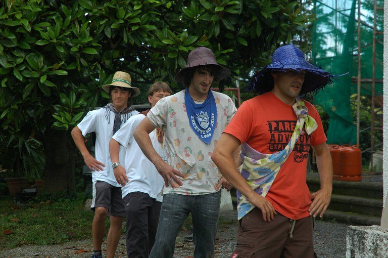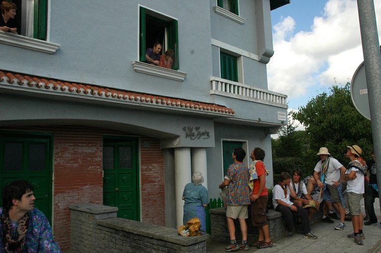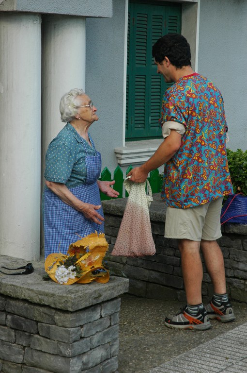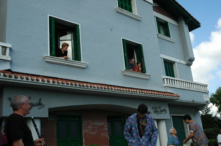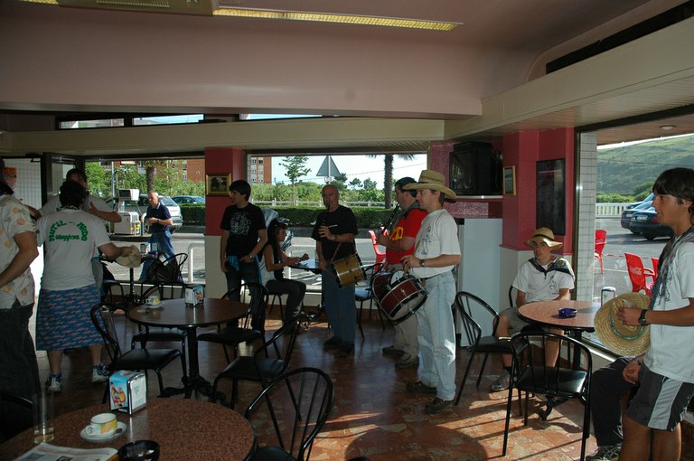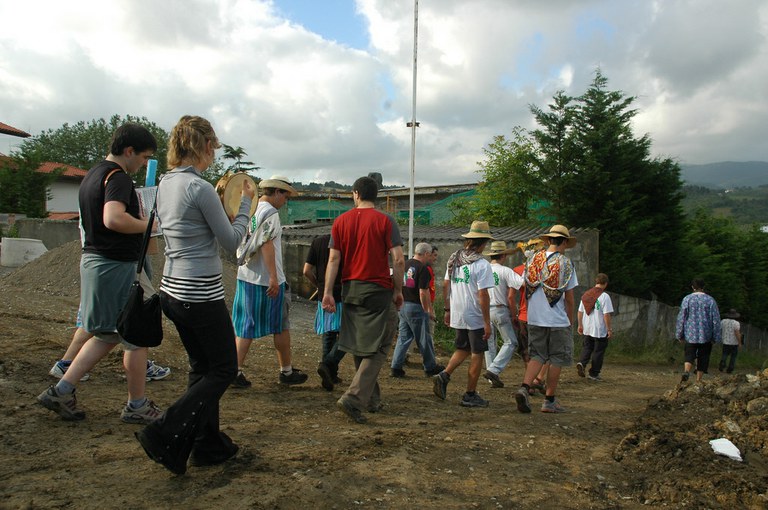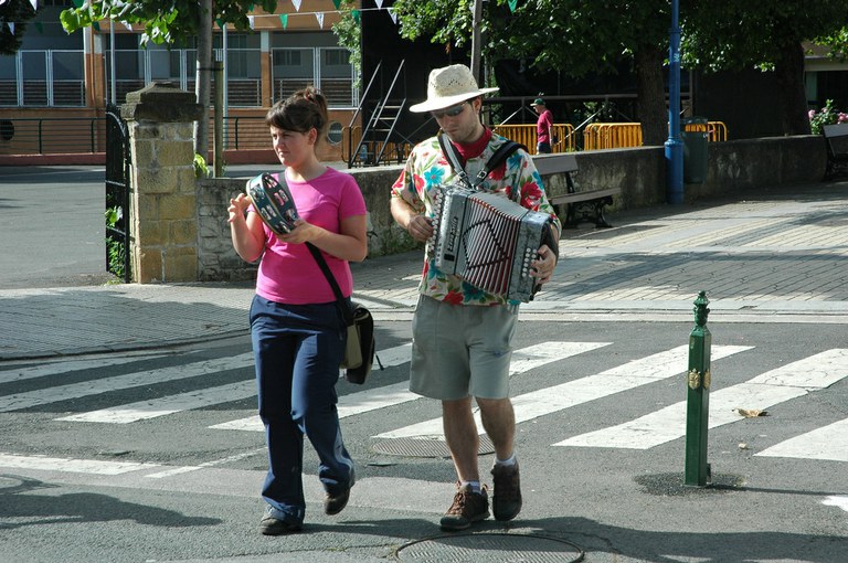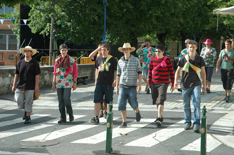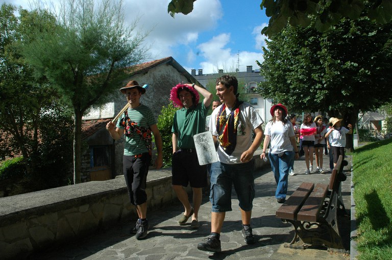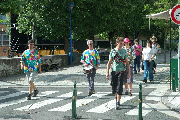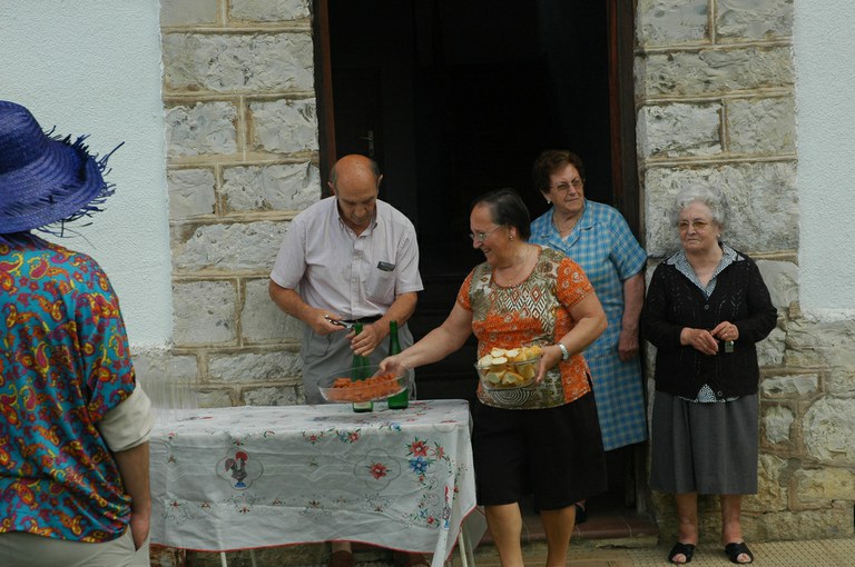 San Pelaio jaietan, Iñurritzako auzoko gazteak baserriz baserri aritzen dira dantzan, oilasko biltzean jarduten duten bitartean. Zarautz, Iñurritza, 2008ko ekainaren 27an