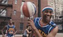 Kirola, dantza eta perkusioa nahasten dituzte irudi hauetan Harlem Globetrotters saskibaloi talde ezaguneko eta Stomp perkusio taldeko kideek. Baloiak lurrean kolpatu eta esku artean hartzean sortzen duen erritmoaren harira jokatzen dute partida koreografiatu hau 2016an 90 urte beteko dituen taldeko Bull Bullard, Cheese Chisholm, Firefly Fisher eta Handles Franklinek Stomp-eko kideekin batera. Harlem Globetrotters: Saskibaloia dantzan. Greenwich Village, New York.