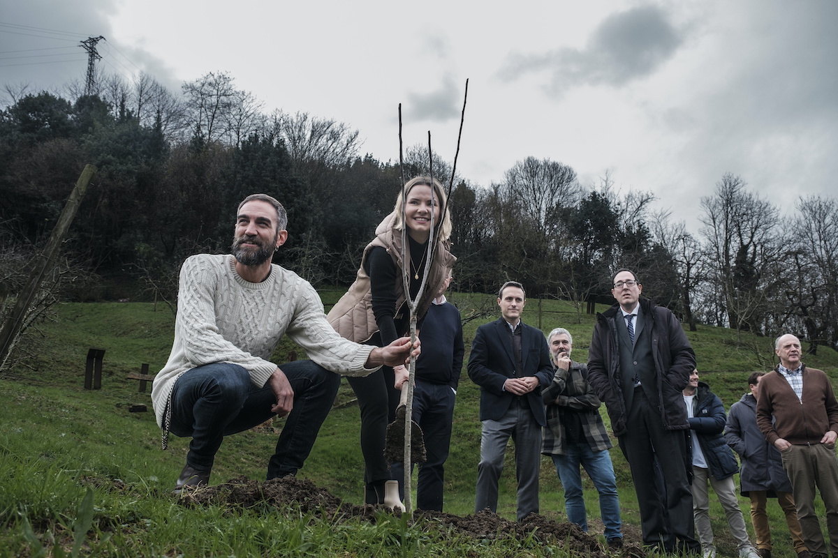 Garmendiak eta Plazaolak Sagardoetxearen goialdian sagarrondo bat landatu dute, umoretsu hori ere. Plazaolak esan du zuhaitza landatzea hondartzan sonbrilla jartzea bezalakoa izan dela, eta Garmendiak berriz bera bezalakoa aterako dela «txikia eta azidoa». Agin Laburu eta Alaia Martin aritu dira jarraian kantuan, «hurrengo urteko poza» izango denari begira.