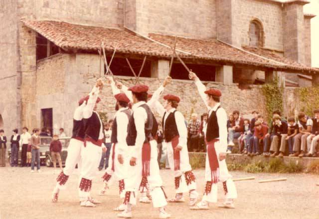 Barandiaran: Bai. Niretzat horretarako dantza taldea herriarekin lotzeko oso garrantzitsuak izan ziren Santiotako konpartsak. Jende askok parte hartzen zuen egunpasa horietan, ez bazen dantzatzen, pertsonaia bezala, eta zer esanik ez, aurretik dena prestatzen, bileretan eta entsegutan. Konpartsa haiek ez ziren zerbait itxia, jende askorekin egiten genuen harremana, dantzaren, musikaren eta festaren aitzakian.