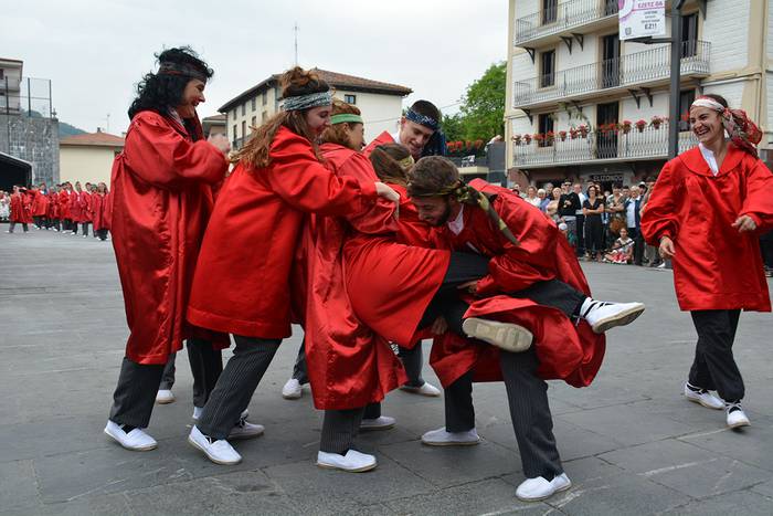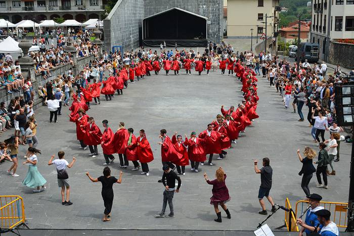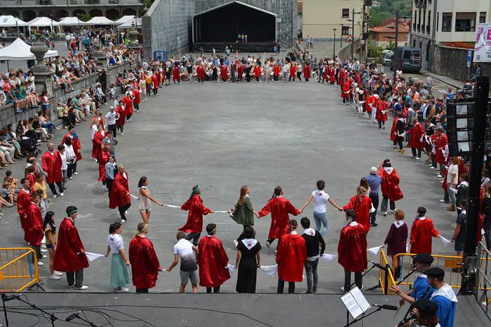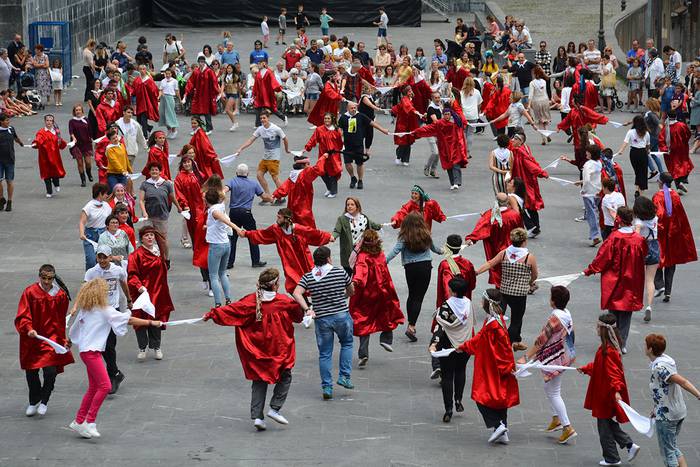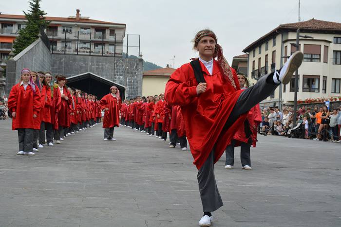Axeri Dantzaren tradizioa indartsu dagoela ikusi zen San Juan egunean, beste behin. Egia esanda, belaunaldien arteko dantza bizi-bizia bilakatu da Adunan eta Andoainen urtero indarberritzen den tradizio hori. Atzokoan, Xatonio Irazuk buruzagitzaren ardura Izazkun Berazari pasa zion. Dultzaineroen eta Olagain Elkarteko txistularien doinupean jardun zuten ia 60 dantzariek.