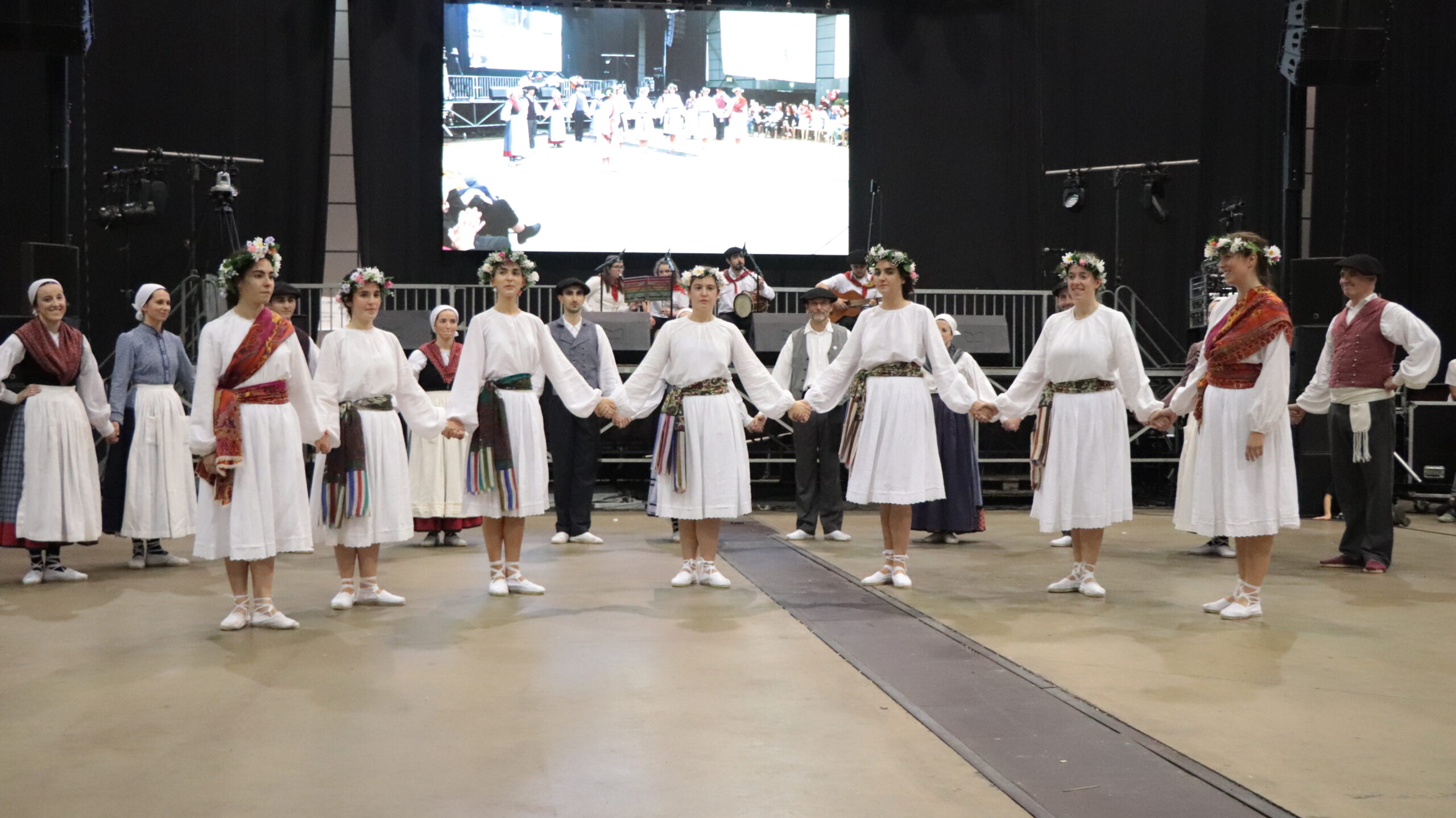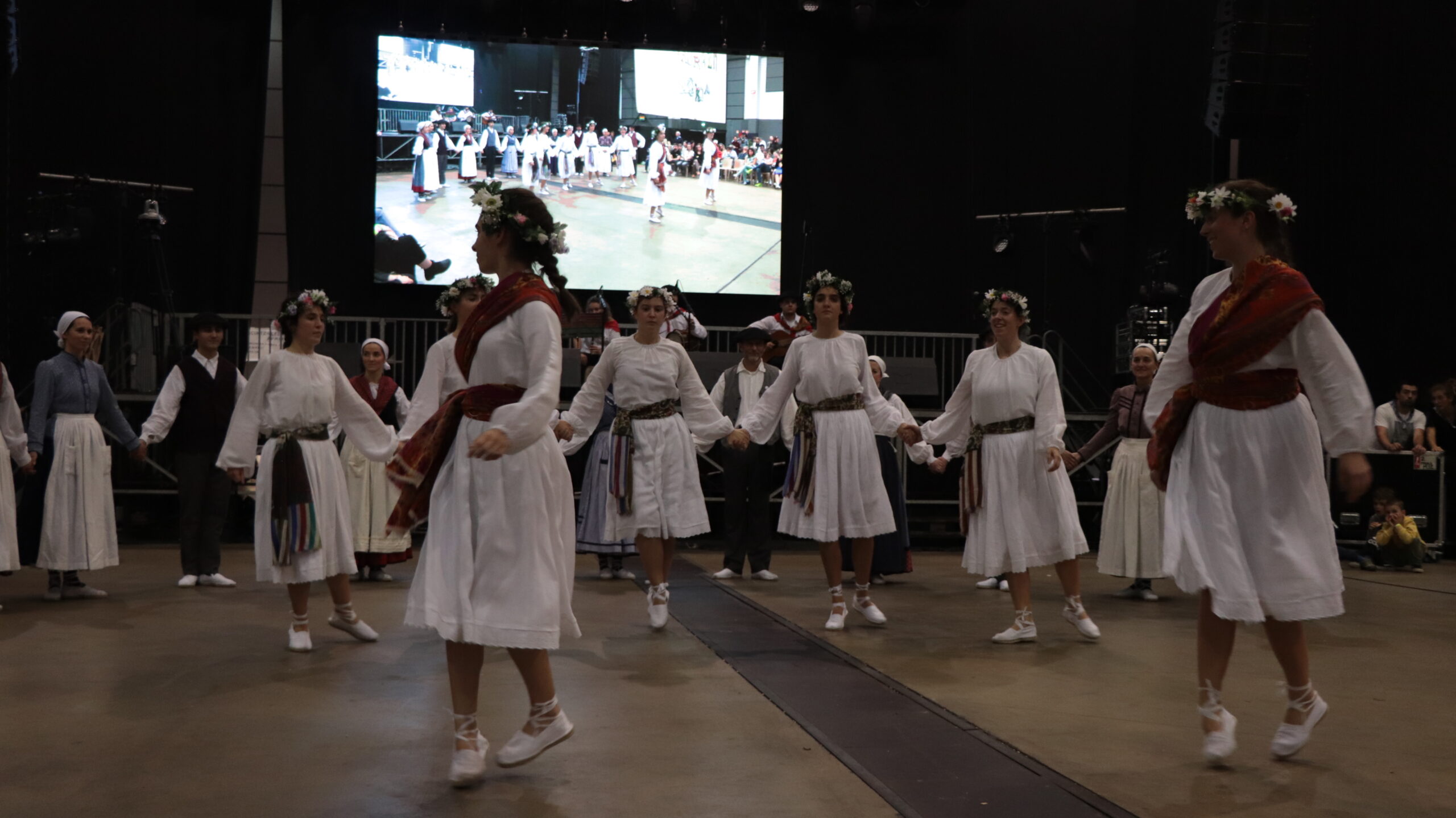 Aurtzaka dantza taldeko kideek tokiko kultur ondarearen lagin bat taularatu dute Biarritzen. Argazkiak, albistean.