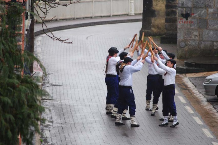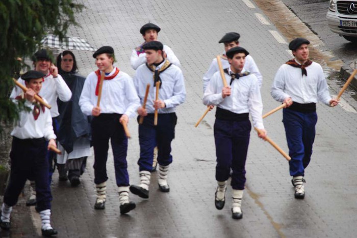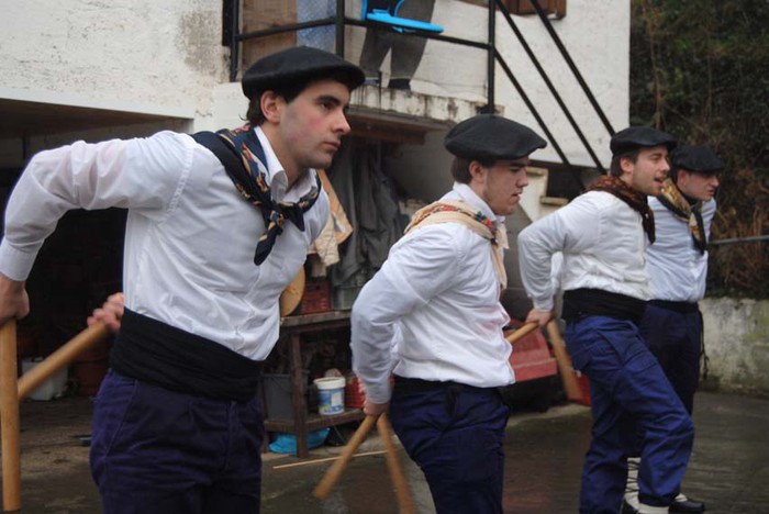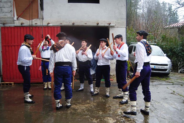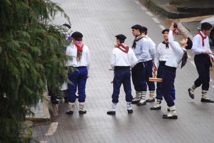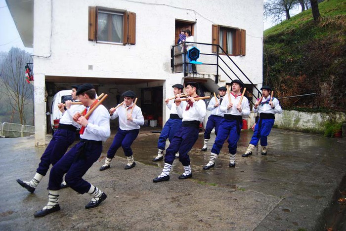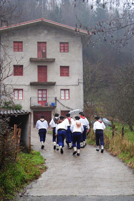 Bi egunez aritu dira Amezketako Talai dantzariak baserriz baserri euri dantzan.
