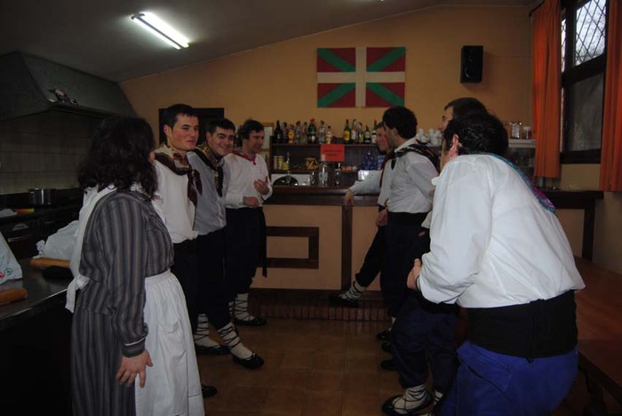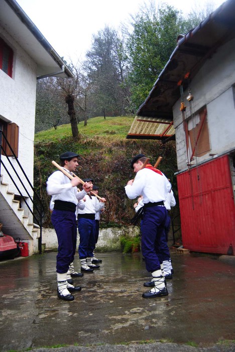 Goizeko 08:00etan zuten hitzordua jarrita talai dantzariek bai igandean eta baita atzo ere herriko inauterietako ohiturazko dantza baserriz baserri eramateko. Igandean Zubillaga, Ugarte eta Amezketa herria pasa bazituzten ere, atzokoan Bedaio eta Amezketako gainontzeko baserrien txanda izan zen. Abarka, zapi eta makilek askatu ezineko laguna izan dute aurtengoan: euria. Dantzariak nahitaez euri zaparradaz kanpotik busti dira baina barrukoa ere konpentsatu nahian herritarrek euren etxe eta soziedadeetan egindako eskaintzeei ezin muzin egin eta barrutik ere busti dira, «eguraldiari kontra egin eta berotu nahiean».