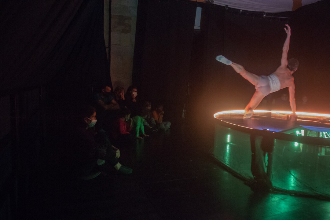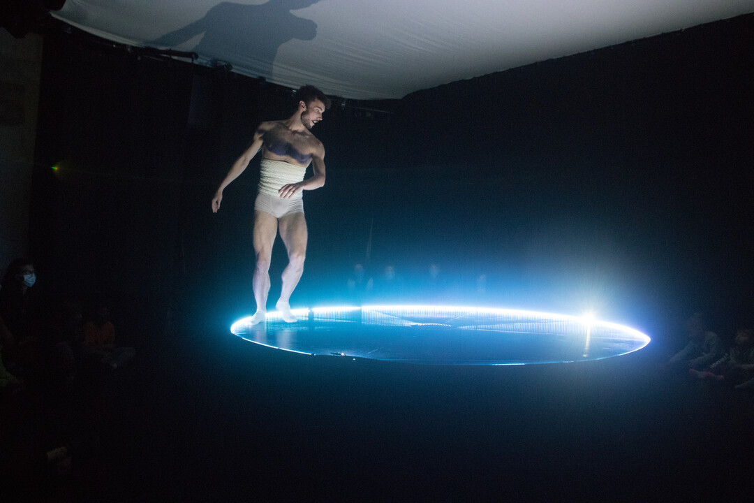 Oihan Indart dantzari-musikariak eta argi-itzalek liluratu egin zituzten ikusleak, horixe zen eta dantza garaikide ikuskizunaren helburua: O!. Thierry Biscaryk osatutako musikaren bueltan egin zuen dantzan Indartek, espazio zirkular baten gainean, ikusleak inguruan zituela.
