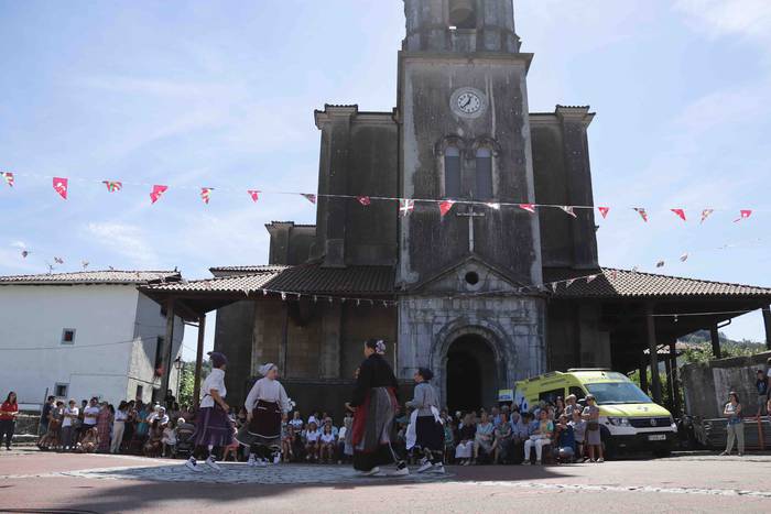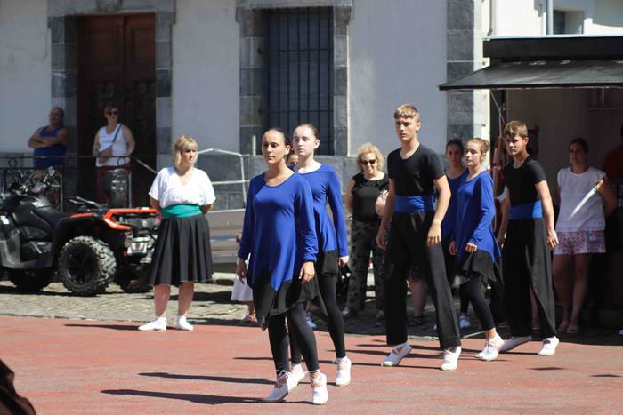 Mezaren ostean, plaza osoa bete dute herriko dantzariek. Izan ere, aurtengoan ere herriko belaunaldi ezberdinak dantzan egitera animatu dira. Txiki-txikitatik hasita helduetaraino plazan elkartu dira, eta talde ezberdinetan banatuta hainbat dantza egin dituzte. Bidanian ere eguraldia lagun izan dute goiz guztian zehar. Beroa egiten bazuen ere, azkeneraino musikaren erritmora dantzan aritu dira dantzariak.