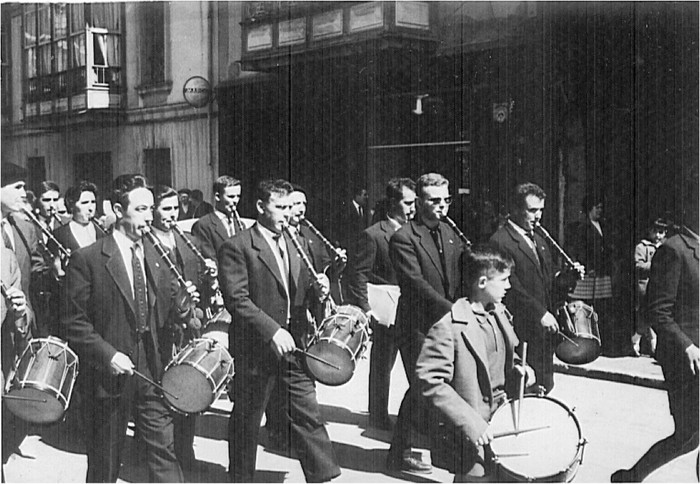 1962. urtean, Durangon antolatu zuten txistulari eguneko irudia.