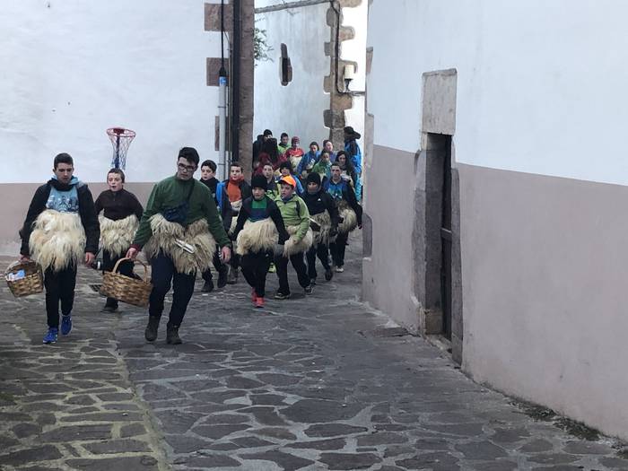 07:00 aldera hasi ziren joare soinuak herrian. Lehenik Mendrasa eta Aurkidiko baserrietara egin zuten bisita eta 09:00 aldera herrira bueltatu ziren. Etxez etxe joareak astiduz eskean ibili ondotik, Amezti eta Azkotako baserrietara joan ziren eta 15:00etan akitu zuten eskea. Goizean 4-14 urte bitarteko 30 lagun herrian barna ibili ziren.