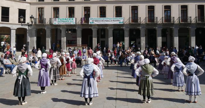 Laudioko Udalak antolatutako KultUDABERRIA egitasmoaren barruan, Itxarkundiak adin anitzeko dantzariekin bete du Herriko plaza eguerdian. Jende ugari elkartu da erakustaldi koloretsua ikusteko.