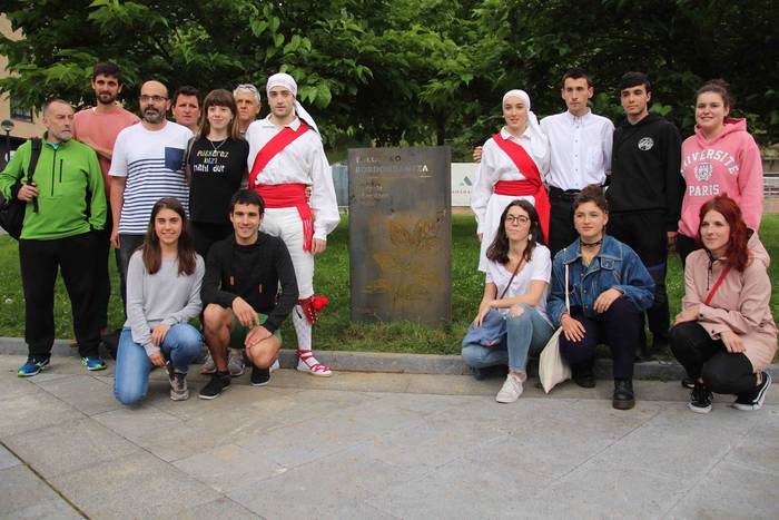 Hori dela eta, Arramele ondoan, oraindik eraberritze fasean dagoen Larramendi auzoko haur parkearen ingurua, leku egokia iruditzen zitzaien bordon dantzariei nahiz udalari. “Orain, hamar urtez behin, bertatik lizar hostoak hartu eta kaleak horiekin atontzea da asmoa”, adierazi zuen Urretabizkaiak. Espazio hori gehiago nabarmentzeko, udalak monolito txiki bat jarri du. Honela dio bertako mezuak: “etengabe urberritzen delako”.