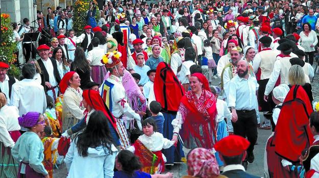 Aniversario. Dantzaris de Irrintzi dantza taldea bailando en el festival que celebró en abril. /